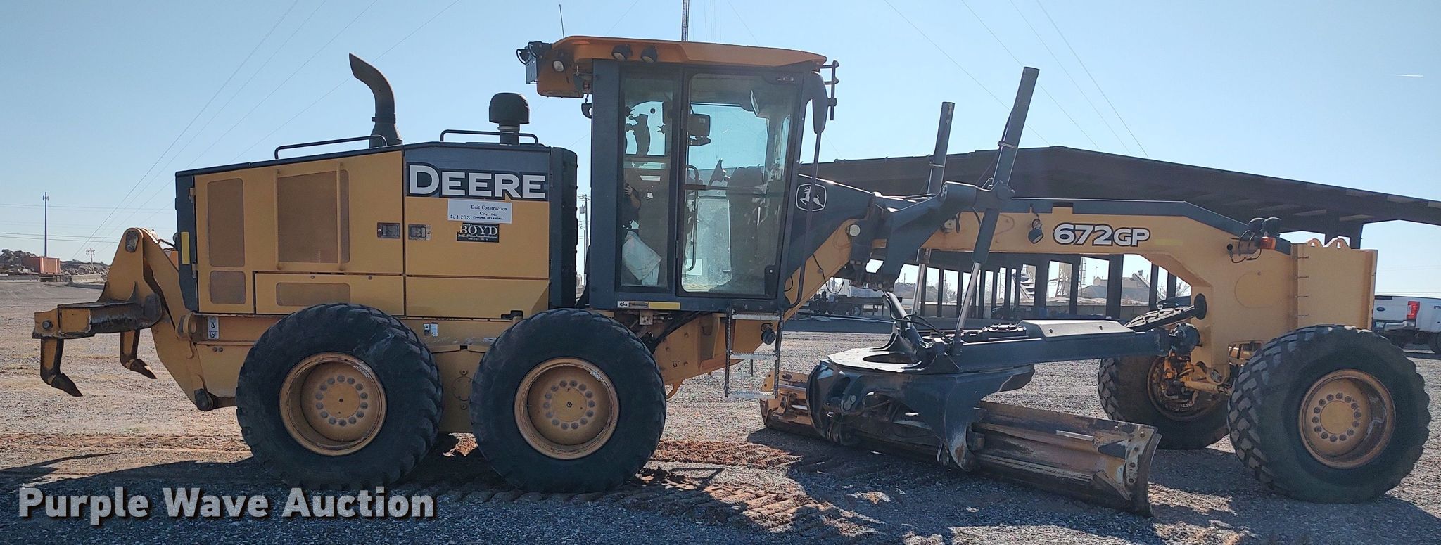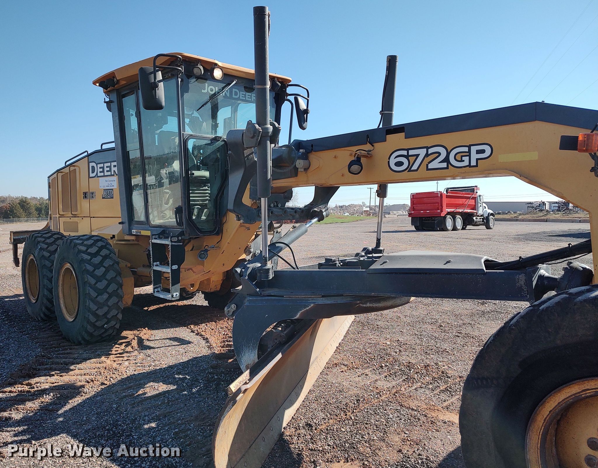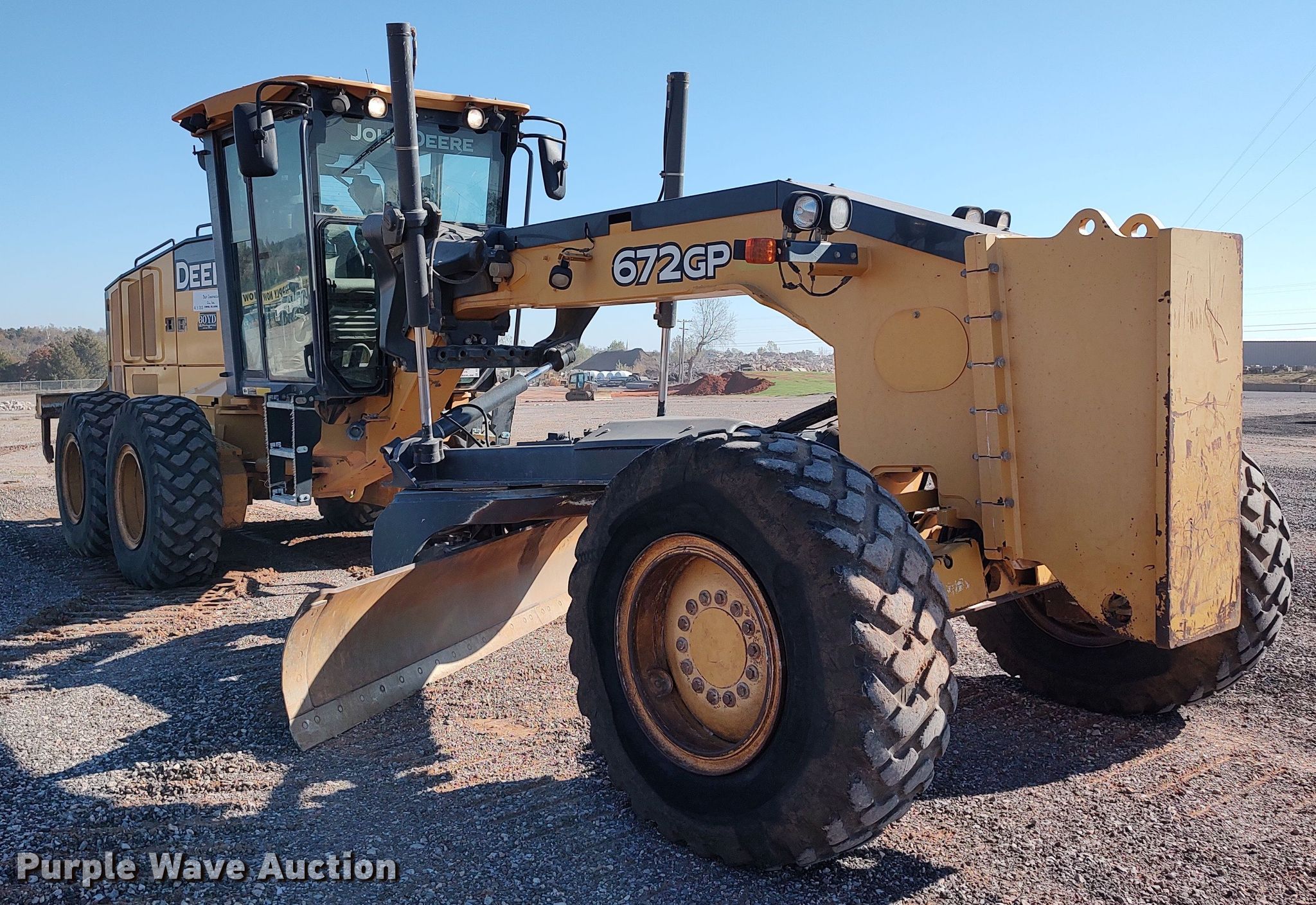 Purple Wave is selling a used Motor Grader in Oklahoma. This item is a 2012 John Deere 672G motor grader with the following: Hours: 12,259 on meter, Serial: 1DW672GPABE641494, Unit #: 451.283