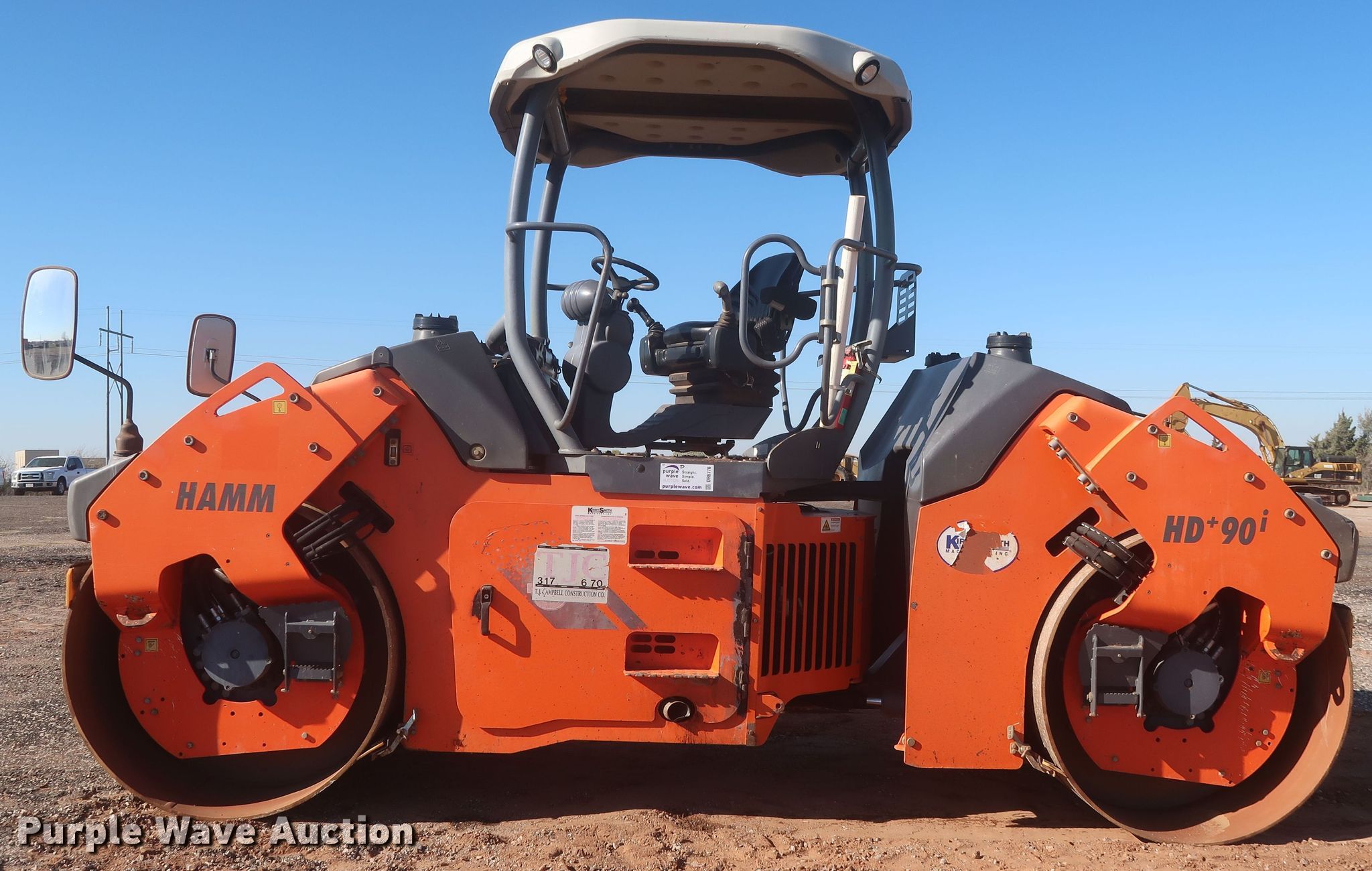 Purple Wave is selling a used Double Drum Roller Compactor in Oklahoma. This item is a 2015 Hamm HD+ 90i VV double drum vibratory roller with the following: Hours: 6,408 on meter, Serial: H2090174, Unit #: 317.670