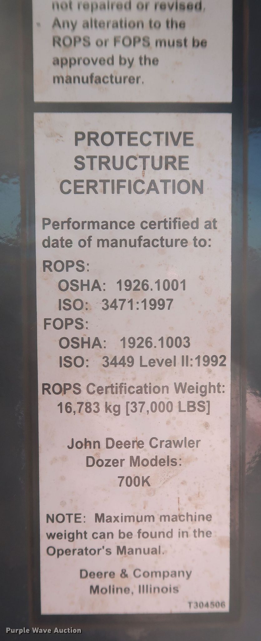 Purple Wave is selling a used Crawler Dozer in Oklahoma. This item is a 2013 John Deere 700K dozer with the following: Hours: 9,791 on meter, Serial: 1T0700KXECE237922, Unit #: 287.302