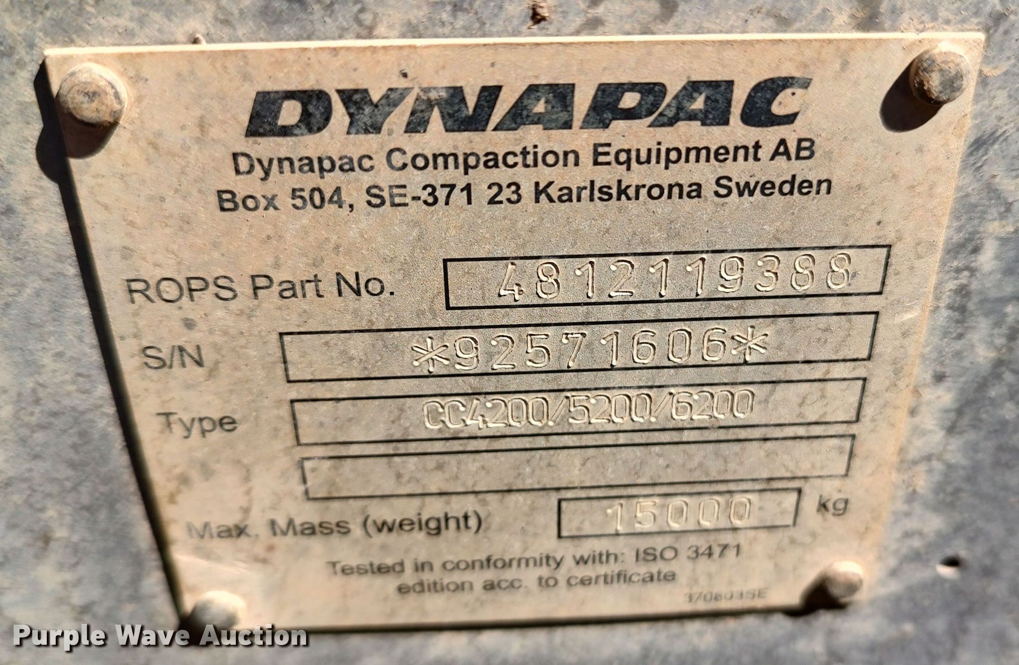 Purple Wave is selling a used Double Drum Roller Compactor in Oklahoma. This item is a 2017 Dynapac CC6200 double drum vibratory roller with the following: Hours: 3,729 on meter, Miles or hours may vary, unit still in use, Serial: 10000349LGA018803, Unit #: 317.923