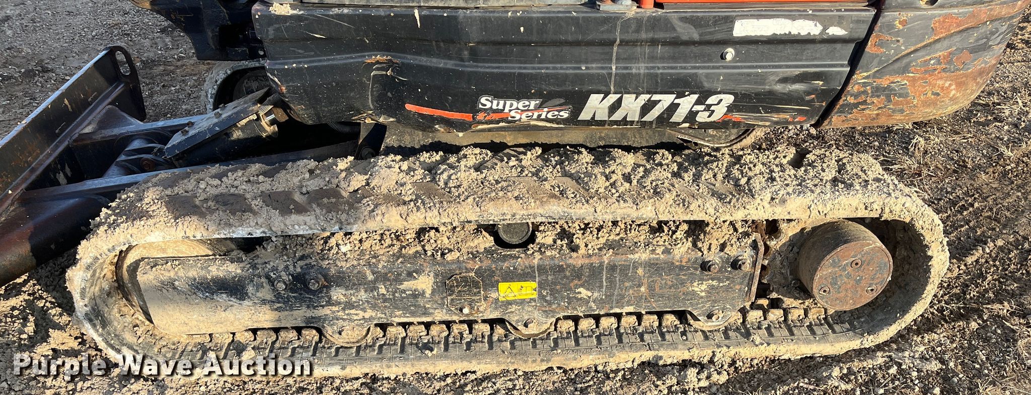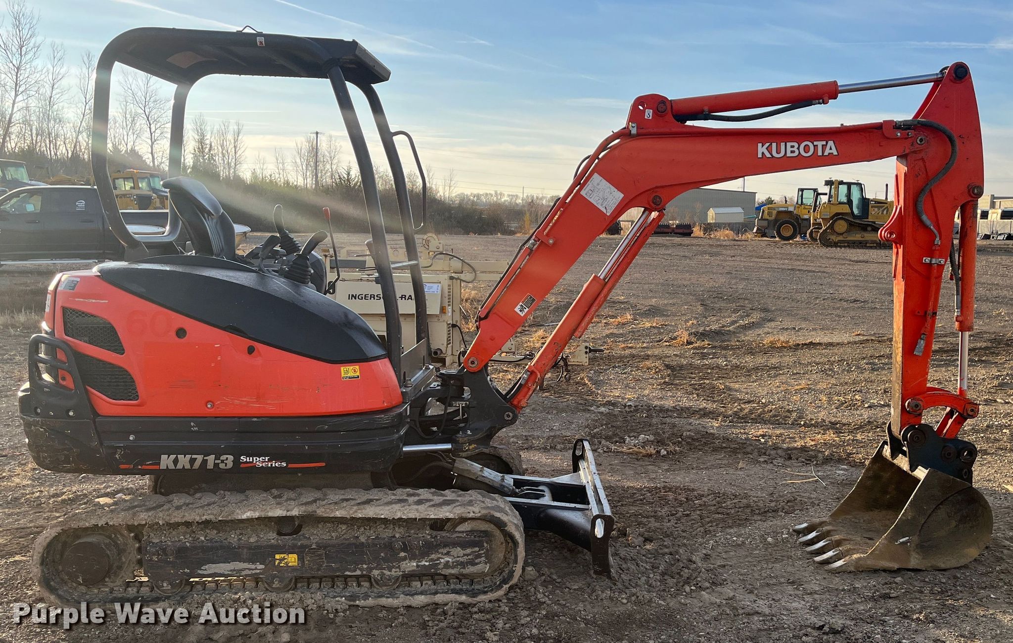 Purple Wave is selling a used Mini Excavator in Kansas. This item is a 2014 Kubota KX71-3 mini excavator with the following: Hours: 3,060 on meter, Serial: 20513
