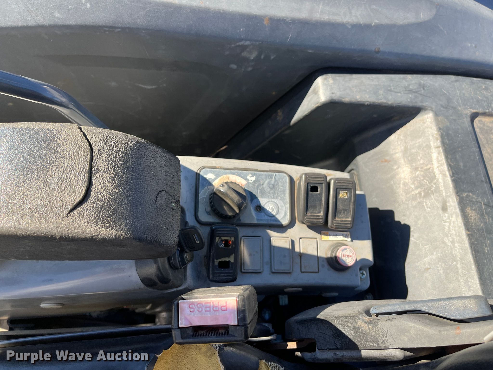 2013 Kubota KX040-4 mini excavator. Hours: 3,553 on meter, Serial: 20115. Engine Kubota, Cylinders: 3, Fuel type: Diesel. Transmission Hydrostatic. Operators station OROPS, Pattern changer. Features Auxiliary hydraulics Two-way, Counter weights, Backfill blade Width: 97", Boom Swing, Stick Stick length: 63", Quick coupler: Mechanical, Bucket Width: 18", Cutting edge: Weld-on, Teeth: 4. Tracks Width: 14", Rubber. Sunflower Rental. 2010 SW Topeka Blvd. Topeka, KS 66612