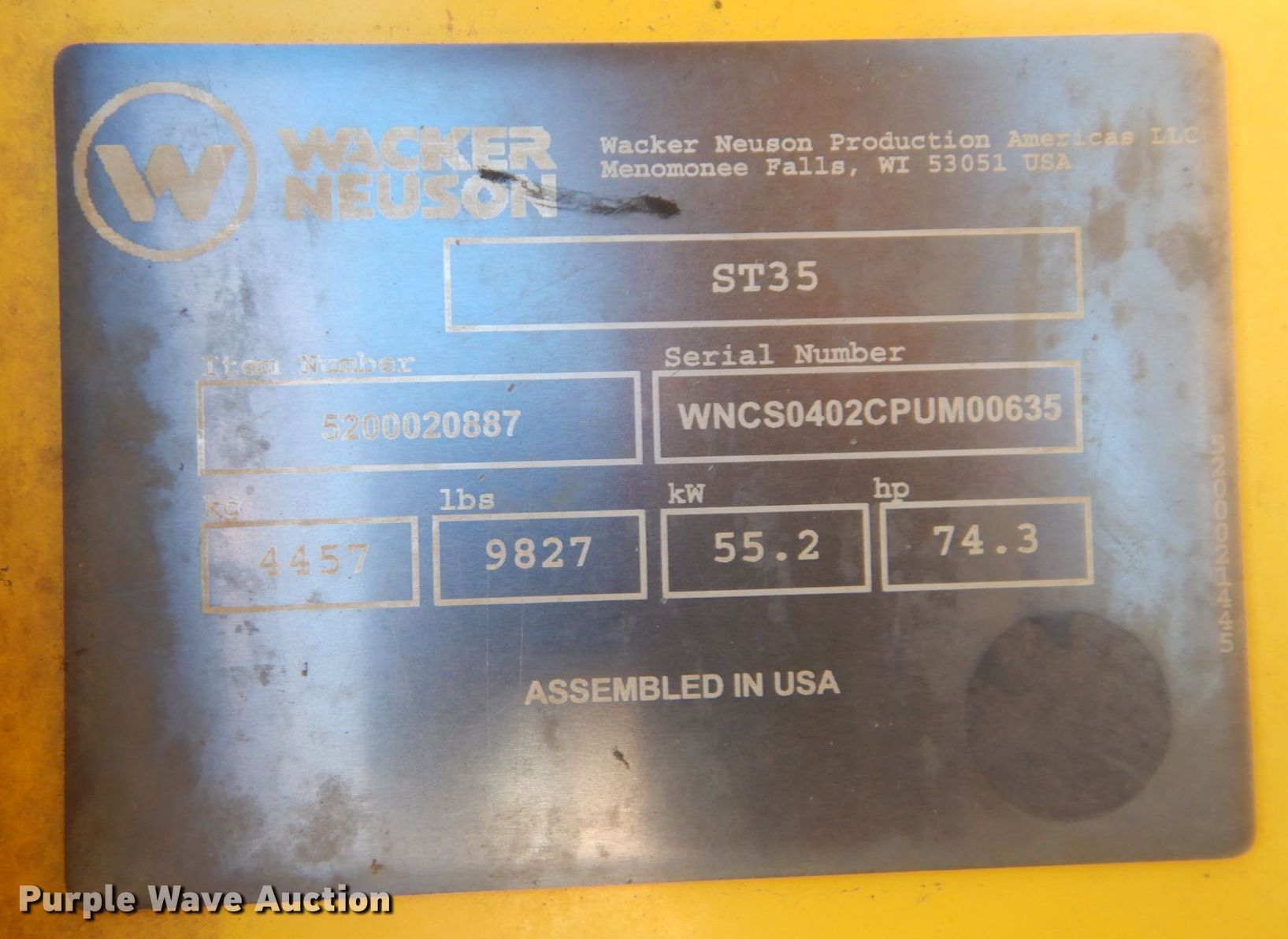 Purple Wave is selling a used Tracked Skid Steer Loader in Kansas. This item is a Wacker Neuson ST35 tracked skid steer loader with the following: Hours: 1,297 on meter, Serial: WNCS0402CPUM00635