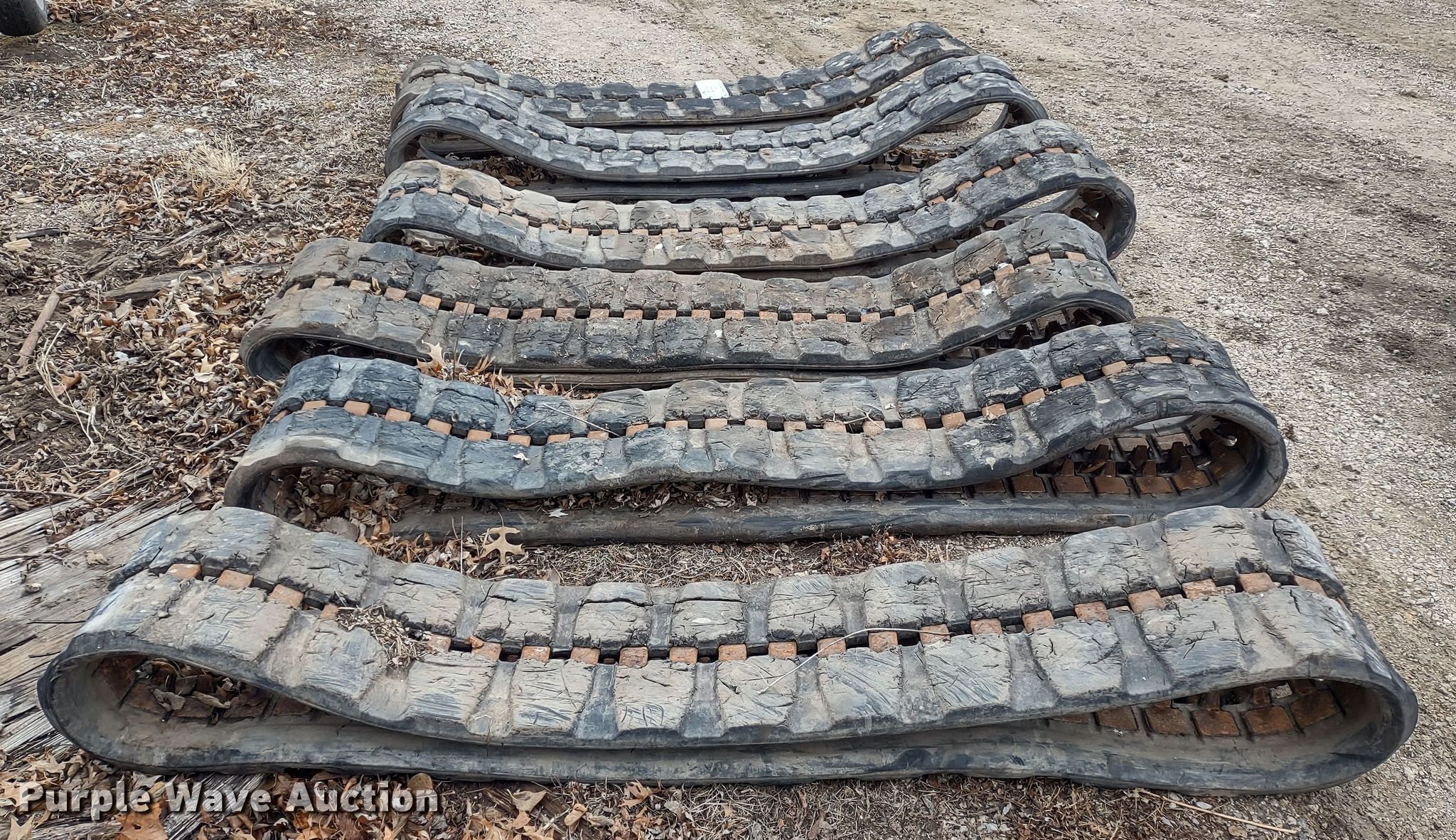 Purple Wave is selling a used Industrial Tires or Tracks in Kansas. This item is a Rubber tracks with the following: (6) 15" W Takeuchi/Bridgestone tracks, (3) 12" W