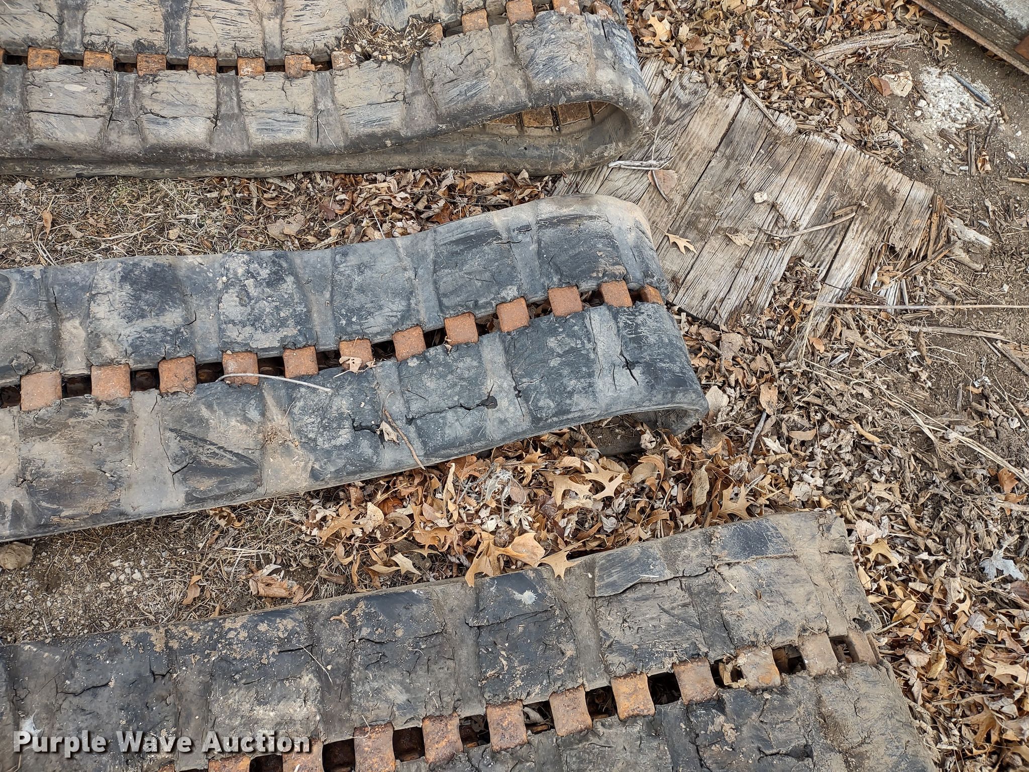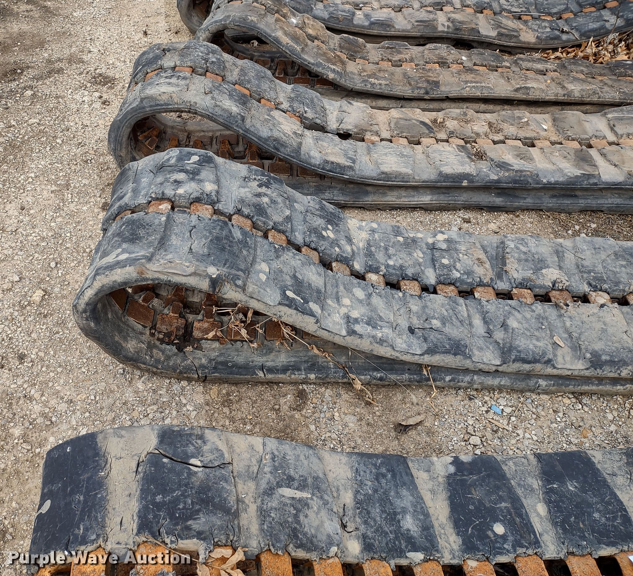 Rubber tracks. (6) 15" W Takeuchi/Bridgestone tracks, (3) 12" W. Rubick Construction. 1137 Colorado Road. Williamsburg, KS 66095