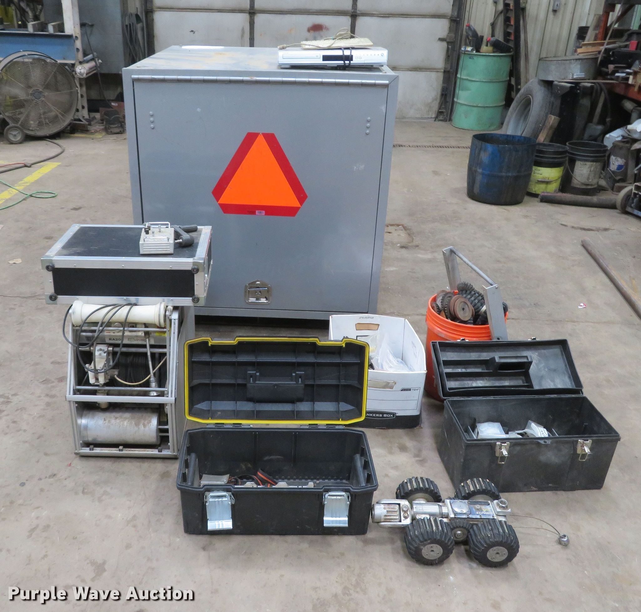 Purple Wave is selling a used Tools in Missouri. This item is a Envirosight Rovver 125 sewer inspection system with the following: (2) crawlers, (2) camera heads, (2) reels, (2) controls with boxes and keyboards, Monitor, Elevator, (2) external light attachments, Additional wheels