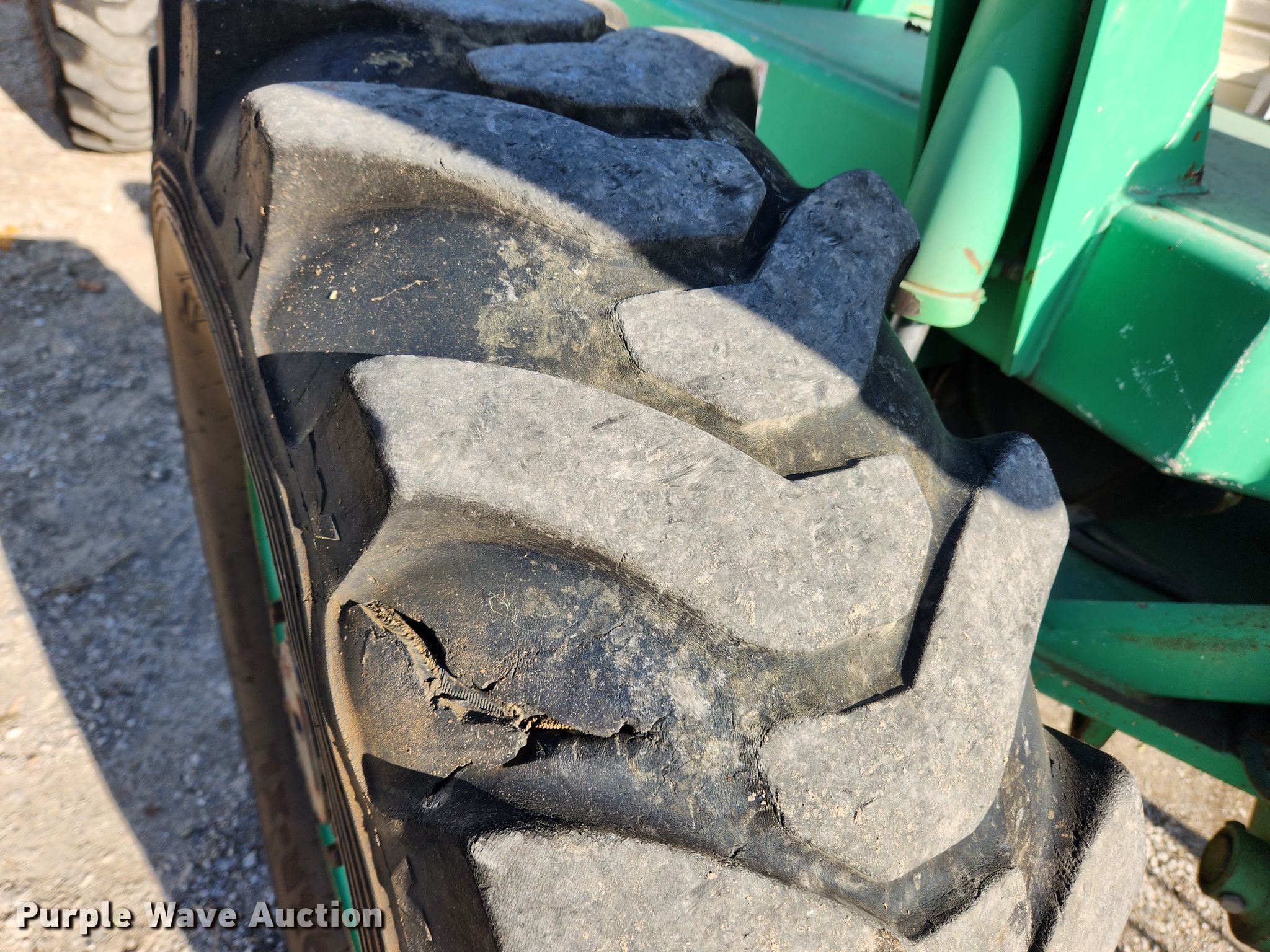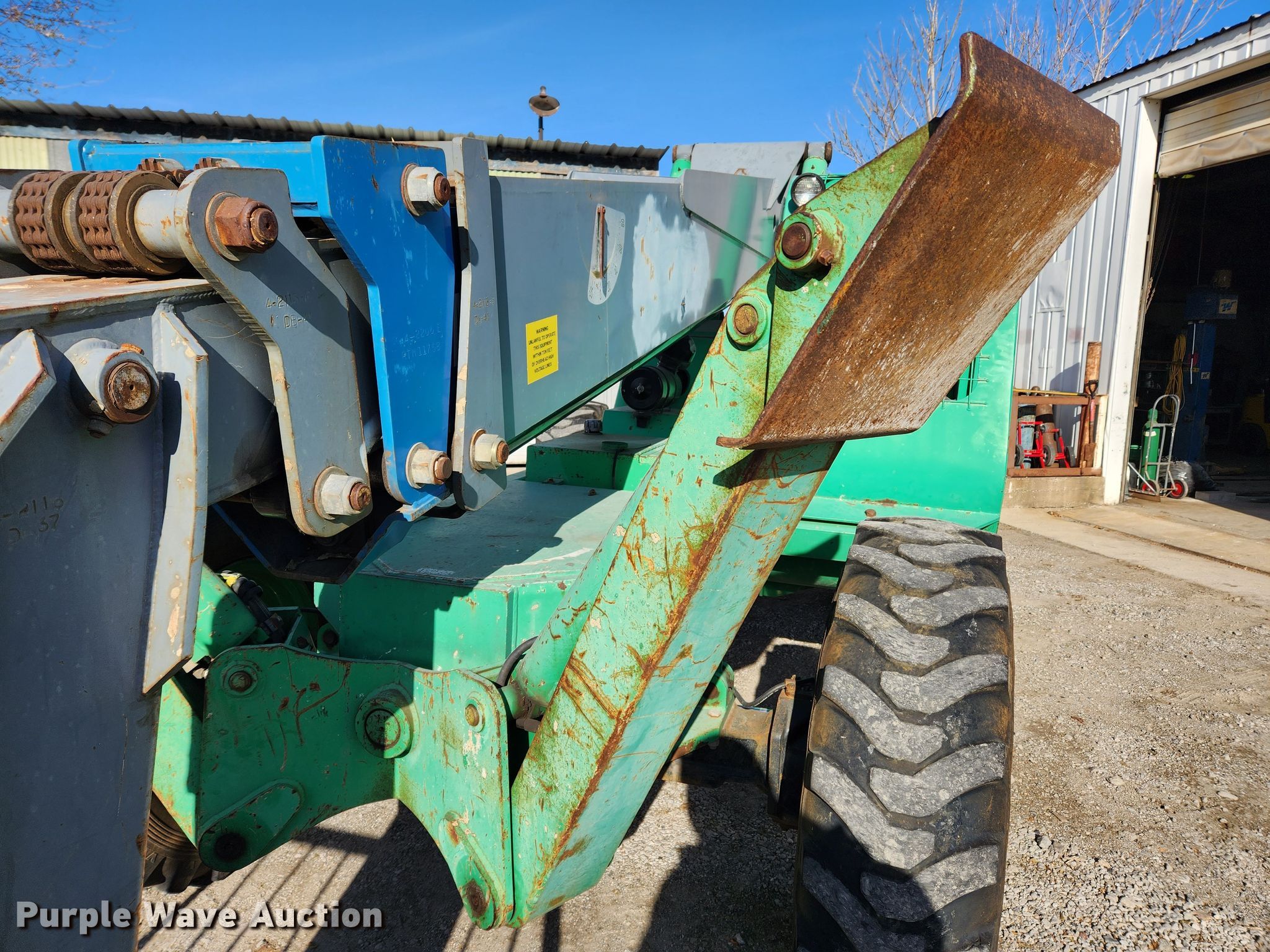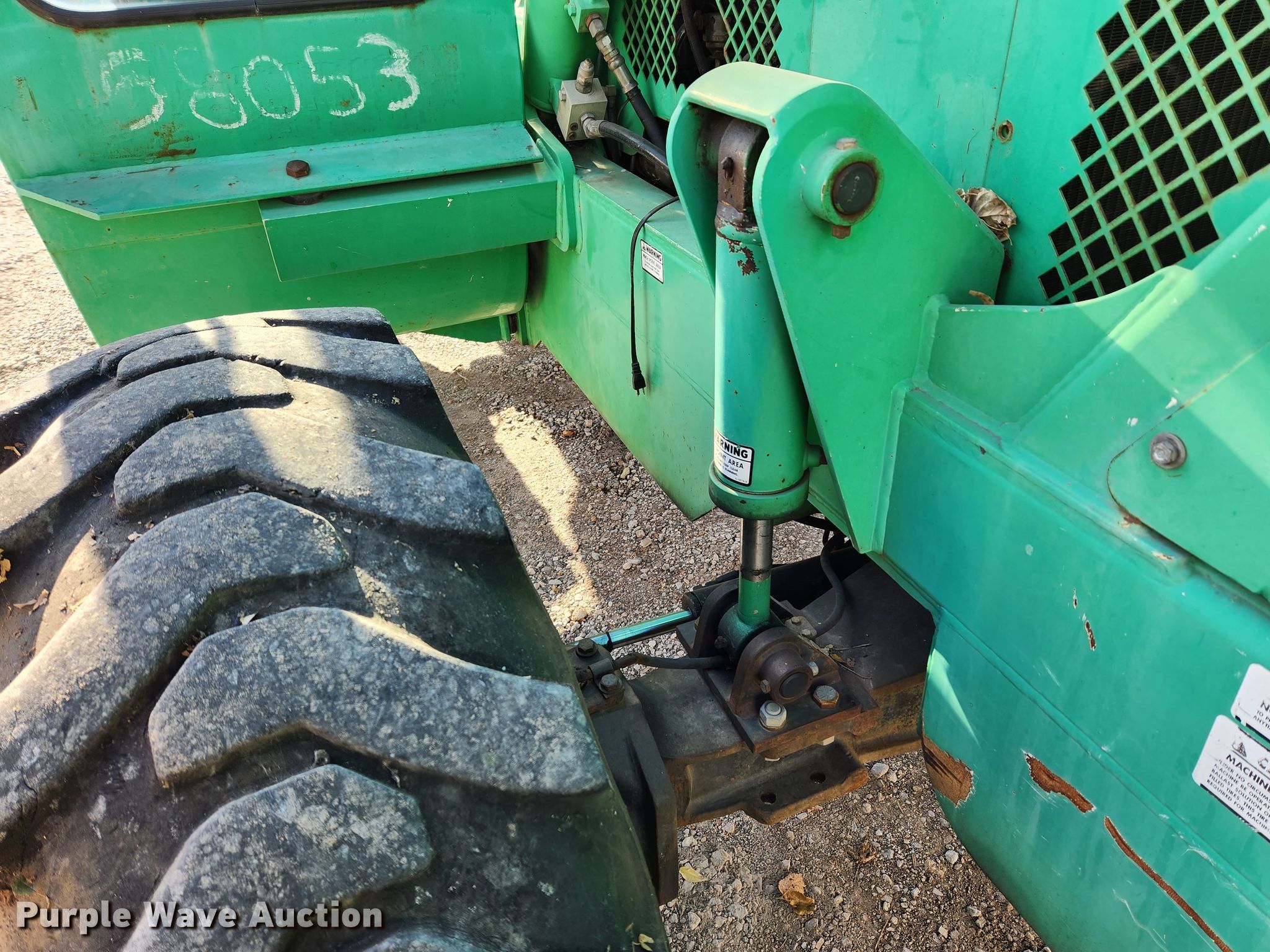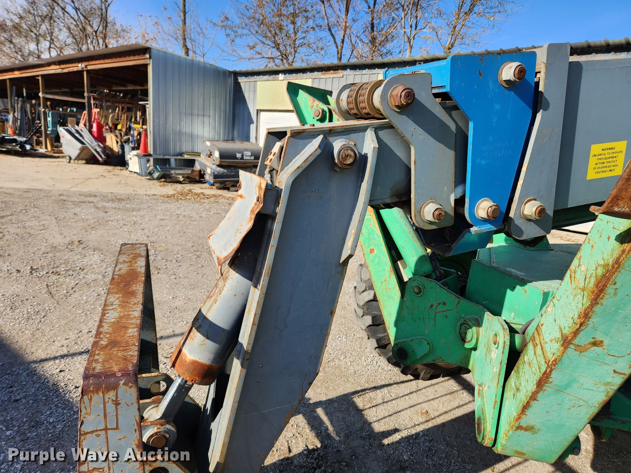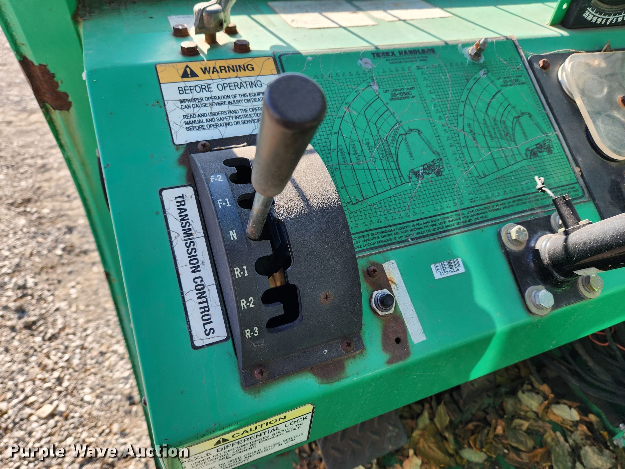 2000 Terex SS1056C Turbo telehandler. Hours: 1,241 on meter, Serial: 003624. Engine John Deere 4045TF250A, Displacement: 4.5L, Cylinders: 4, Fuel type: Diesel, HP: 125. Transmission Powershift, 3F - 3R, Four wheel drive. Operators station Canopy, Steering: Crab, Four wheel. Features Maximum lift capacity: 10,000 lbs, Maximum lift height: 56', Boom stages: 4, Fork length: 48", Hydraulic outriggers, Hydraulic leveling. Tires Size: 14.00-24, Foam filled. S.M. Wilson & Co.. Granite City, IL 62040