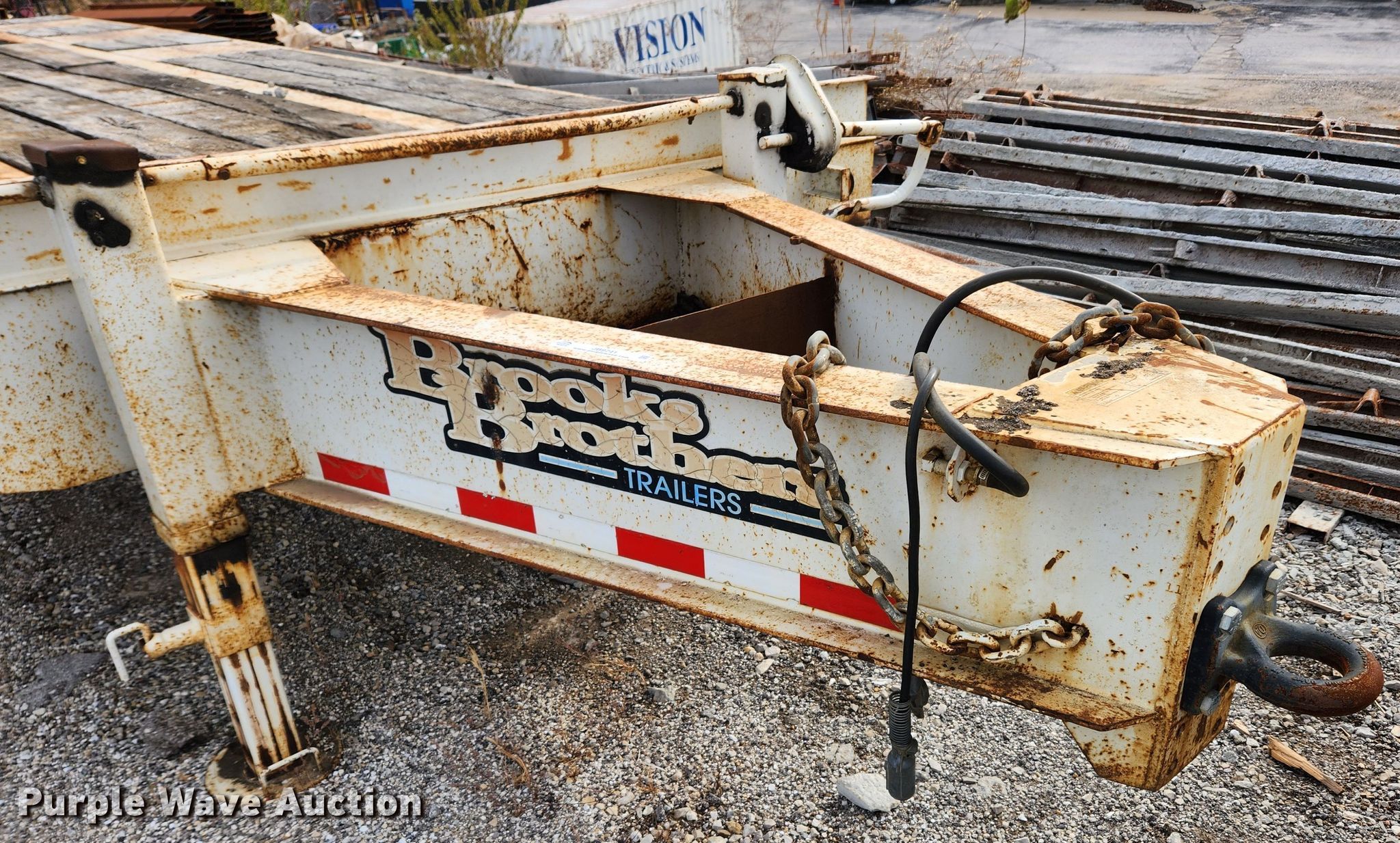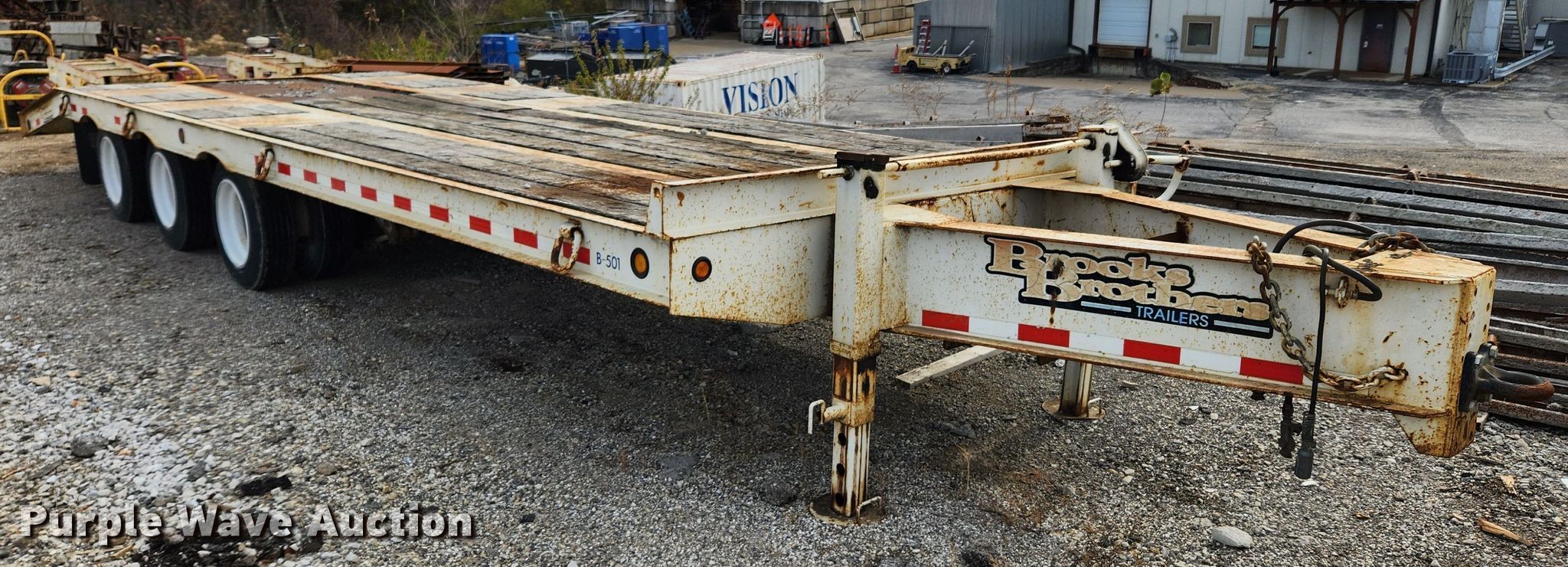 2006 Brooks Brothers OW-22.5K-A equipment trailer. VIN: 1B9TS24316M274163. Dimensions Overall: 33' L x 101" W, Deck: 24' L x 101" W, Tail length: 5', Ramps: Manual Length: 5' 6". Features Deck type: Wood. Chassis Hitch: Pintle, Landing gear: Dual, Two speed, Suspension: Spring, Brakes: Air, Axles: Triple, GVWR: 60,000 lbs, GAWR: 22,500 lbs. Tires Steel wheels, Size: 215/75R17.5. Missouri title. Title distribution may be delayed up to 14 days from verification of funds. Kuesel Excavating Company. 854 Lone Star Dr. O'Fallon, MO 63366