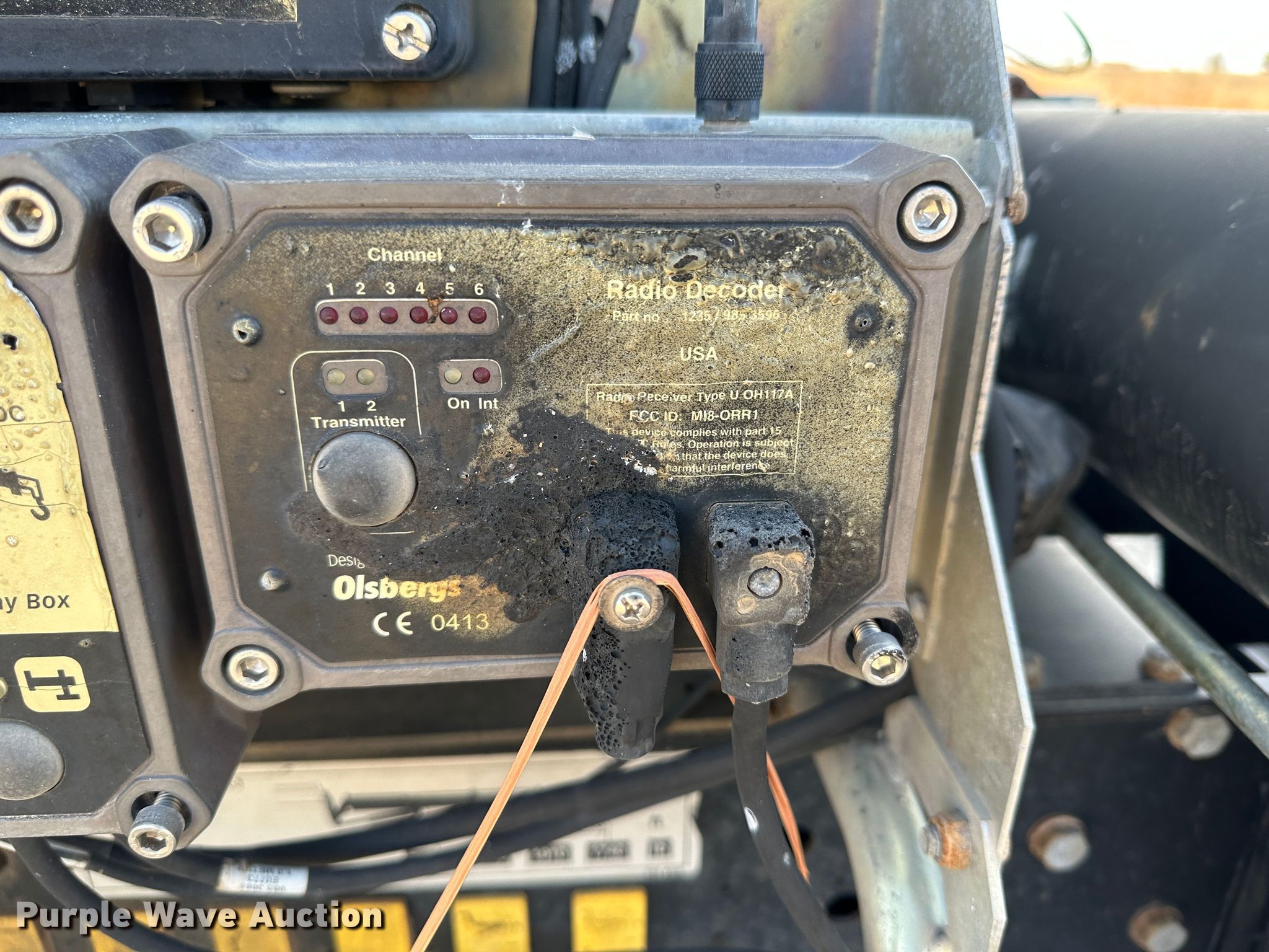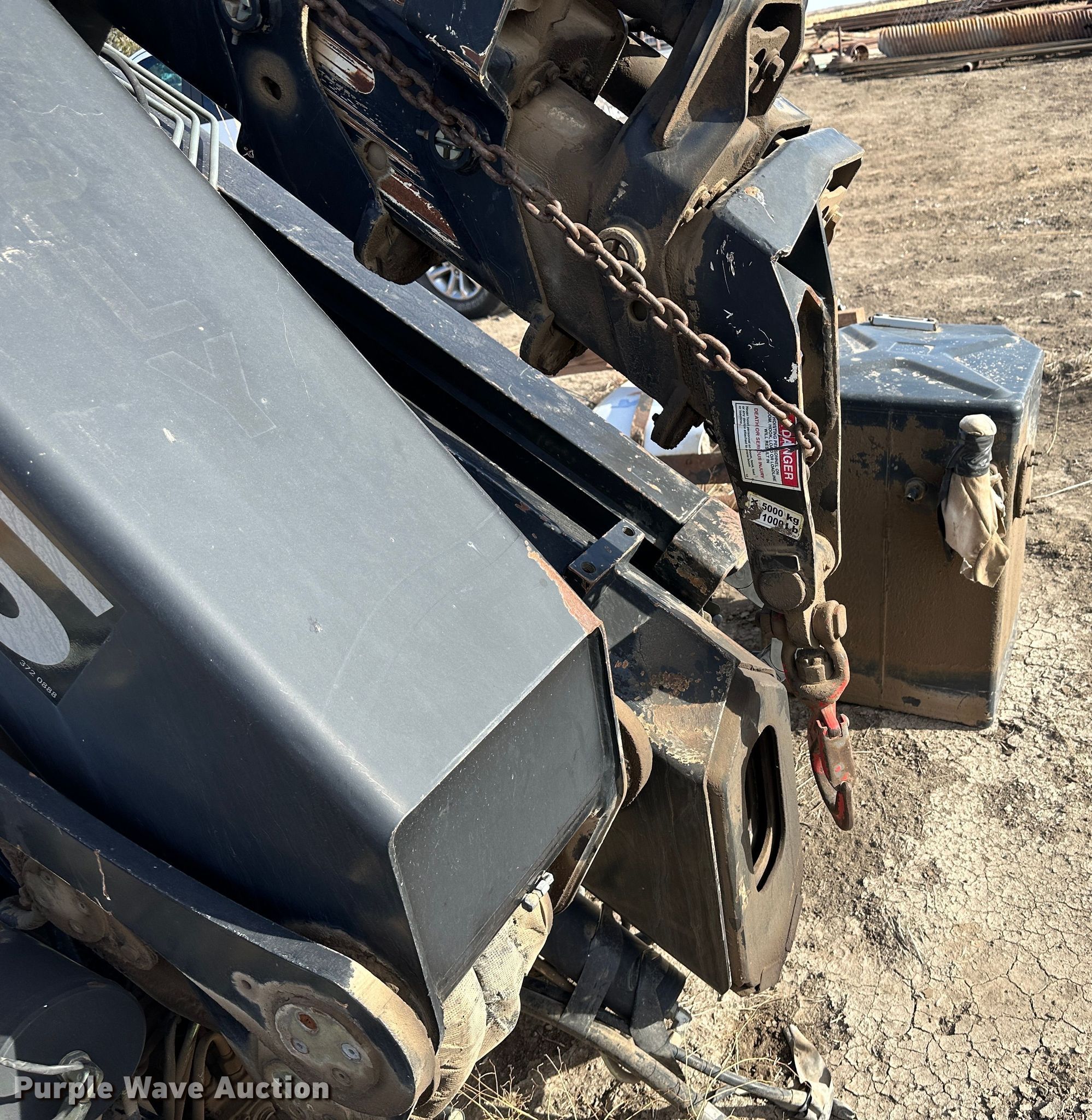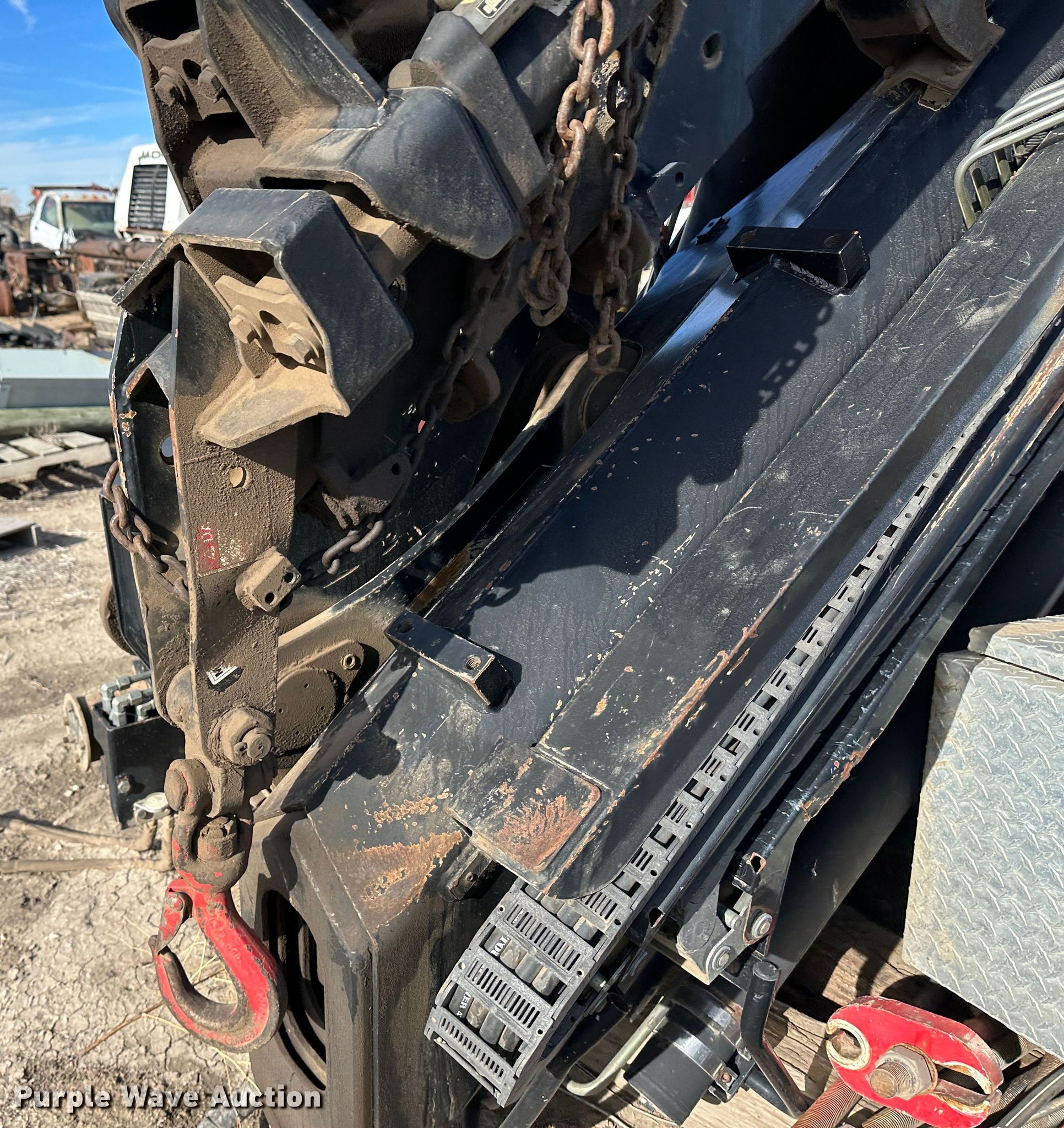 Hiab HB100X crane. Serial: 3220380. Features Boom Telescopic, Knuckle, Maximum lift capacity: 7,160 lbs, Maximum lift height: 70', Boom controls Ground, Lift chart. Notes Fire damage, Non-operational unit. 11457 R Rd.. Ness City, KS 67560