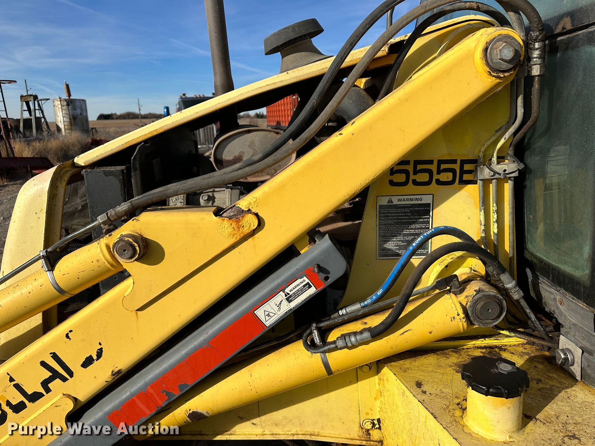 Purple Wave is selling a used Tractor Loader Backhoe in Kansas. This item is a New Holland 555E backhoe with the following: Hours: 10,426 on meter