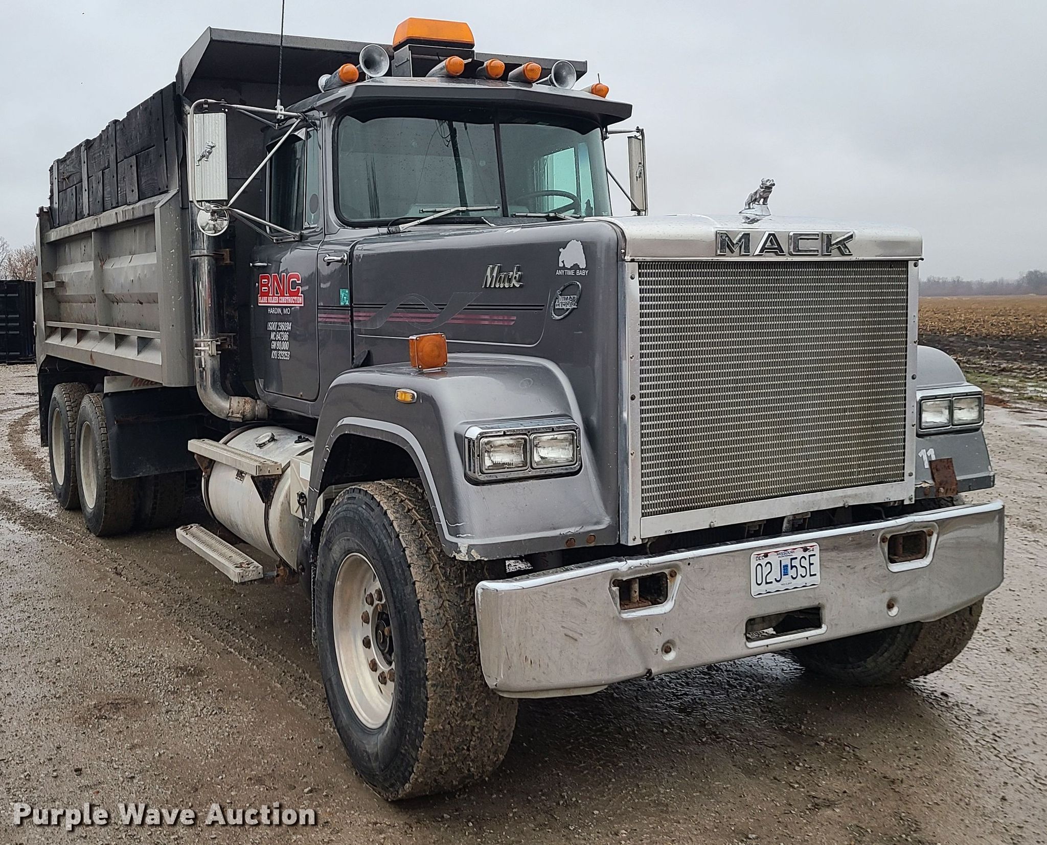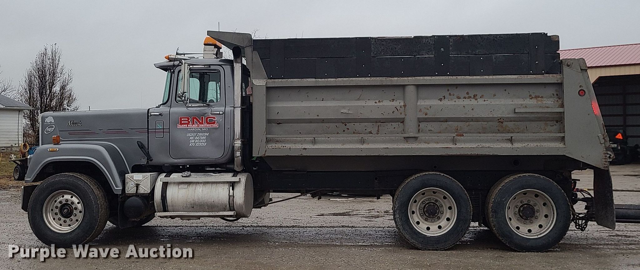 Purple Wave is selling a used Construction Dump Truck in Missouri. This item is a 1987 Mack RW713 dump truck with the following: Miles: 524,514 on odometer, Hours: 4,308 on meter, VIN: 1M2AY10Y1HM002333