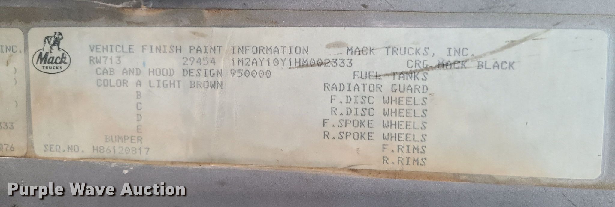- VIN: 1M2AY10Y1HM002333