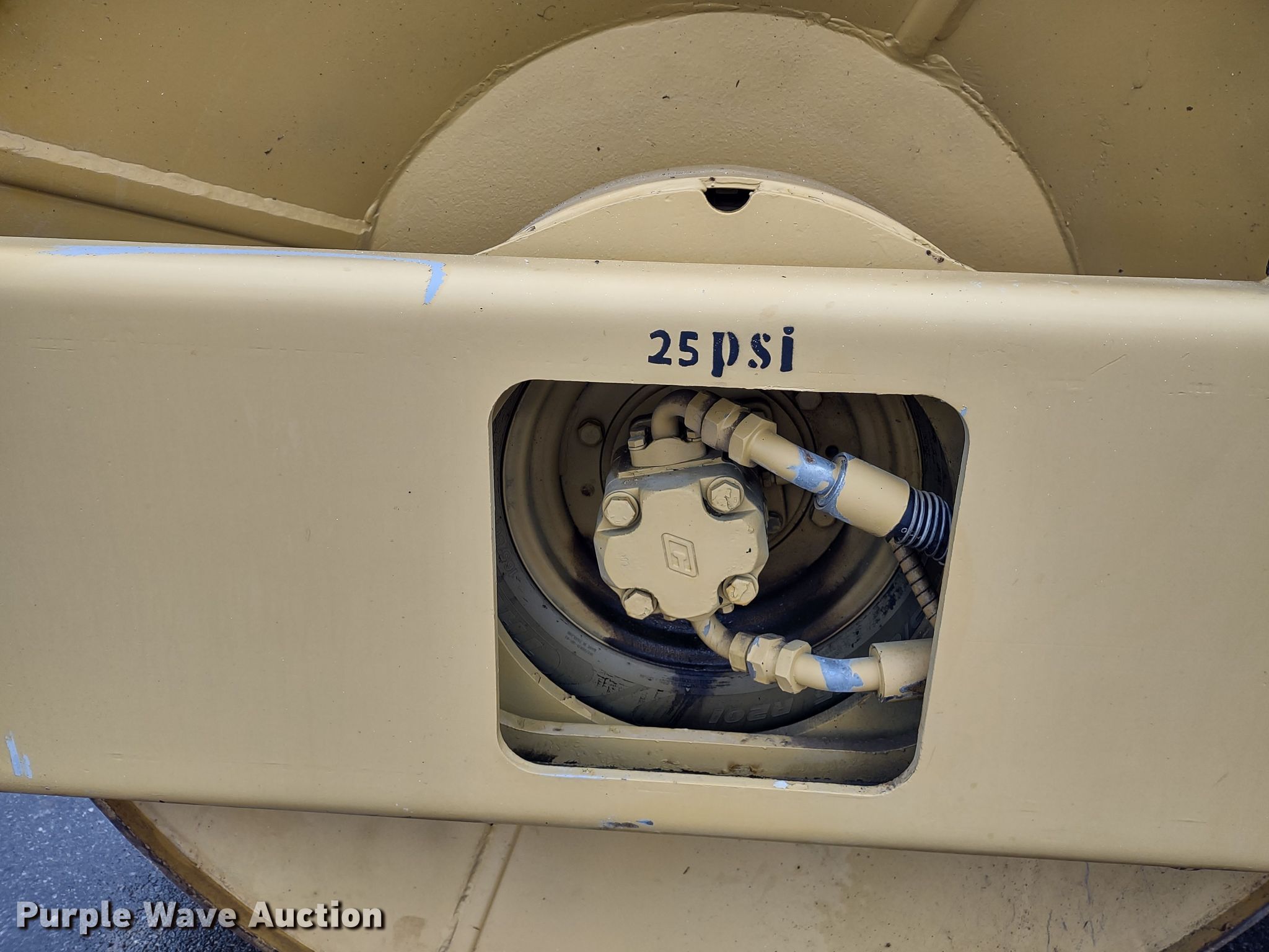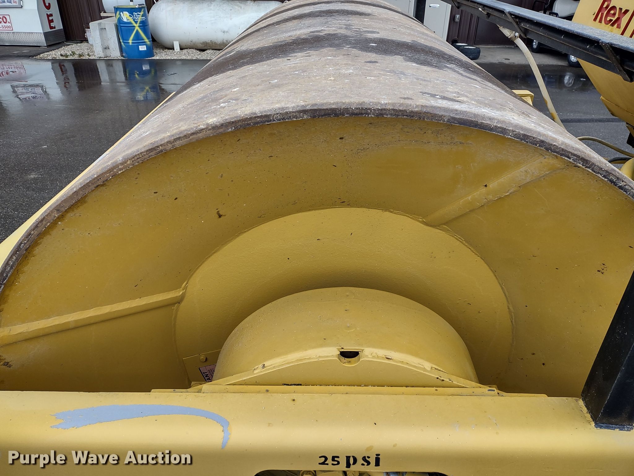 1979 Rexnord SP848 single drum vibratory roller. Hours: 676 on meter, Serial: 85HX661. Engine Detroit Diesel, Cylinders: 6, Fuel type: Diesel. Transmission Hydrostatic. Operators station Vandal cover. Features Drum: Smooth, Vibratory system: Single, Front drum Width: 84", Diameter: 60", Drum scrapers: Front, Water spray applicator: Front. Tires Size: 23.1-26. Ozarks International Race Way. 29211 Missouri 135. Gravois Mills, MO 65037