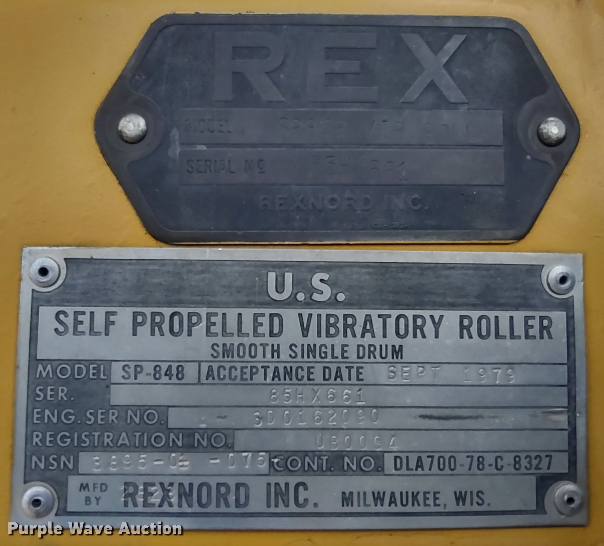 Purple Wave is selling a used Single Drum Roller Compactor in Missouri. This item is a 1979 Rexnord SP848 single drum vibratory roller with the following: Hours: 676 on meter, Serial: 85HX661