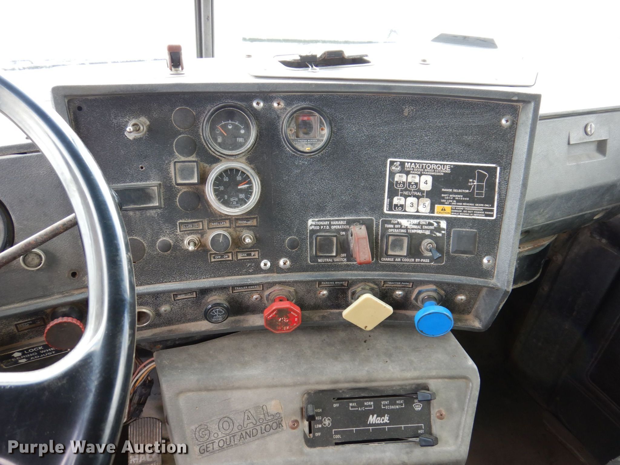 1995 Mack RD690S dump truck. Miles: 479,503 on odometer, Hours: 28,890 on meter, VIN: 1M2P264C0SM018912. Engine Mack EM7-300, Displacement: 12.0L, Cylinders: 6, Fuel type: Diesel. Transmission Mack Maxitorque, Manual, Speed: 7. Chassis Axles: Tandem, Differential lock: Inter-axle, Suspension: Camelback, Brakes: Air, PTO, Wheelbase: 227". Interior AC, Heat, Brake controller. Features Dump bed 16' L x 96" W, Side height: 45", Bed type: Steel, Ram: Single , End gate: Air operated. Tires Front: 315/80R22.5, Rear: 11R22.5. Illinois title. Title distribution may be delayed up to 14 days from verification of funds. Paving Pros LLC. 810 South McMullen Drive. Kankakee, IL 60901