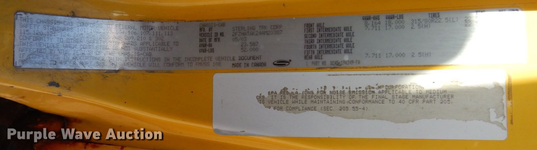 Purple Wave is selling a used Construction Dump Truck in Illinois. This item is a 2004 Sterling L-Line dump truck with the following: Miles: 127,880 on odometer, Hours: 8,412 on meter, VIN: 2FZHATAK24AM20387