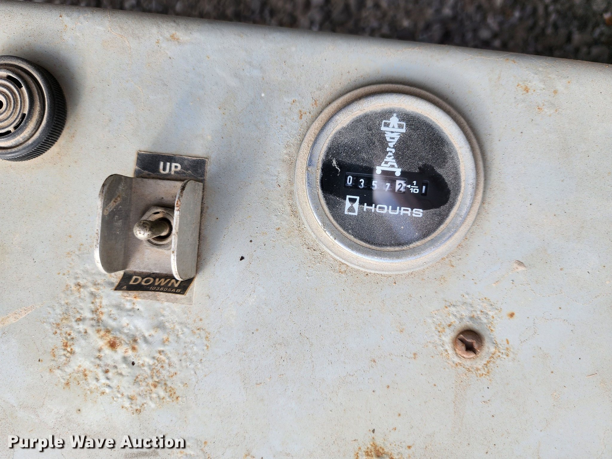 2001 Skyjack SJIII 4626 scissor lift. Hours: 357 on meter, Serial: 707693. Electric Motor Volts: 24. Features Maximum lift capacity: 850 lbs, Maximum lift height: 26', Platform: 84" L x 44" W, Controls: Platform, Platform extensions: Manual. Tires Solid, Non-marking. Associated Door Company. 526 East 3rd Street. Sedalia, MO 65301
