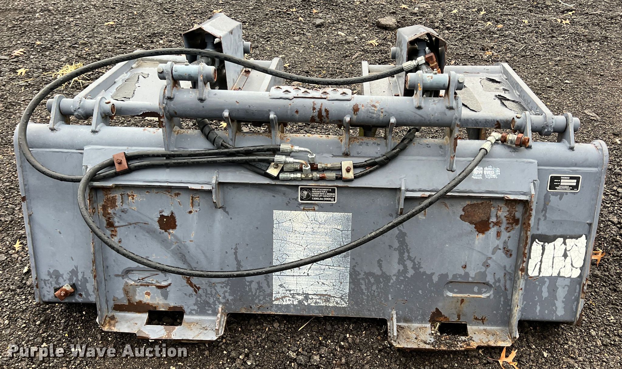 Purple Wave is selling a used Skid Steer Attach. in Kansas. This item is a Thomas B305 skid steer grapple bucket with the following: Serial: U-1930, Width: 60", Cutting edge: Weld-on