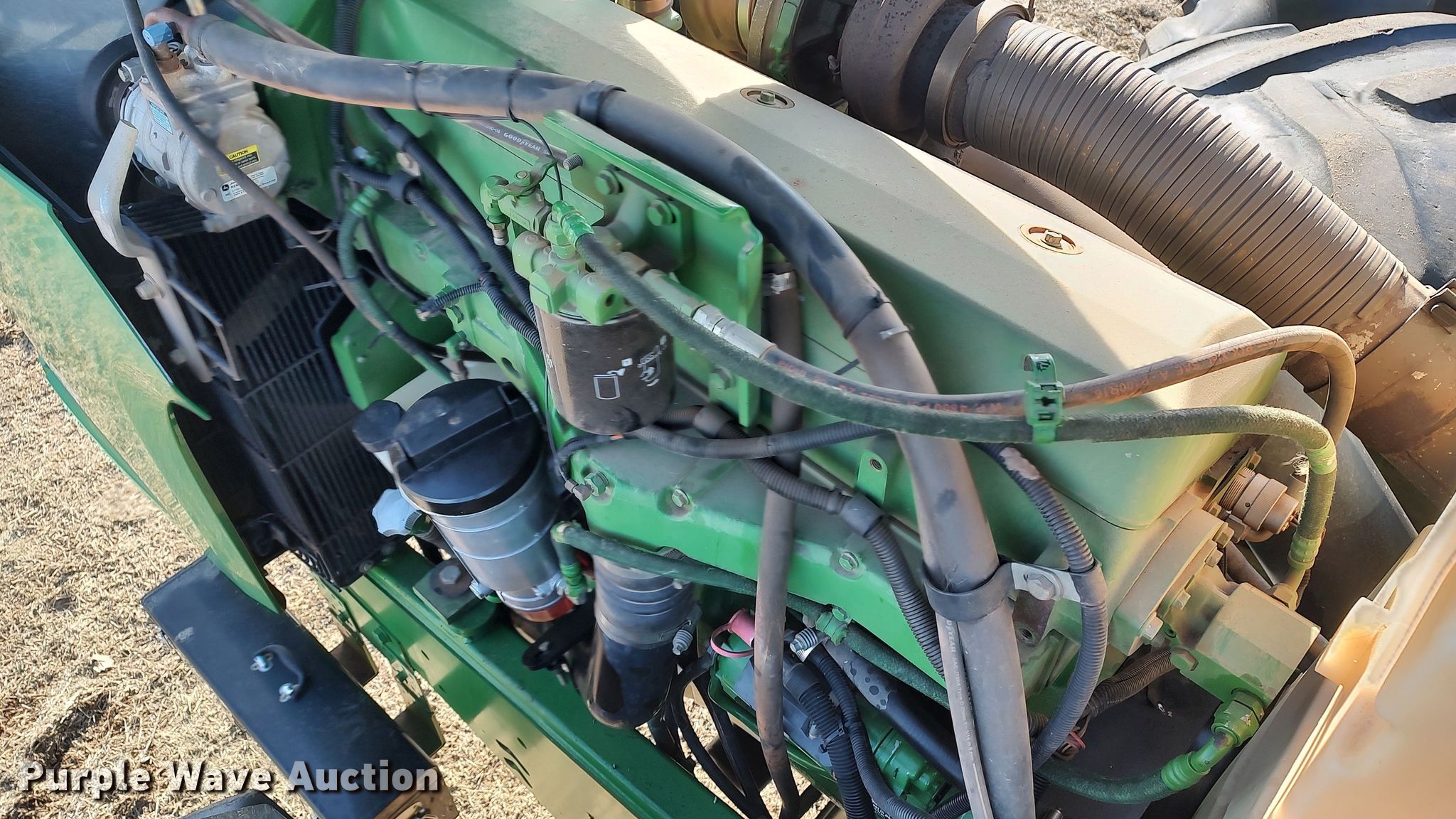 2005 John Deere 9620 4WD tractor. Hours: 5,082 on meter, Serial: RW9620P032215. Engine John Deere 6125HRW18, Serial: 5JDXL12.5035, Displacement: 12.5L, Cylinders: 6, Fuel type: Diesel, kW: 373. Transmission Powershift, 18F - 6R, Differential lock. Operators station AC, Heat, Auto steer. Features Seven pin outlet, ISOBUS outlet, Hydraulic remote sets Rear: 4, Suitcase weights: 20, Drawbar. Tires Front: 800/70R38, Duals, Front duals. Bishop Construction LLC. 905 Overhead Drive. Oklahoma City, OK 73128