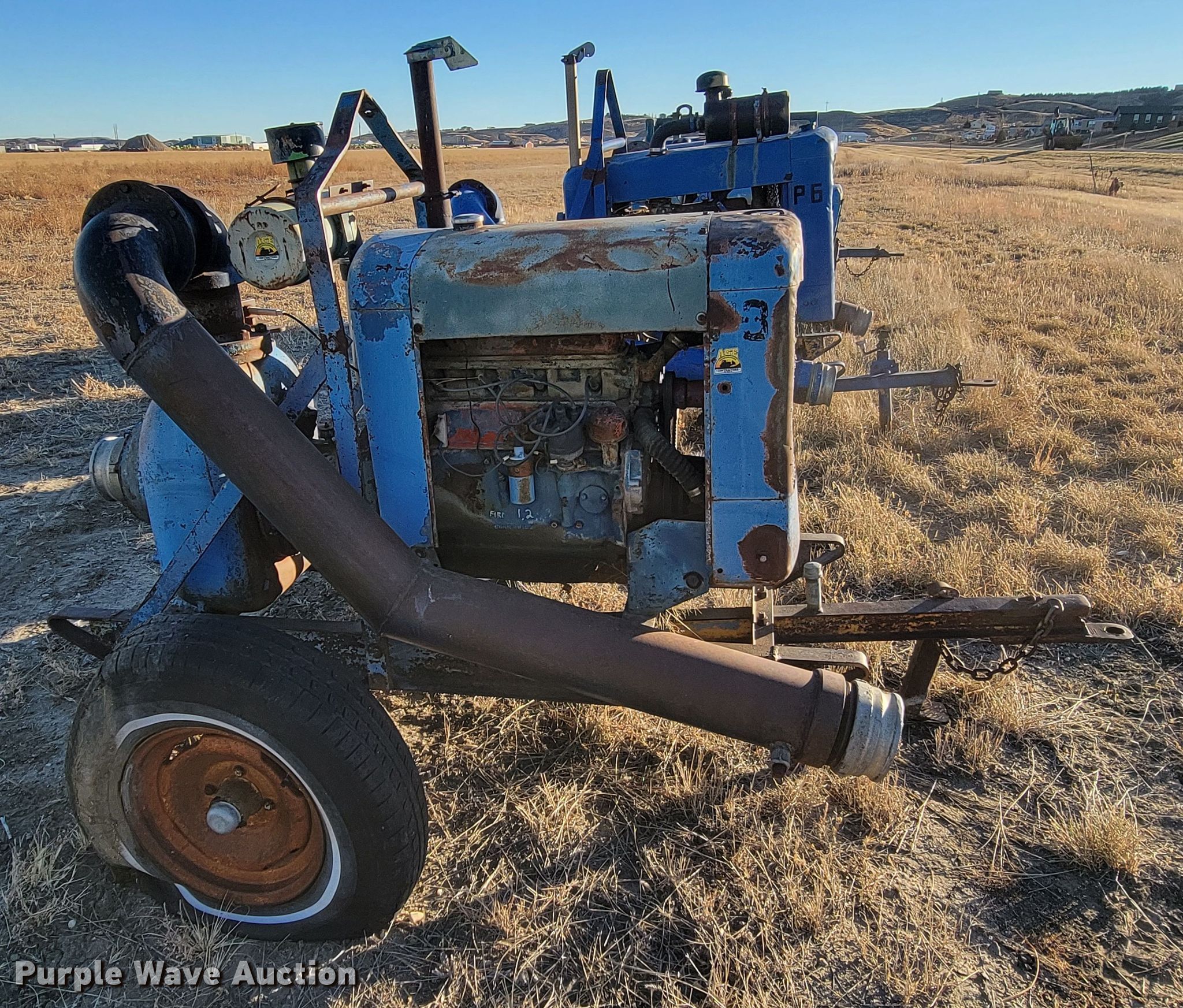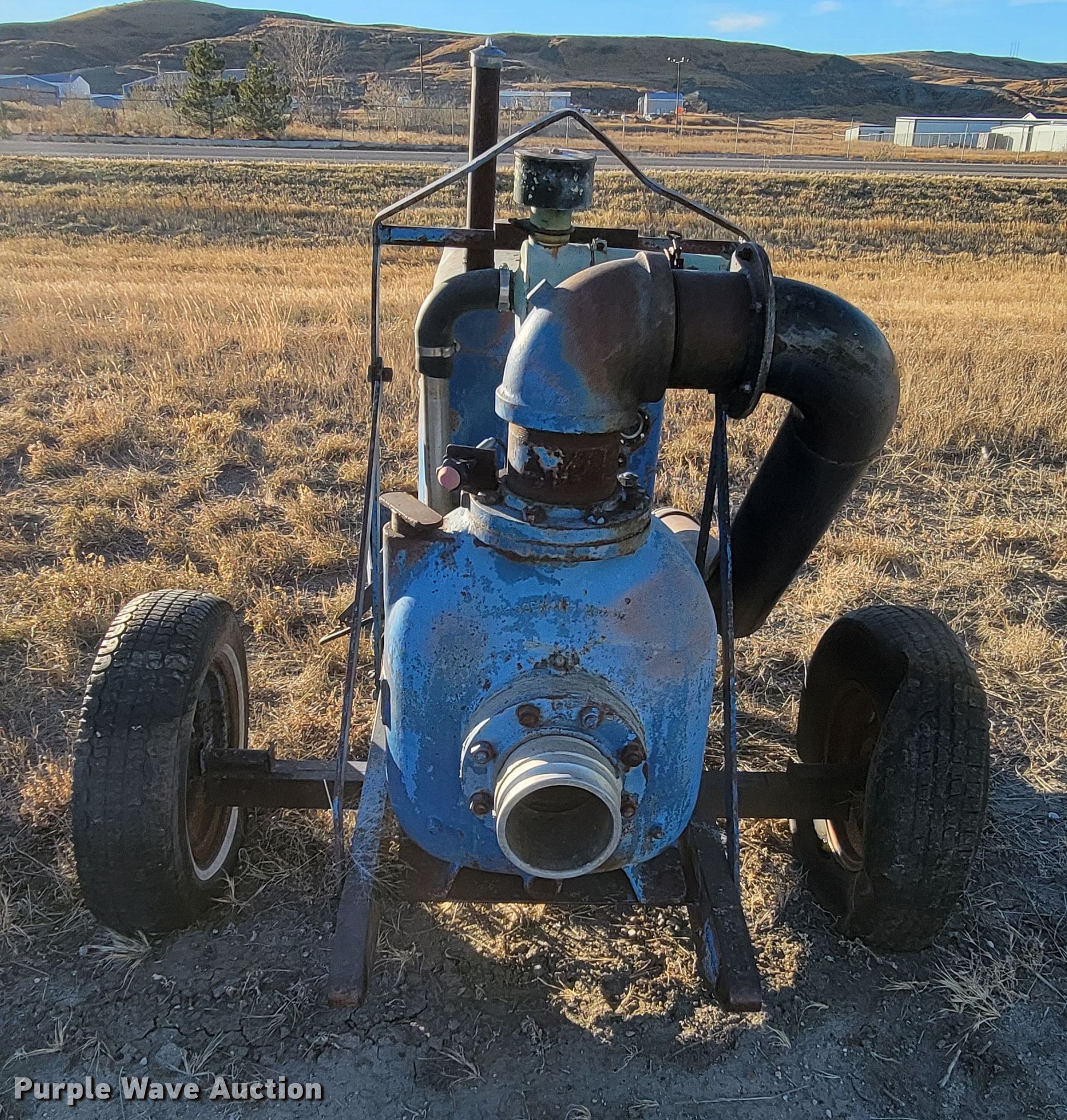 Gorman Rupp pump. Four cylinder gas engine, 7" inlet/discharge, Single leg landing gear, No battery, Flat tires, Unknown operating condition. Transfer of ownership documentation will be a bill of sale. AGE Corporation. 704 US-14. Fort Pierre, SD 57532