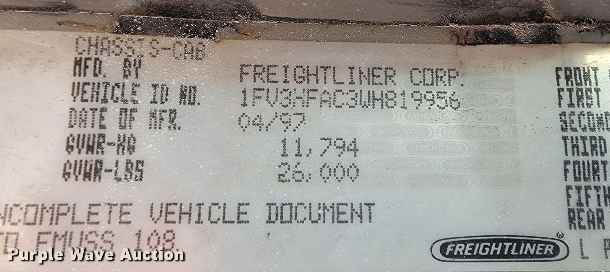 - VIN: 1FV3HFAC3WH819956