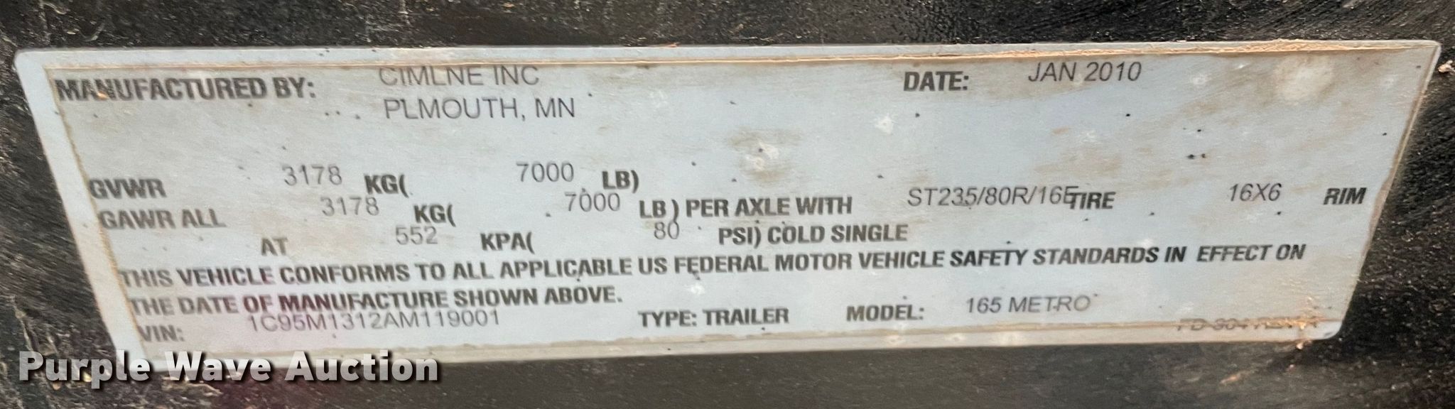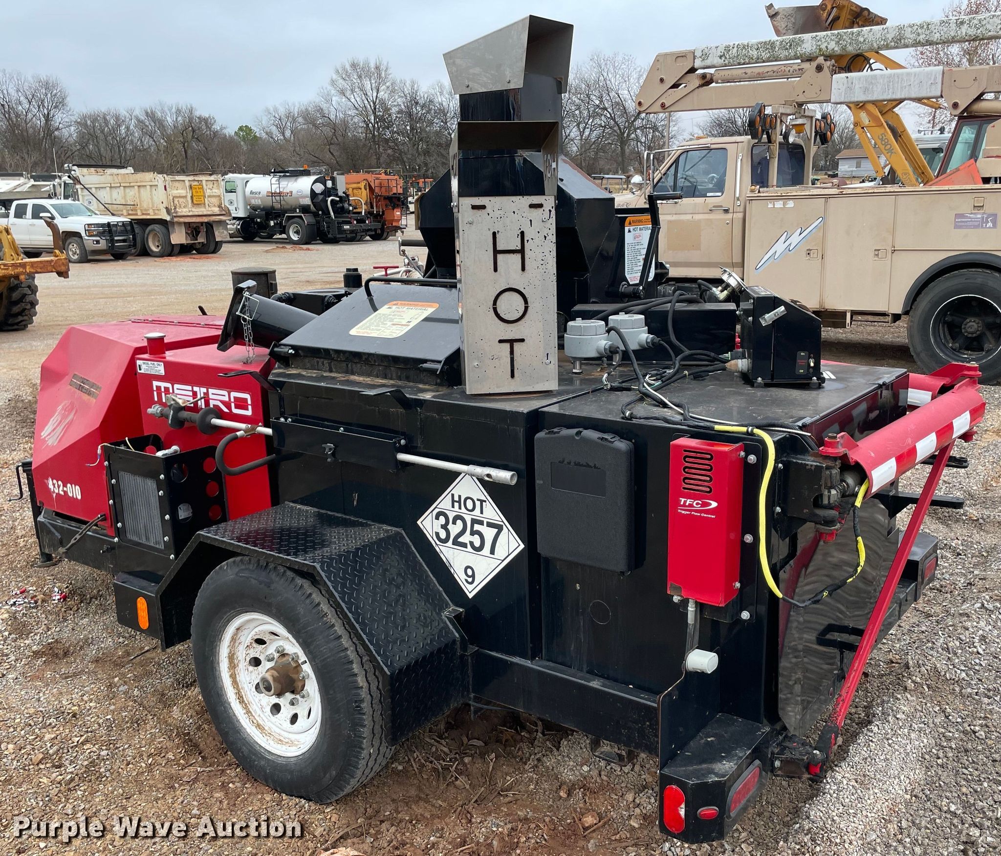 Purple Wave is selling a used Pot Hole Patcher in Oklahoma. This item is a 2010 Metro 165 crack sealer with the following: Hours: Unknown, 14'L x 7'W, Isuzu 1.496L three cylinder diesel, Spring suspension, Electric brakes, 7.50-16LT, VIN: 1C95M1312AM119001
