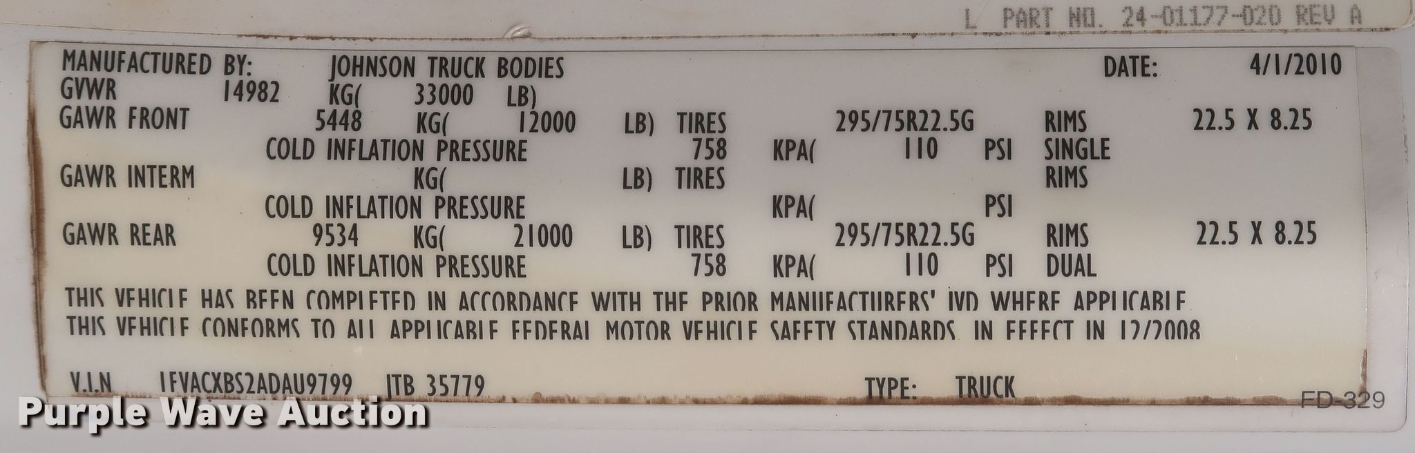 Purple Wave is selling a used Fuel Truck in Oklahoma. This item is a 2010 Freightliner Business Class M2 fuel / lube truck with the following: Miles: 179,547 on odometer, Miles or hours may vary, unit still in use, VIN: 1FVACXBS2ADAU9799, Unit #: 271E