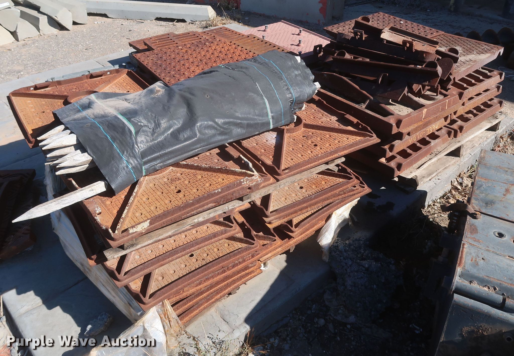 Purple Wave is selling a used Road Safety Equip. in Oklahoma. This item is a Road safety equipment with the following: Right of way covers, Grates, Lids, Brands include ADA Solutions, Duralast, and Neenah Foundry