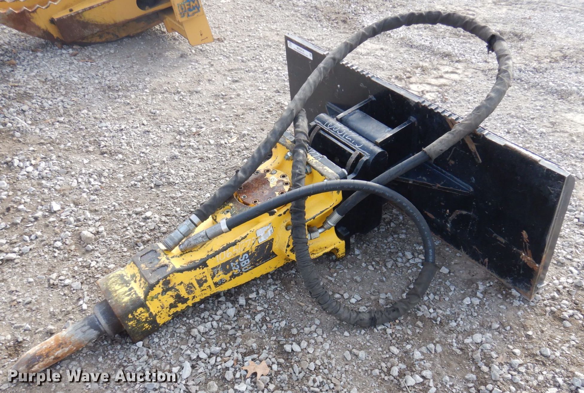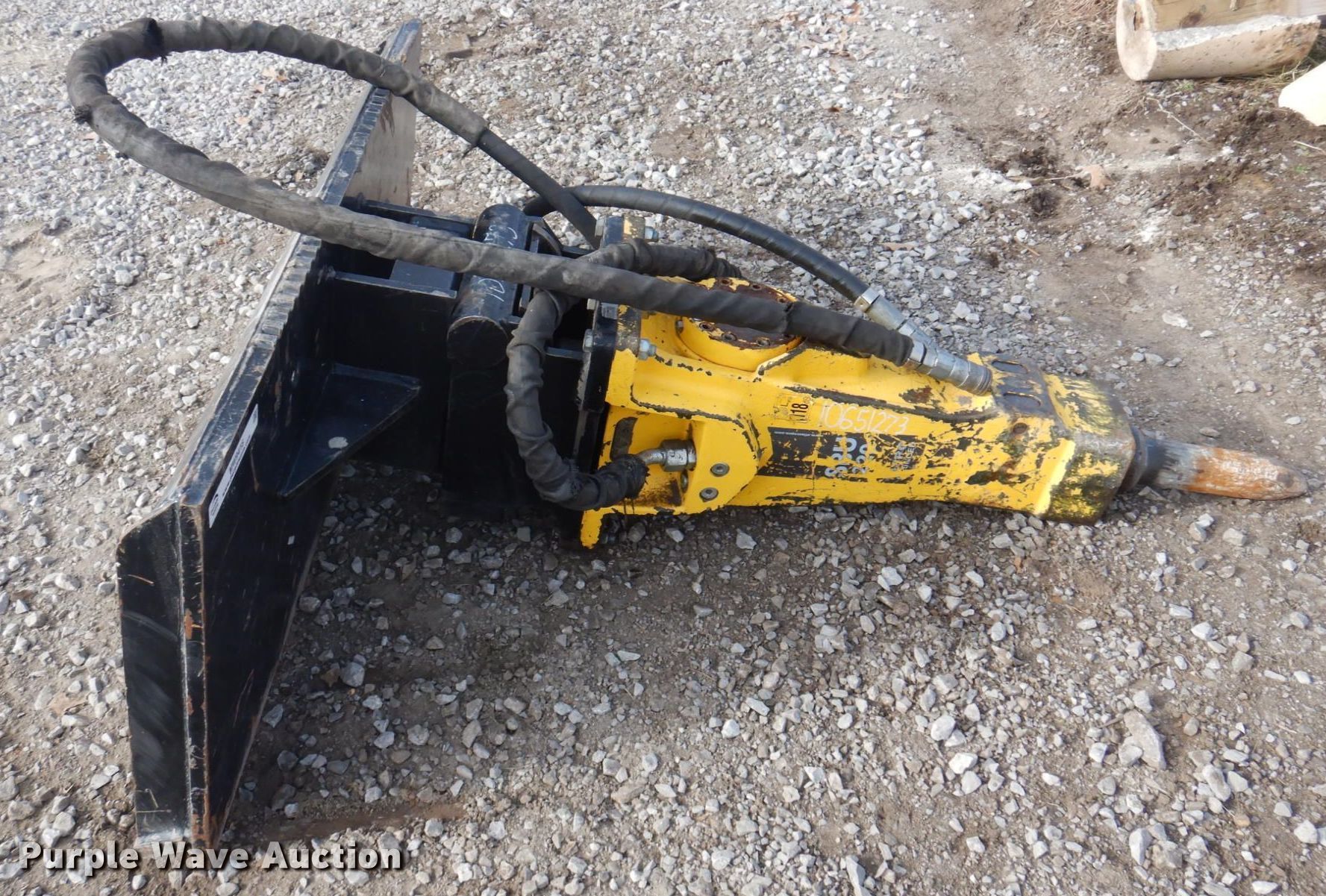 2017 Atlas Copco SBU220 skid steer breaker. Serial: BES 082282, TAG attachment. M & M Utilities, LLC. 10505 Liv 233. Chillicothe, MO 64601