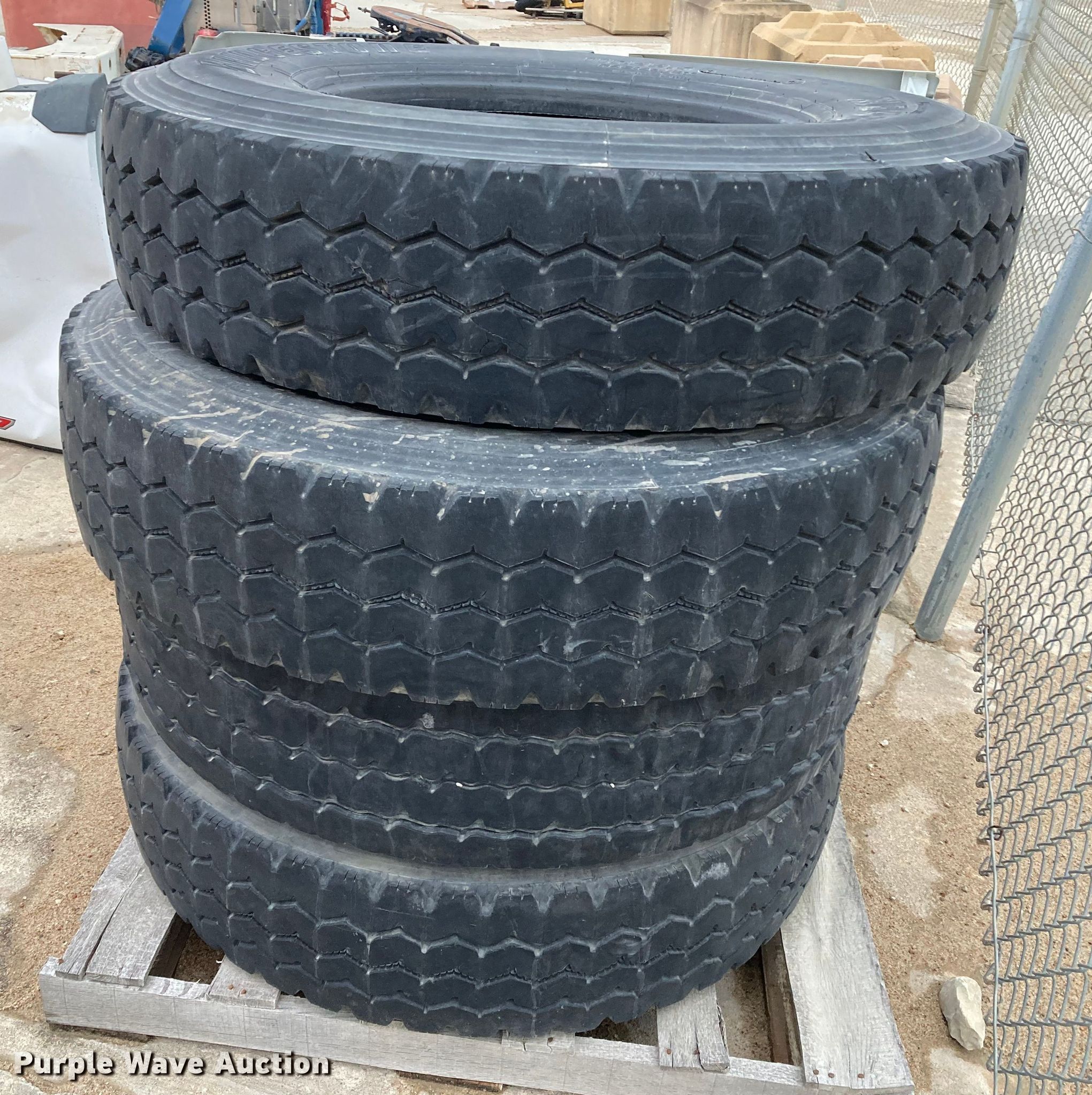 Purple Wave is selling a used Fleet Tires in Kansas. This item is a (4) Bridgestone M843 11R22.5 tires with the following: (4) Bridgestone M843 11R22.5 tires. Midwest Concrete Materials. Manhattan, KS 66502