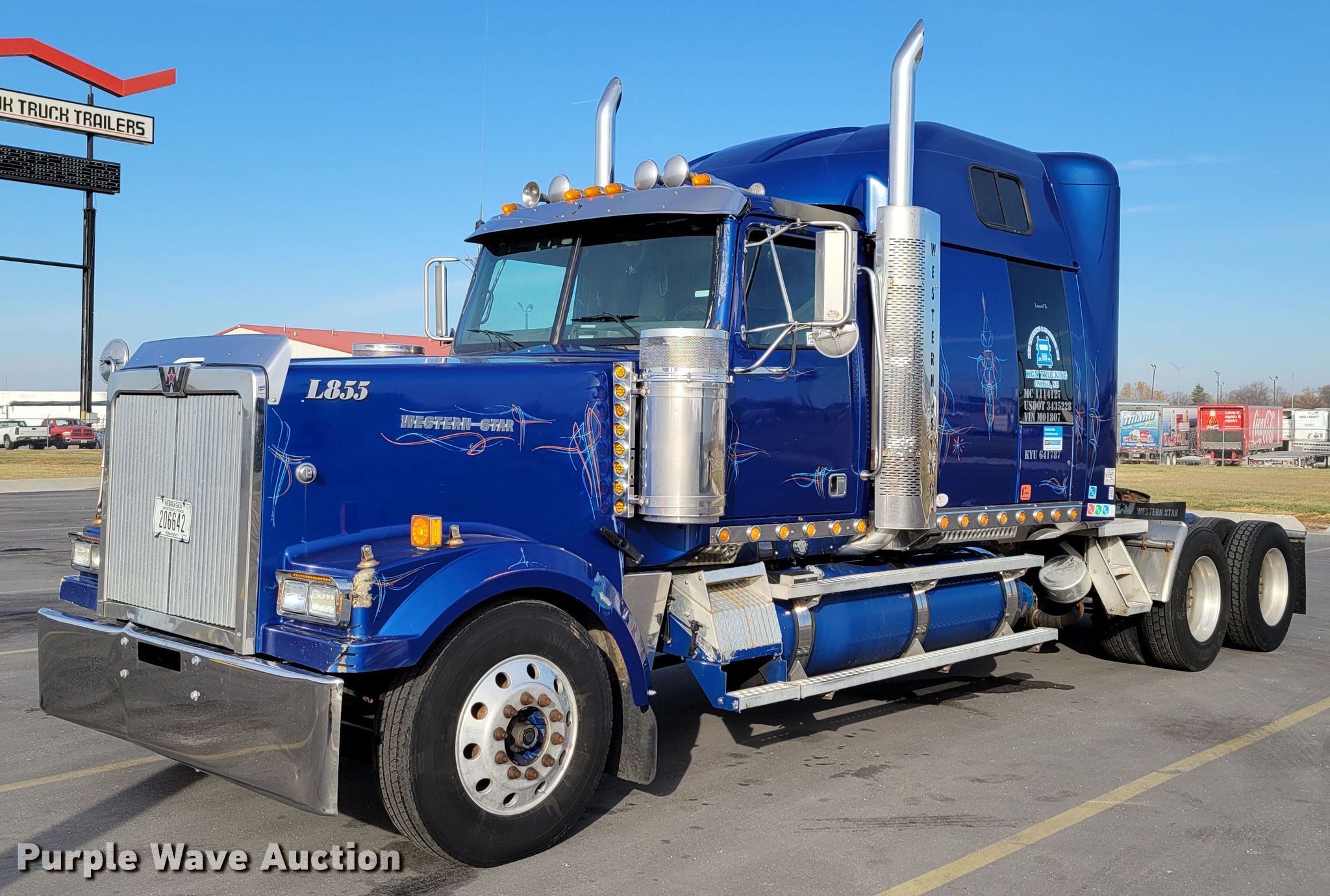 Purple Wave is selling a used Truck Tractor in Iowa. This item is a 2003 Western Star 4900EX semi truck with the following: Miles: 1,000,000 on odometer, Hours: 26,917 on meter, VIN: 5KJJABCKX3PM01807, Unit #: 855