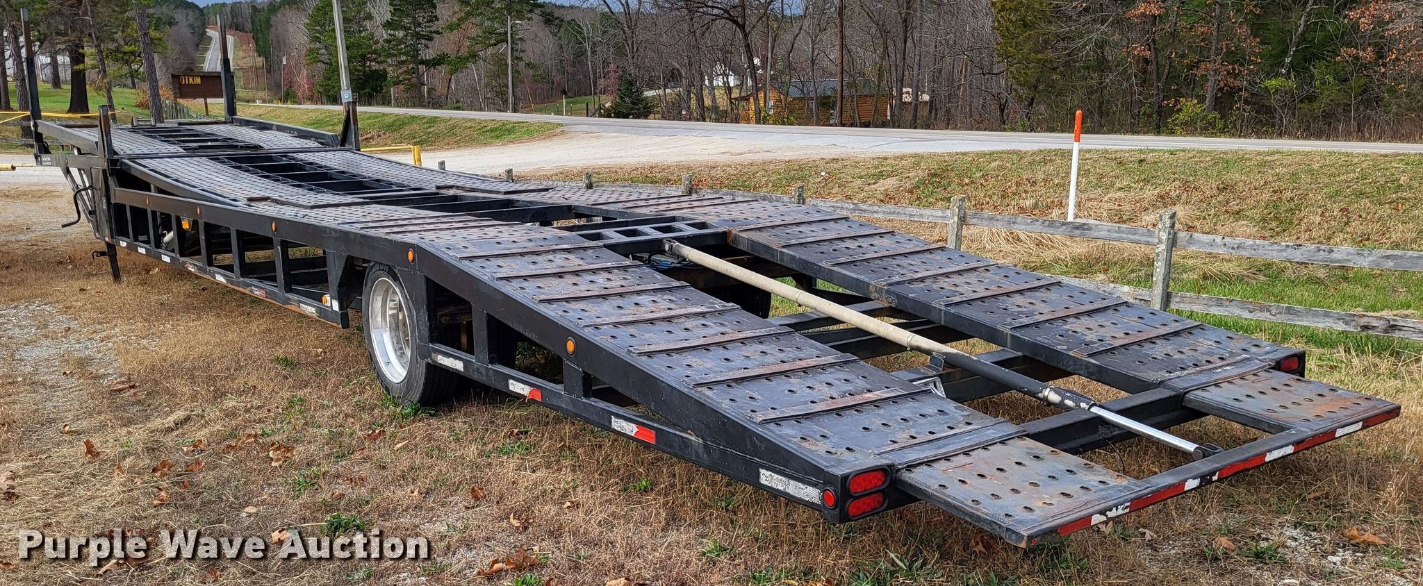 2015 Sun Country Trailers car carrier. VIN: 5856C5314EP001382. Dimensions Overall: 52' 10" L x 102" W, Top deck length: 32' 6", Deck height: 40", Tail length: 10', Ramps: Hydraulic Length: 10'. Features Deck type: Steel, Self-contained hydraulics, Winch Badland ZXR 12000, Capacity: 12,000 lbs. Chassis Landing gear: Dual, Brakes: Air, GAWR: 25,000 lbs. Tires Size: 255/70R22.5. Missouri title. Title has a lien that will be released following the close of the auction. Title distribution may be delayed up to 30 days from verification of funds. Ozark Transportation. 9402 Highway 32. Ste. Genevieve, MO 63670