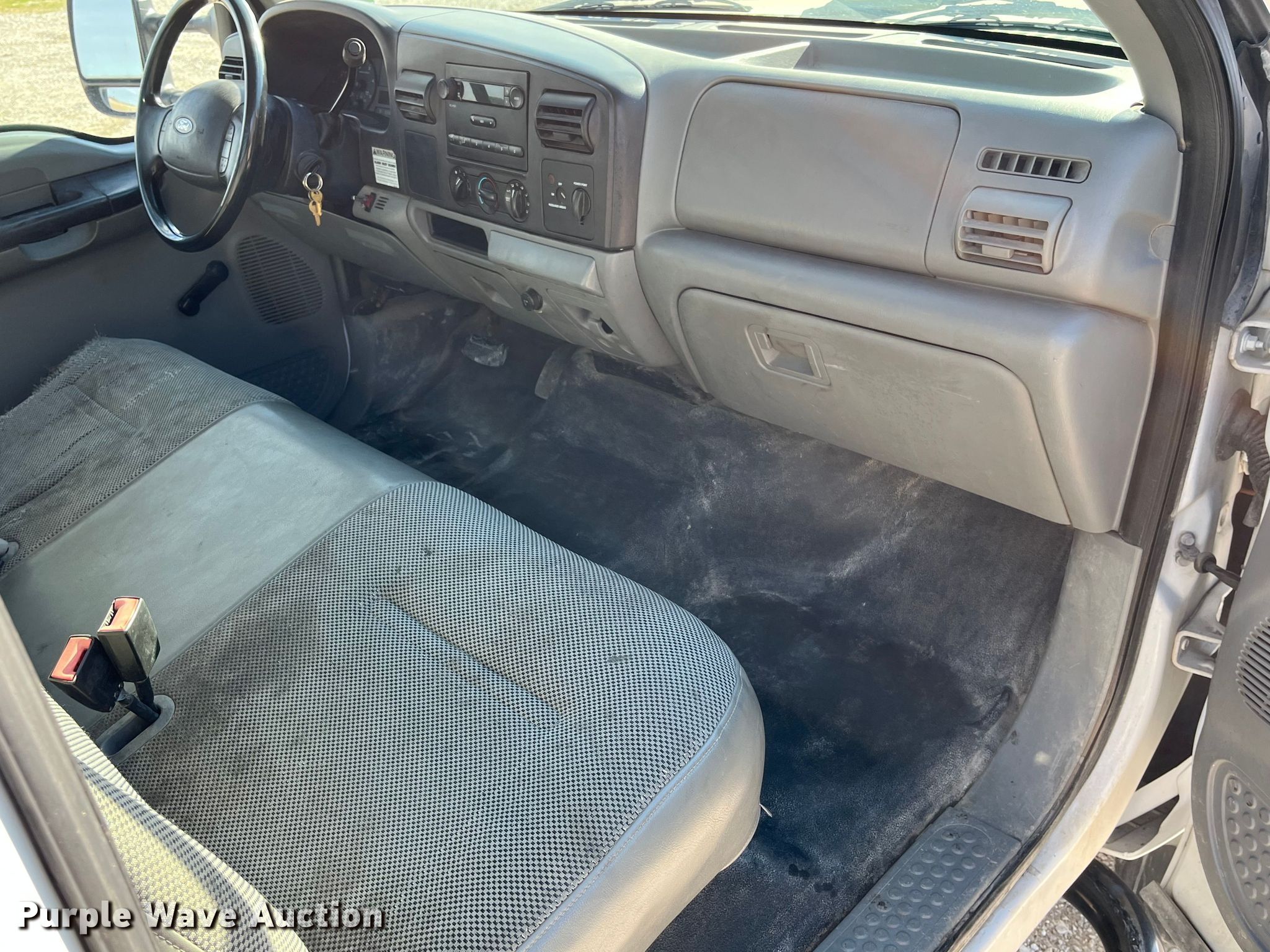 2005 Ford F450 Super Duty XL flatbed truck. Miles: 206,688 on odometer, Hours: 5,783 on meter, VIN: 1FDXF46P45EC28887. Engine Displacement: 6.0L, Cylinders: 8, Fuel type: Diesel. Transmission Automatic. Chassis Axles: Single, Suspension: Spring, Brakes: Hydraulic, GVWR: 16,000 lbs, Wheelbase: 165". Interior AC, Heat, Cruise control. Features Flatbed 11' L x 8' W. Tires Size: 225/70R19.5. Notes Dash warning indicator: Water in fuel, Windshield chipped or cracked. Missouri title. Title distribution may be delayed up to 14 days from verification of funds. 1136 Cairo Outer Road. Cairo, MO 65239