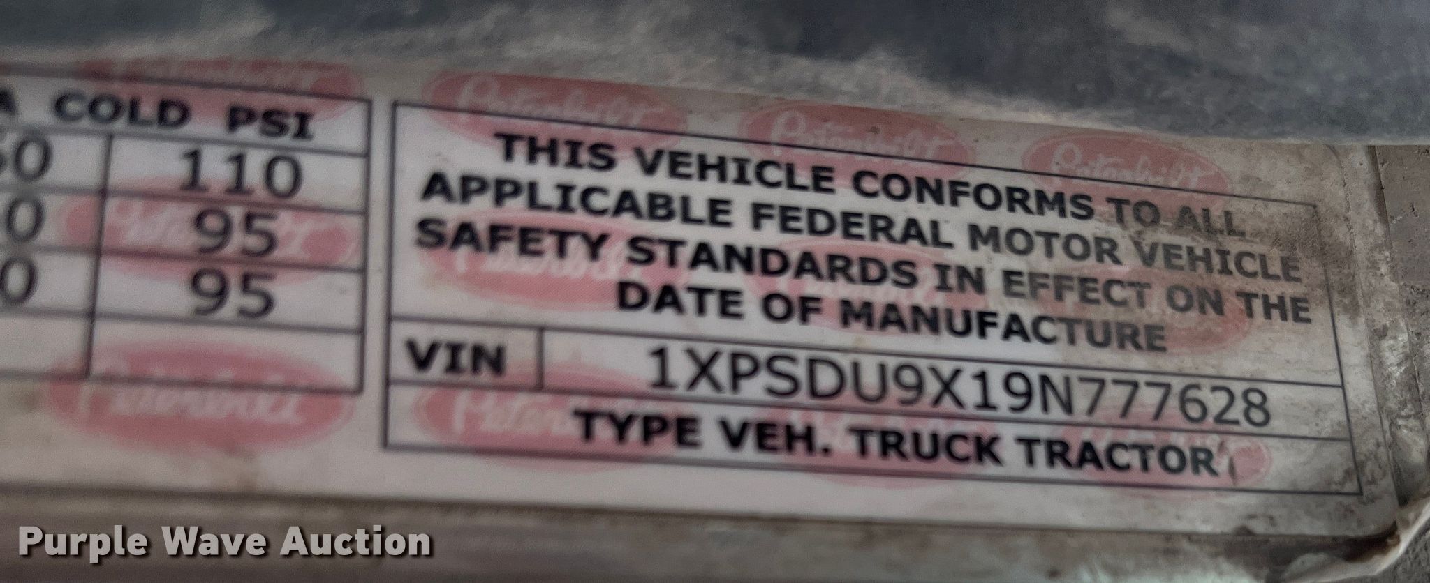 Purple Wave is selling a used Truck Tractor in Kansas. This item is a 2009 Peterbilt 365 semi truck with the following: Miles: 481,874 on odometer, Hours: 20,505 on meter, VIN: 1XPSDU9X19N777628