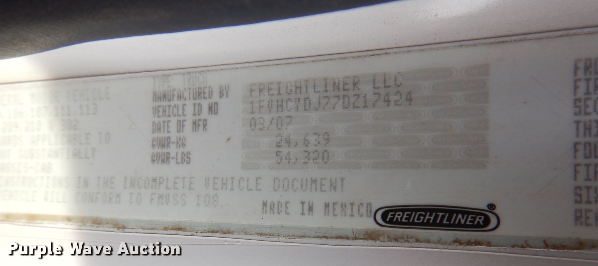 - VIN: 1FVHCYDJ77DZ17424