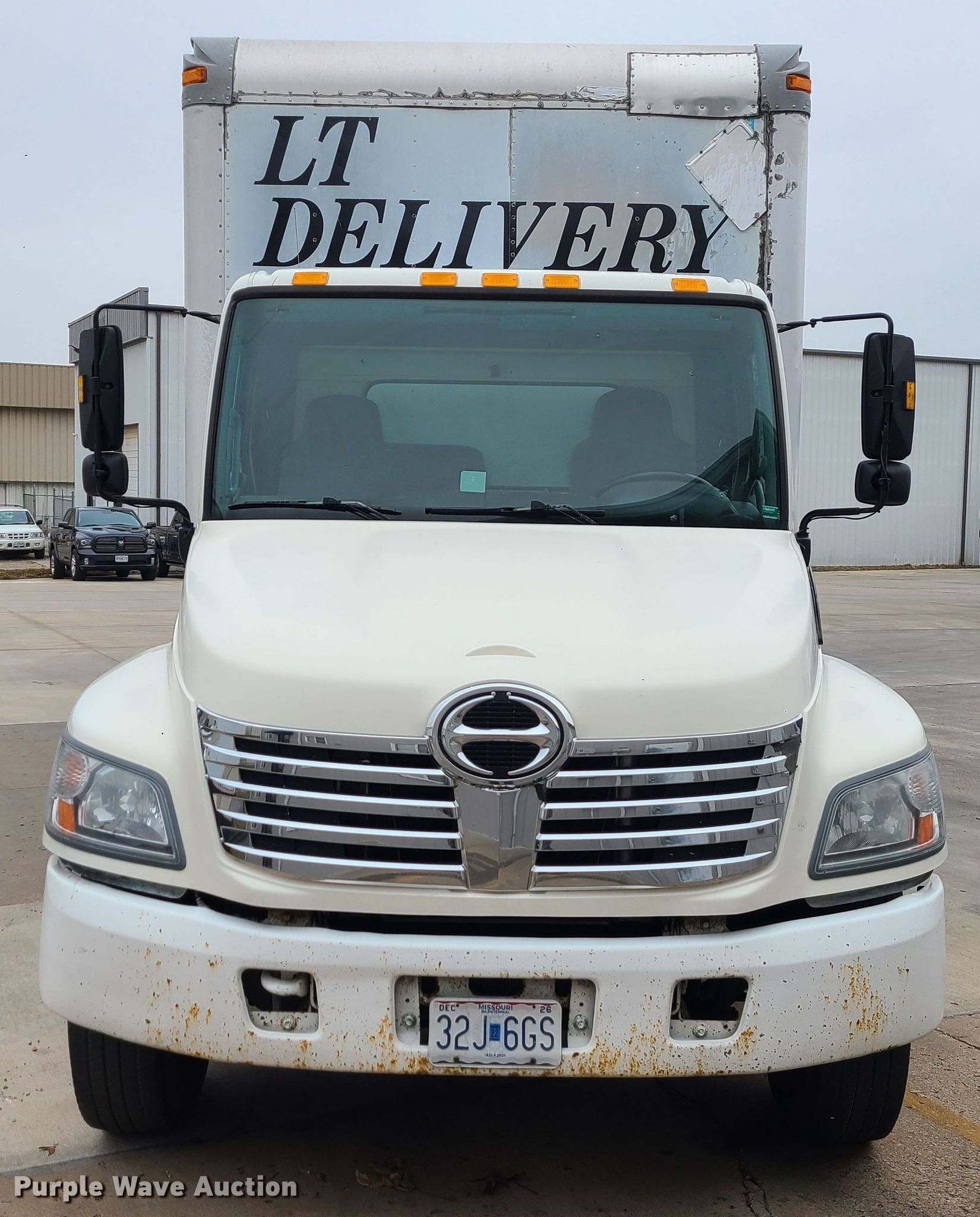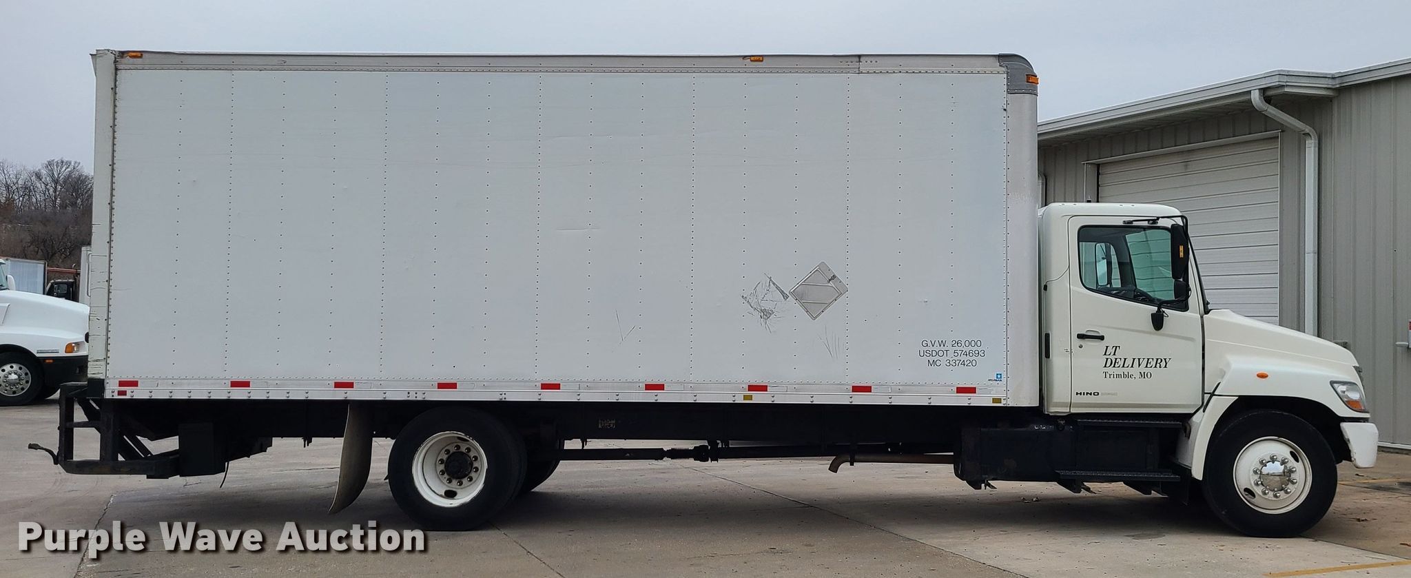 2007 Hino 268 box truck. Miles: 501,570 on odometer, VIN: 5PVNE8JT272S51387. Engine Hino J08E-TA, Displacement: 7.6L, Cylinders: 6, Fuel type: Diesel. Transmission Automatic. Chassis Axles: Single, Suspension: Spring, Brakes: Hydraulic. Interior AC, Heat, Power windows. Features Box bed Morgan, 24.5' L x 102" W x 102" H, Floor: Wood, End gate lift. Tires Size: 295/75R22.5. Missouri title. Title distribution may be delayed up to 14 days from verification of funds. LT Delivery, Inc.. 5034 NW Waukomis Dr. Northmoor, MO 64151