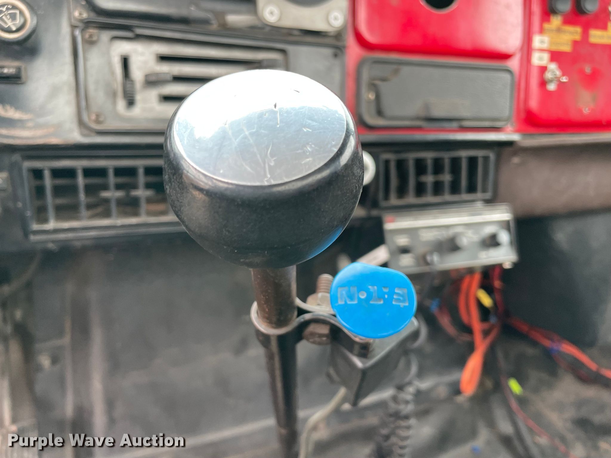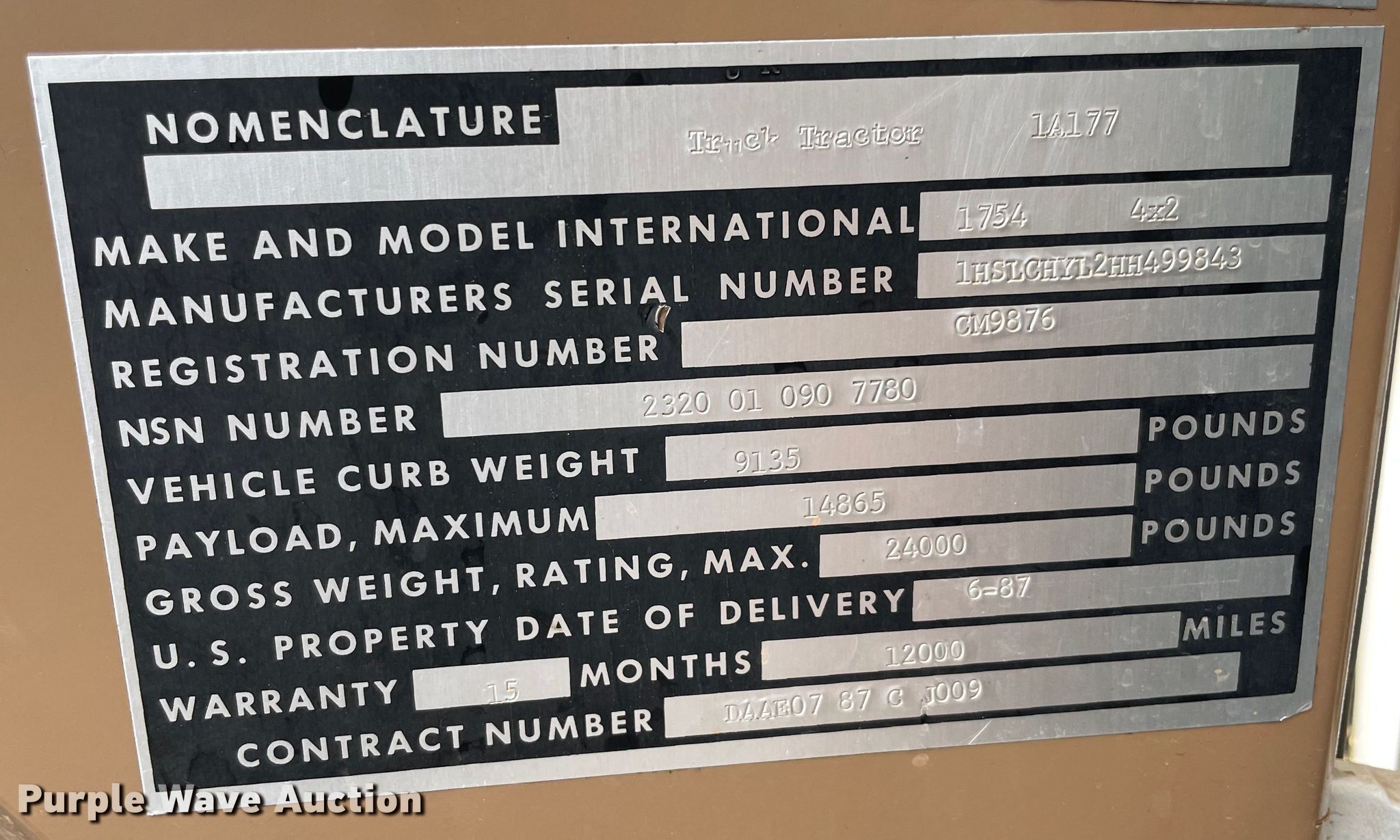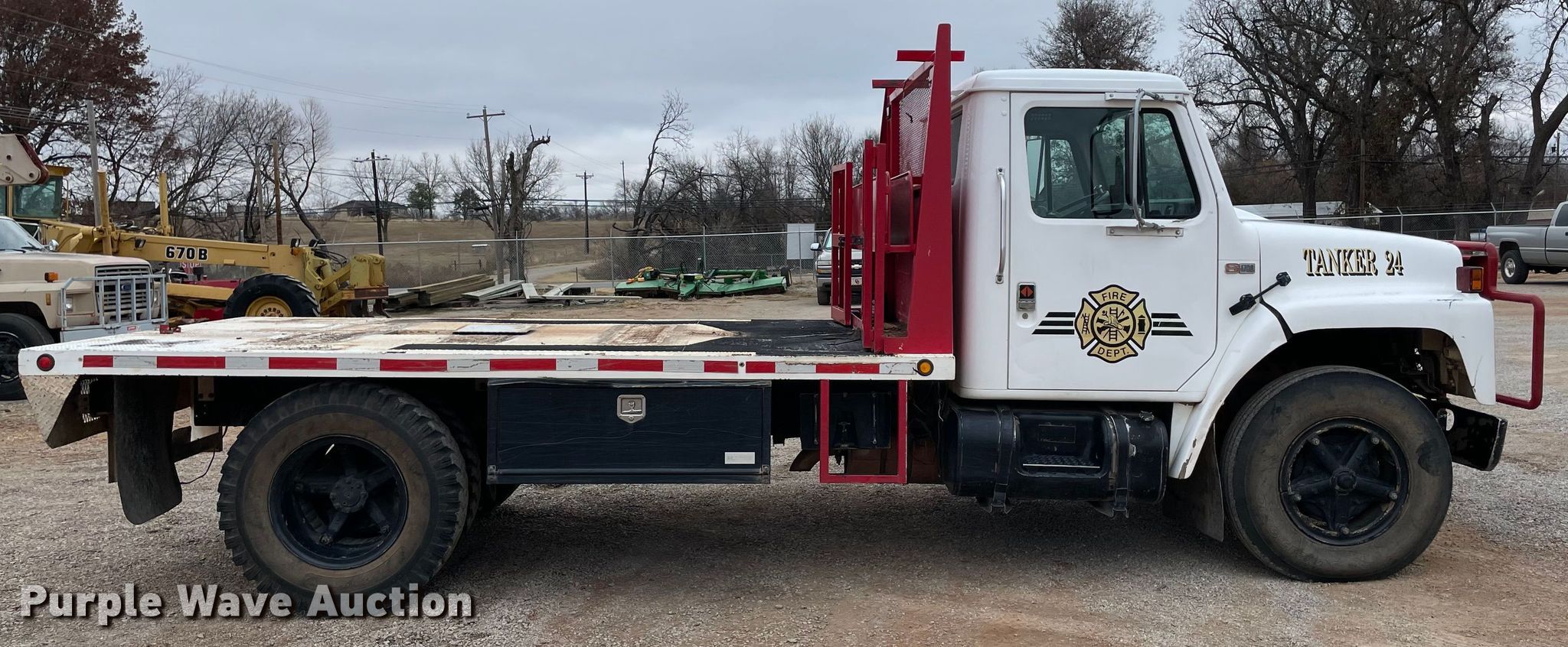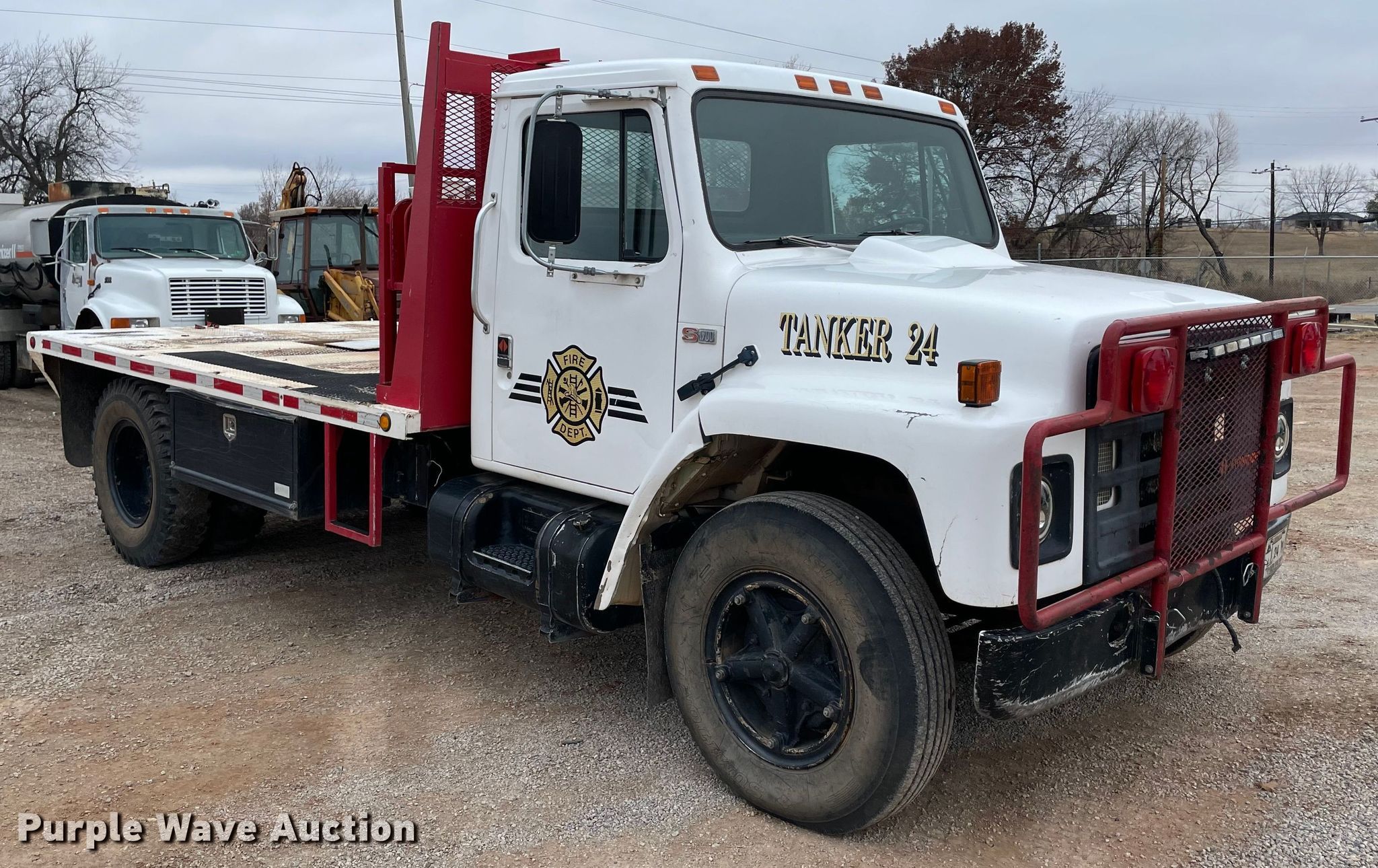 1987 International 1754 flatbed truck. Miles: 101,469 on odometer, VIN: 1HSLCHYL2HH499843. Engine Displacement: 9.0L, Cylinders: 6, Fuel type: Diesel. Transmission Manual, Speed: 5, plus 2. Chassis Axles: Single, Suspension: Spring, Brakes: Air, GVWR: 25,000 lbs. Interior AC, Heat. Features Flatbed 13' L x 96" W. Tires Front: 9.00R20, Rear: 10.00-20. Oklahoma title. Mileage has not been verified. Exempt will be written in the odometer disclosure on the title. Title distribution may be delayed up to 14 days from verification of funds. Garvin County. 1275 6th St. Maysville, OK 73057