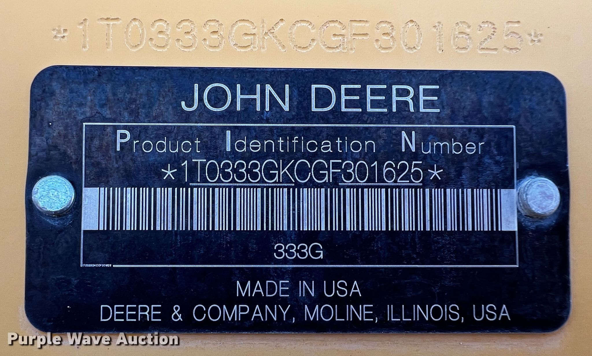 Purple Wave is selling a used Tracked Skid Steer Loader in Texas. This item is a 2016 John Deere 333G tracked skid steer loader with the following: Hours: 2,240 on meter, Serial: 1T0333GKCGF301625
