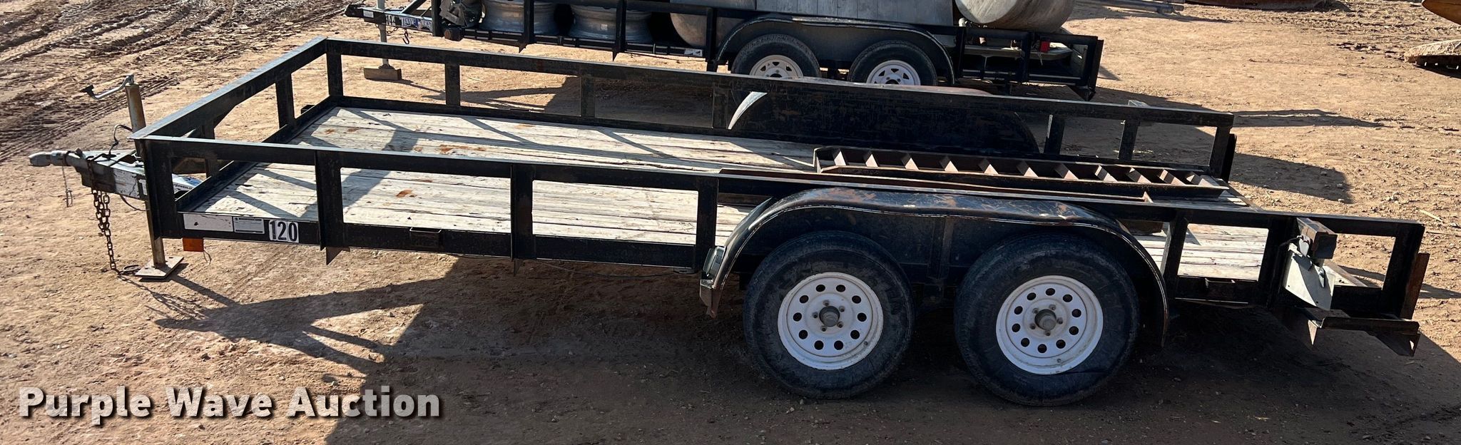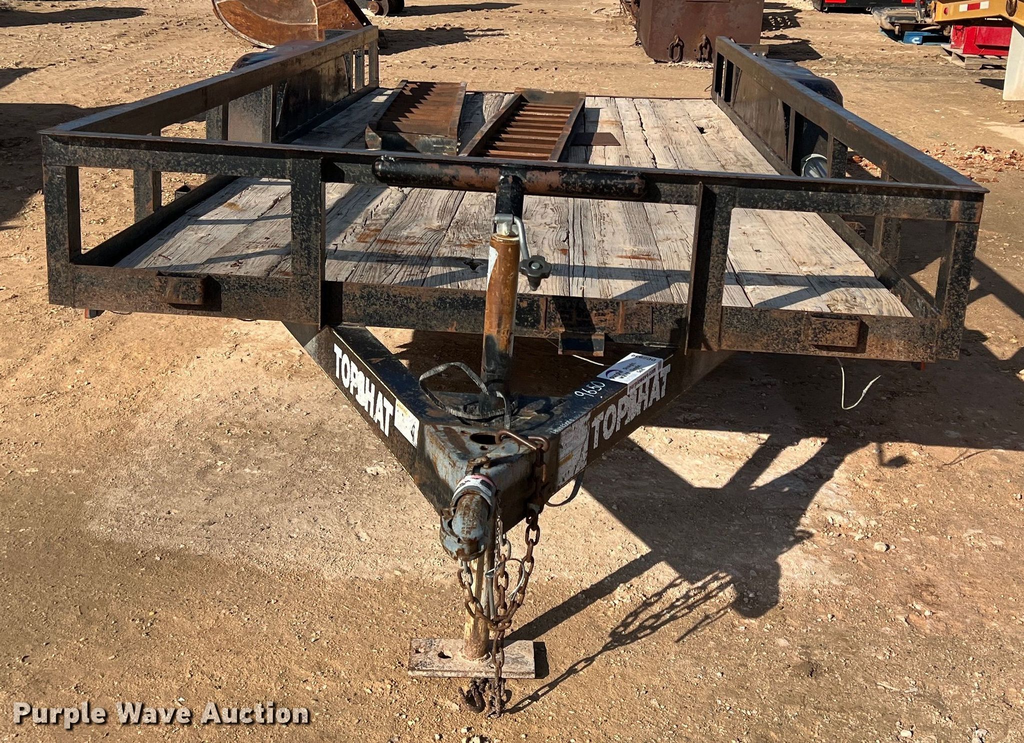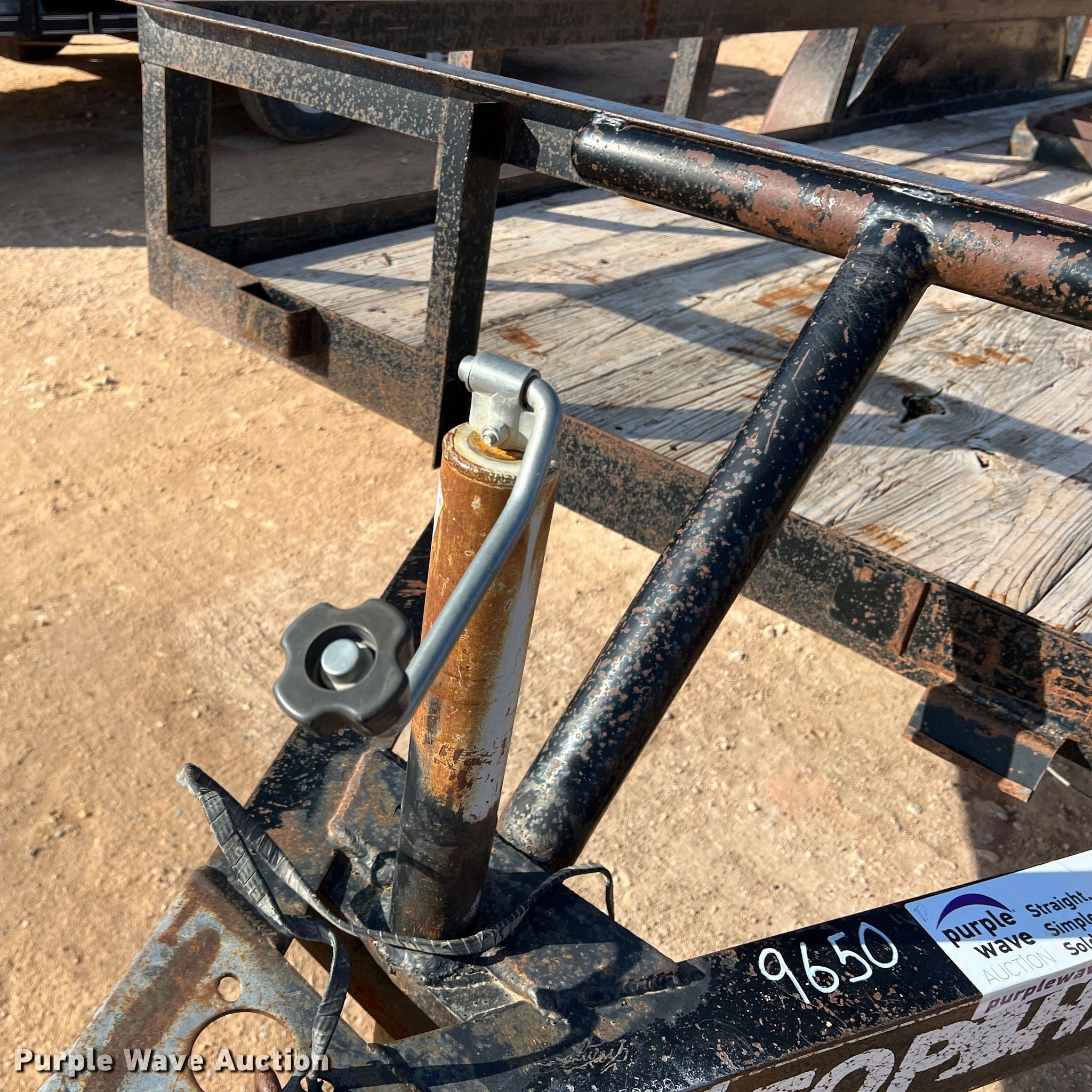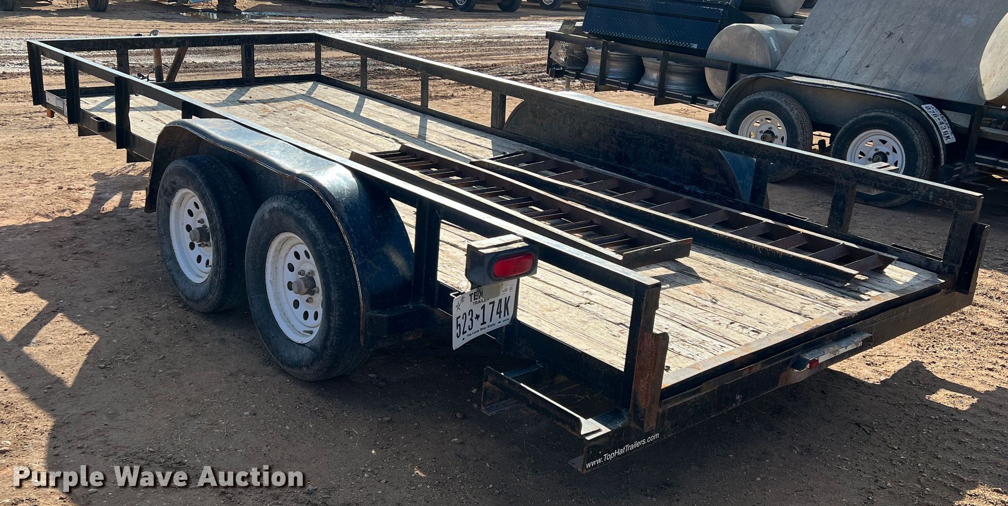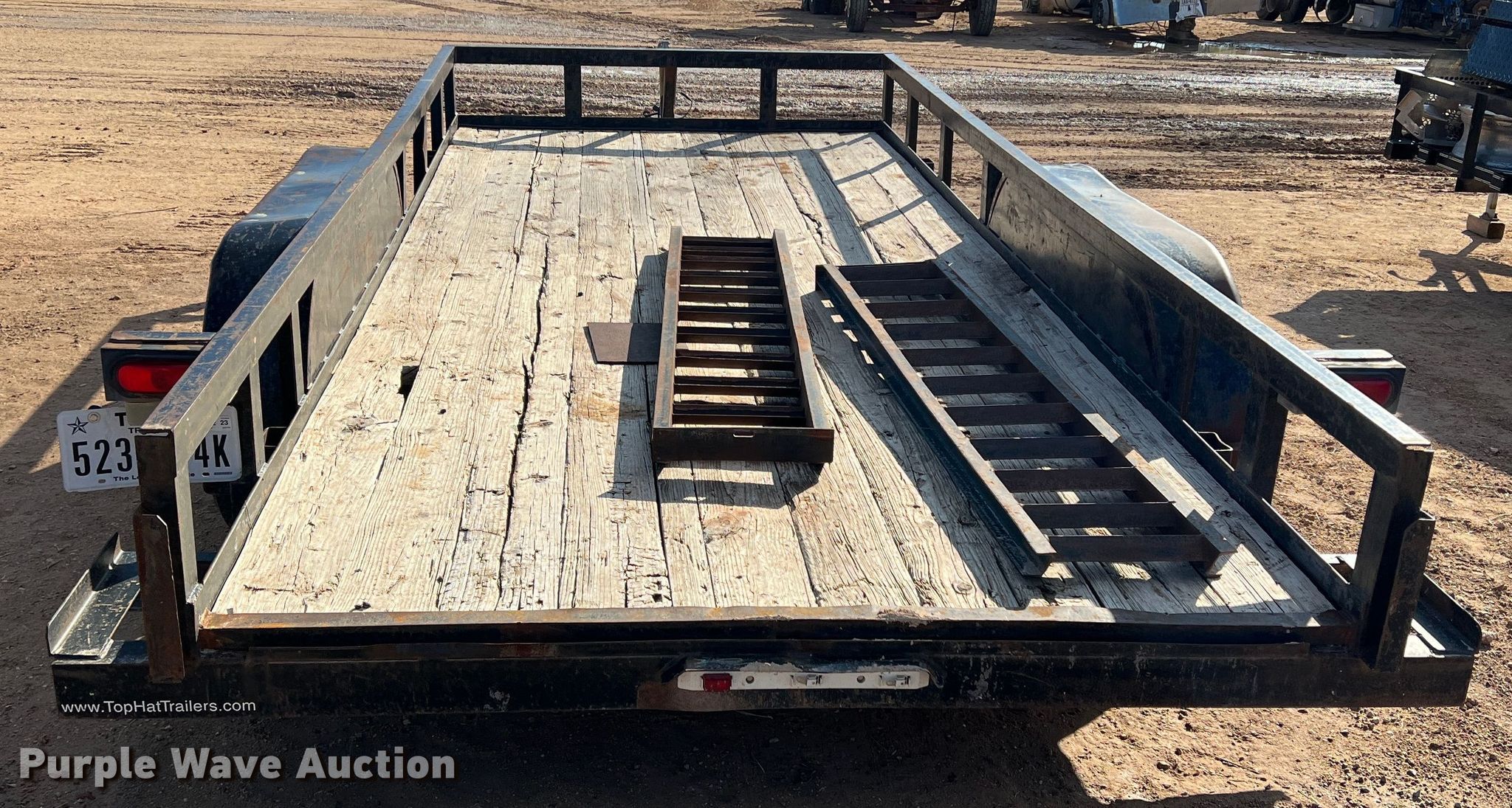 2007 Top Hat utility trailer. VIN: 4R7BU16247T079650. Dimensions Overall: 20' L x 95" W, Deck: 16' L x 75" W, Ramps: Manual Length: 7'. Features Deck type: Wood. Chassis Ball hitch: 2", Landing gear: Single, Suspension: Spring, Axles: Tandem. Tires Steel wheels, Size: 215/75R15. Transfer of ownership documentation will be a bill of sale. J.A.L. Contractors Retirement - Open inspection Dec. 28. 2122 Lamesa Highway. Big Spring, TX 79720