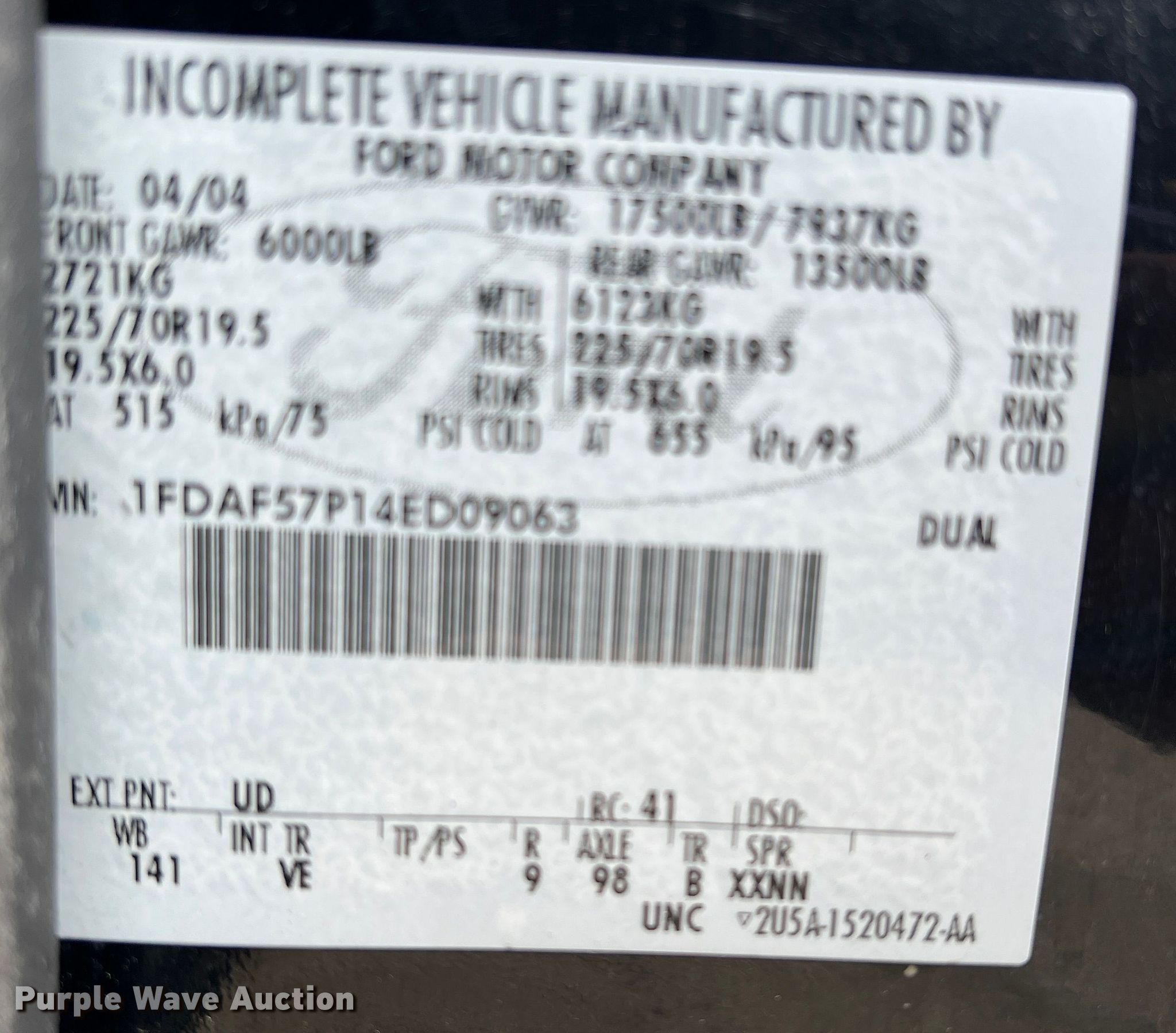 • VIN: 1FDAF57P14ED09063