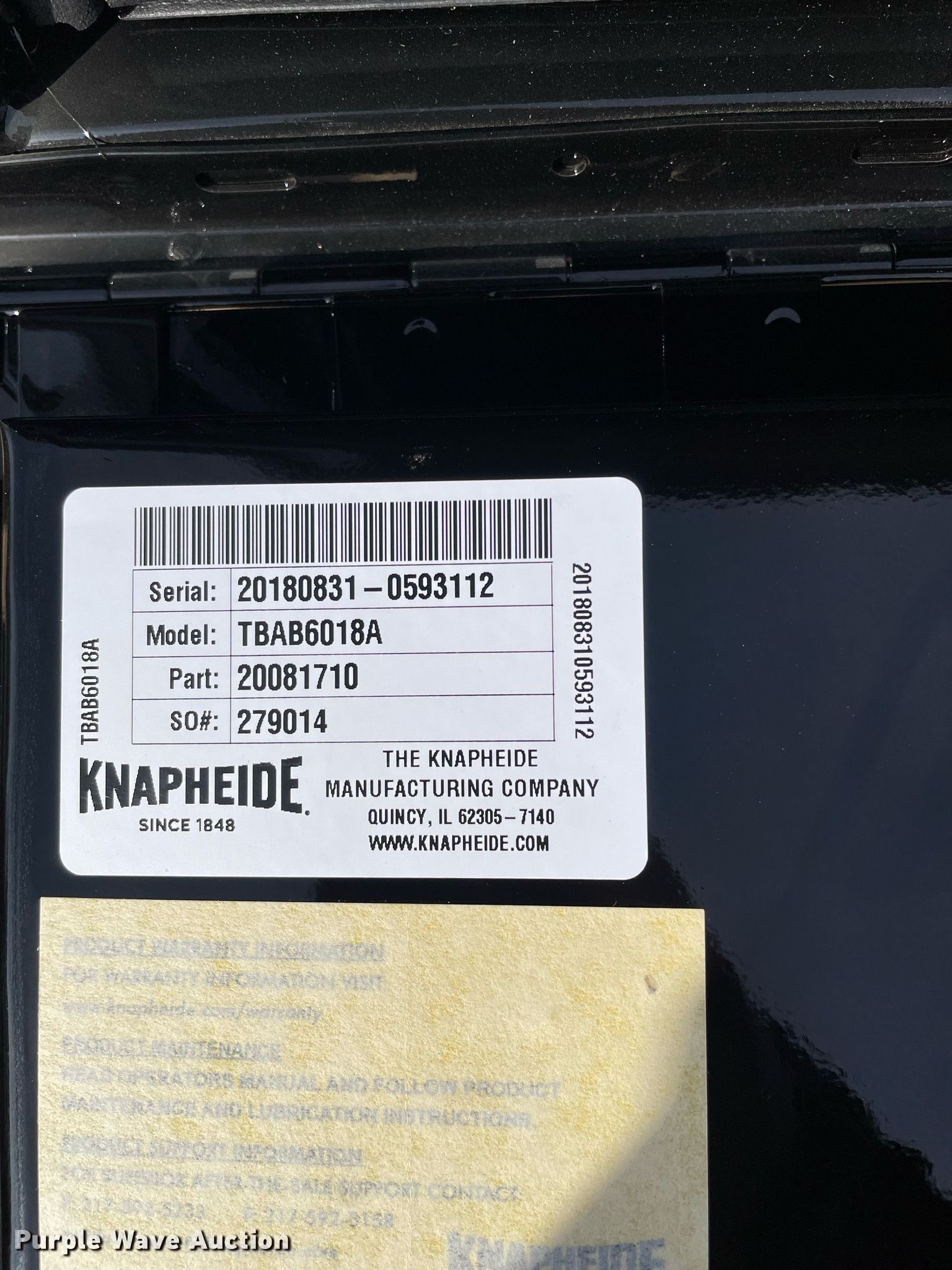 Knapheide TBAB6018 toolbox. 60" L x 18" W x 18" H, Serial: 20180831-0593112. Notes Unused. Knapheide Truck Equipment Center - Indiana. 4725 New Middle Road. Jeffersonville, IN 47130