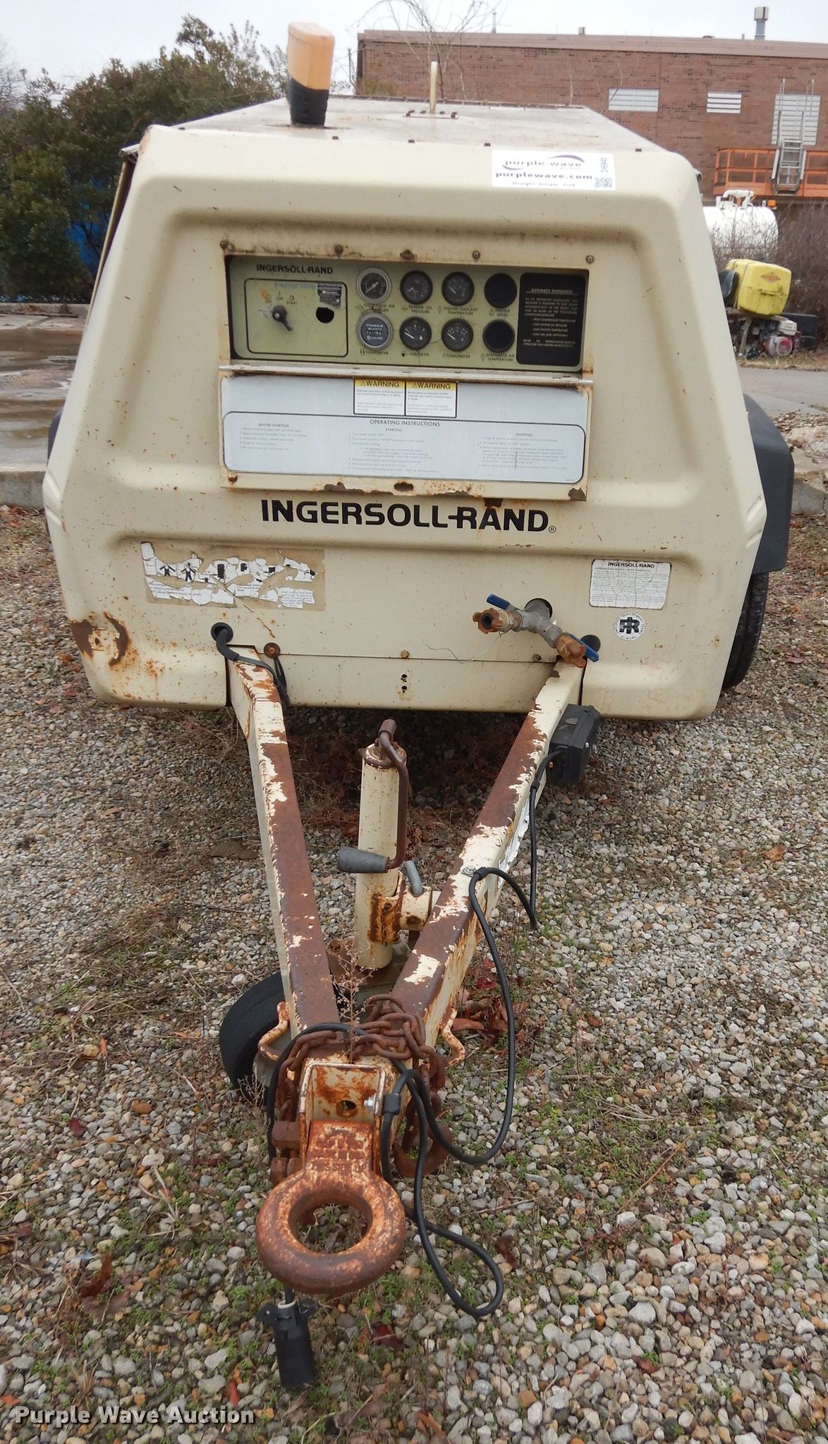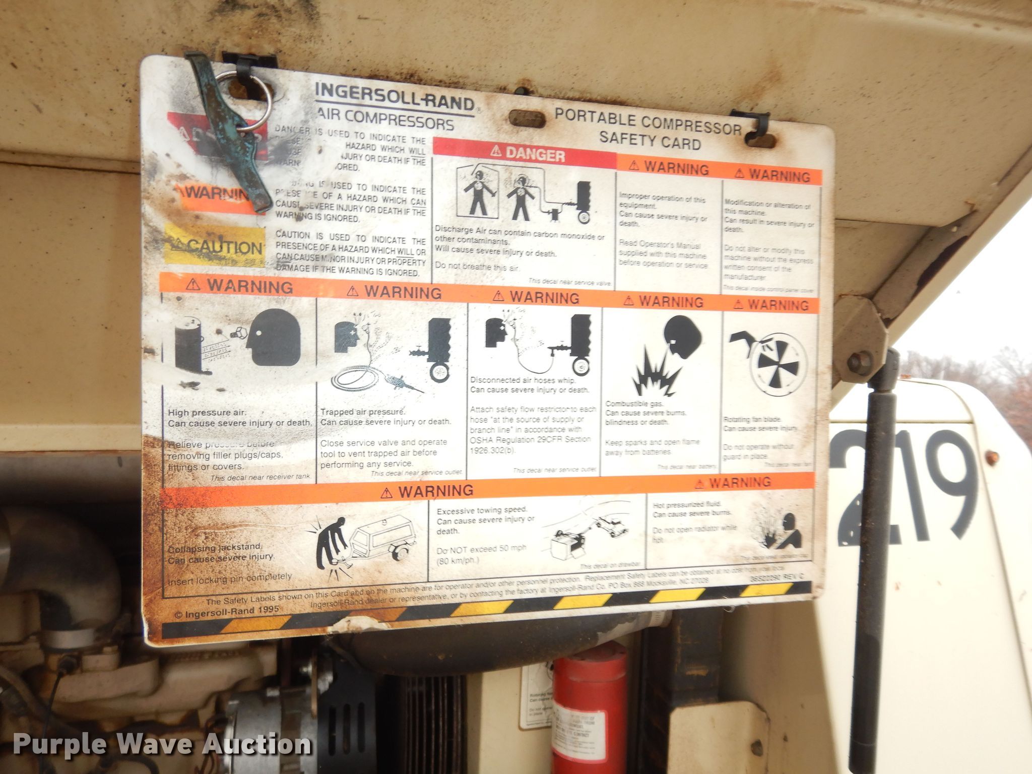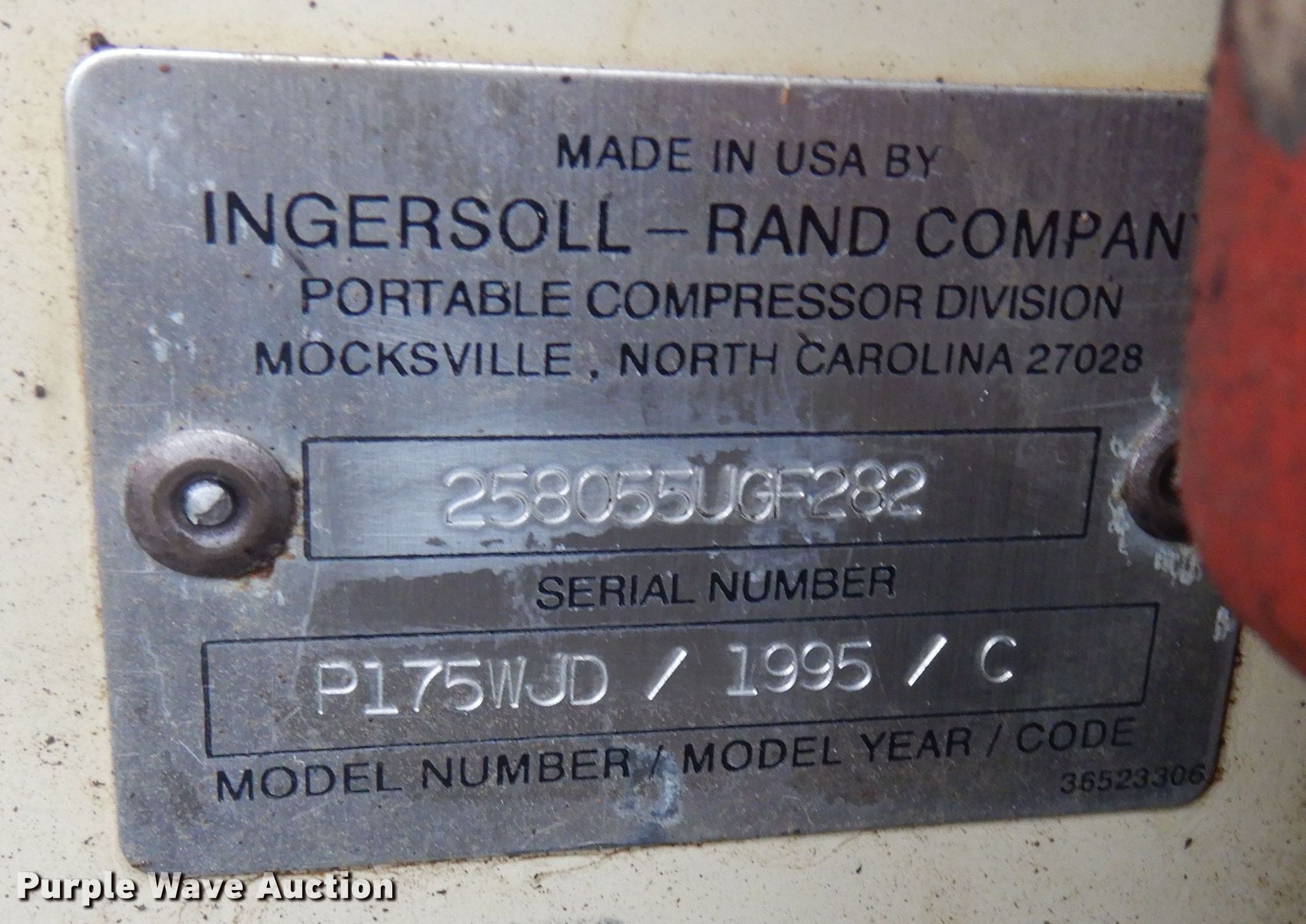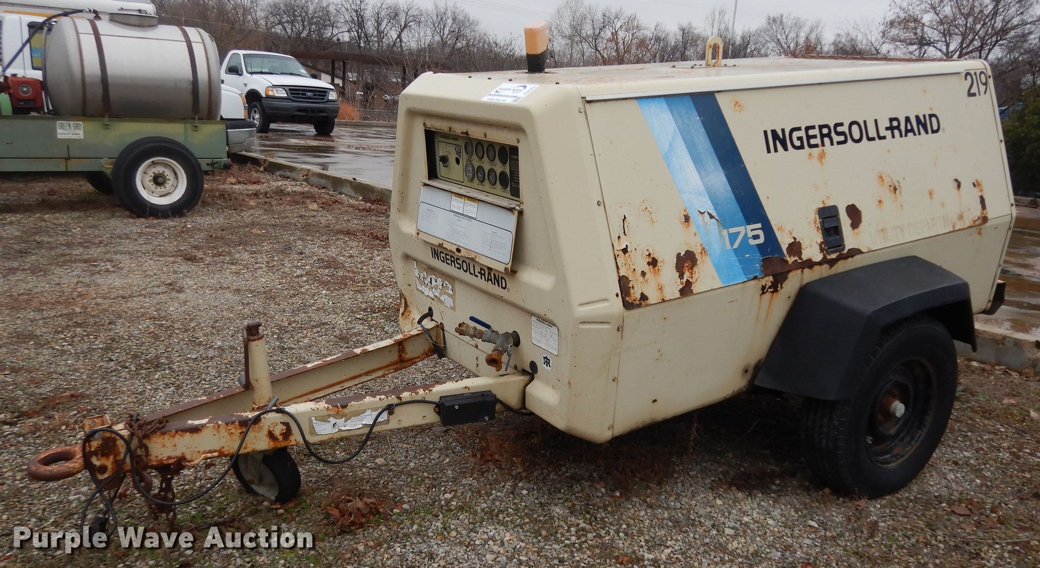 Purple Wave is selling a used Air Compressor in Kansas. This item is a 1995 Ingersoll Rand P175WJD air compressor with the following: Hours: 910 on meter, VIN: 258055UGF282, Unit #: 219