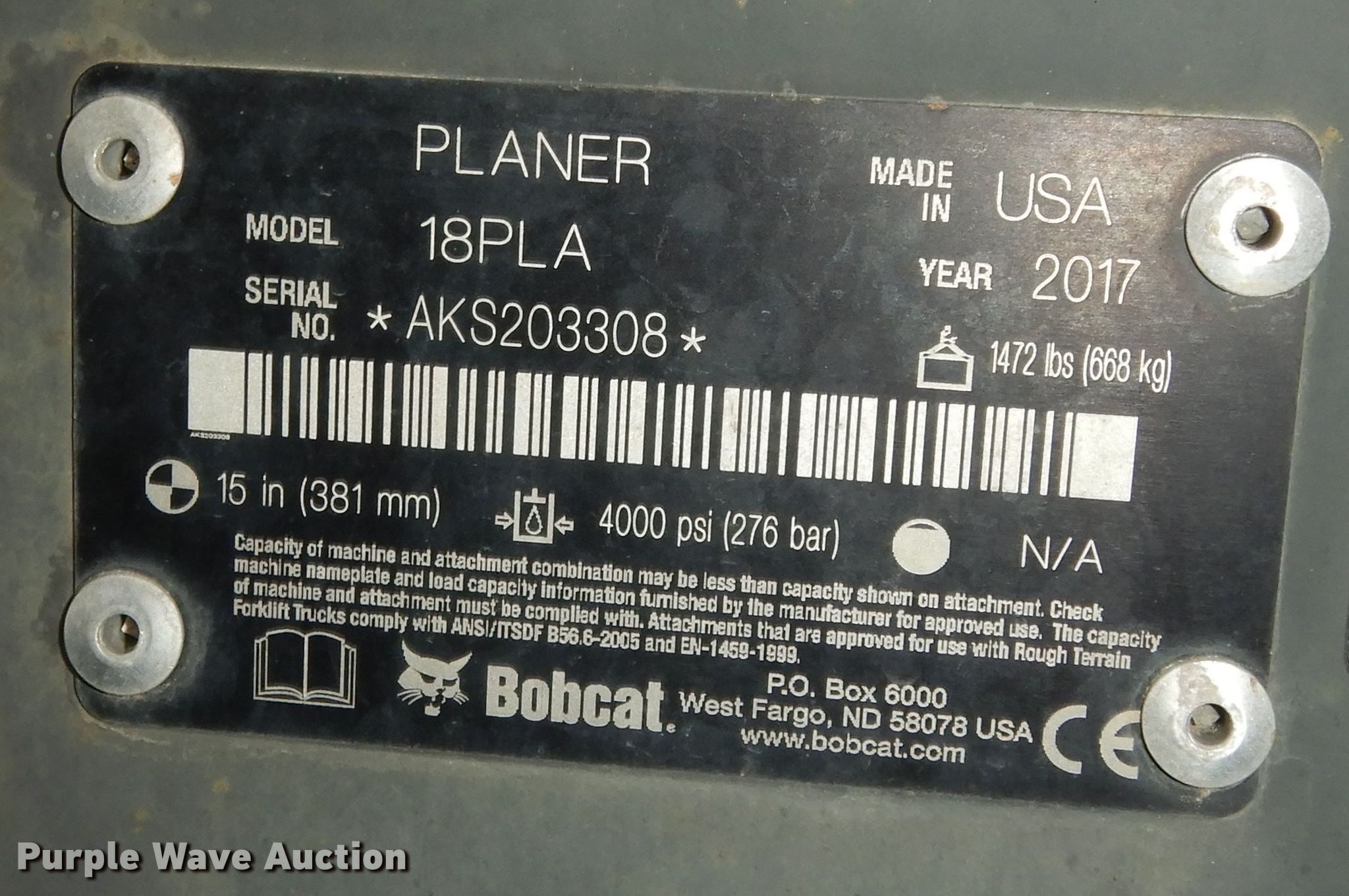 Purple Wave is selling a used Skid Steer Attach. in Kansas. This item is a 2017 Bobcat 18PLA skid steer cold planer with the following: Width: 18", Unit #: 387B