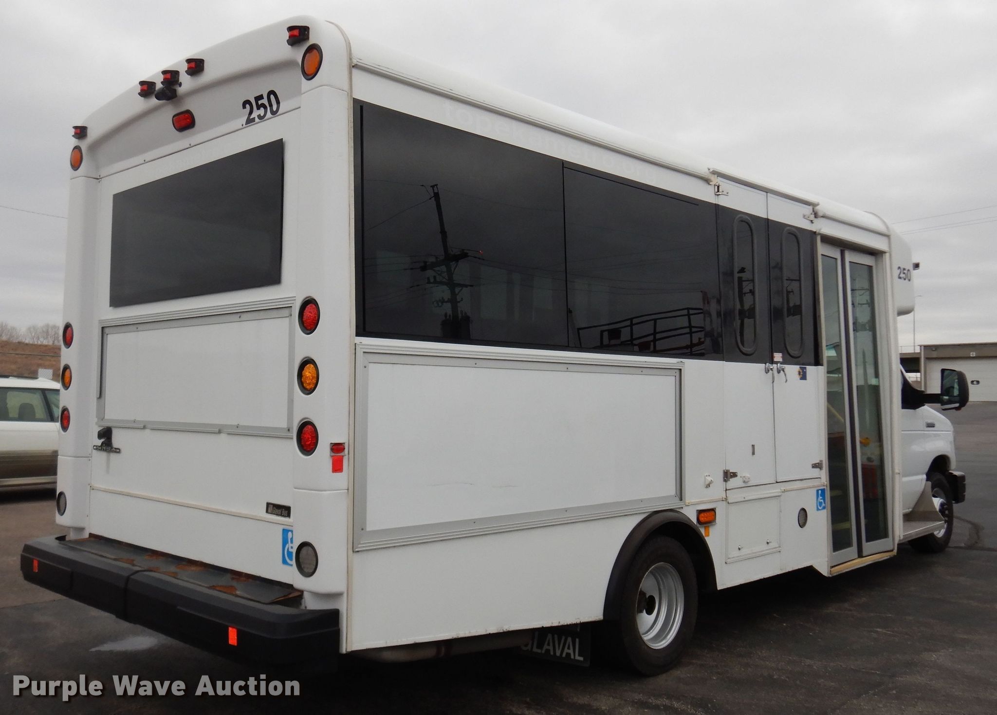 2013 Ford E450 Super Duty shuttle bus. Miles: 159,906 on odometer, Hours: 12,440 on meter, VIN: 1FDXE4FS8DDA36139, Unit #: 250. Engine Displacement: 6.8L, Cylinders: 10, Fuel type: Gas. Transmission Automatic. Chassis Axles: Single, Suspension: Spring, Brakes: Hydraulic, GVWR: 14,500 lbs, Wheelbase: 158". Interior AC, Heat, Backup camera, Cruise control, Passengers: 9. Tires Size: 225/75R16. Notes Wheelchair lift has been removed, Windshield chipped or cracked. Kansas title. Topeka, KS 66616