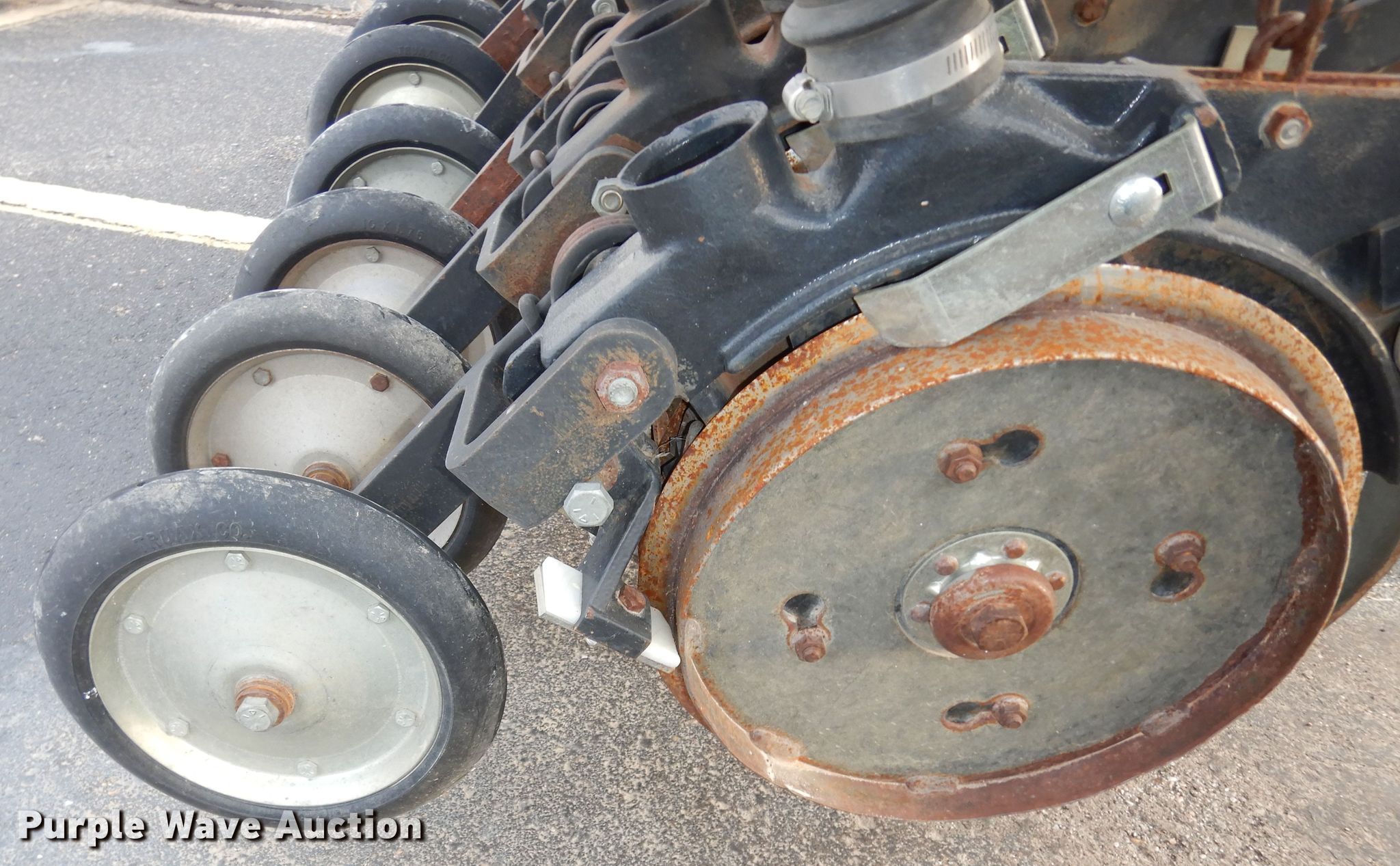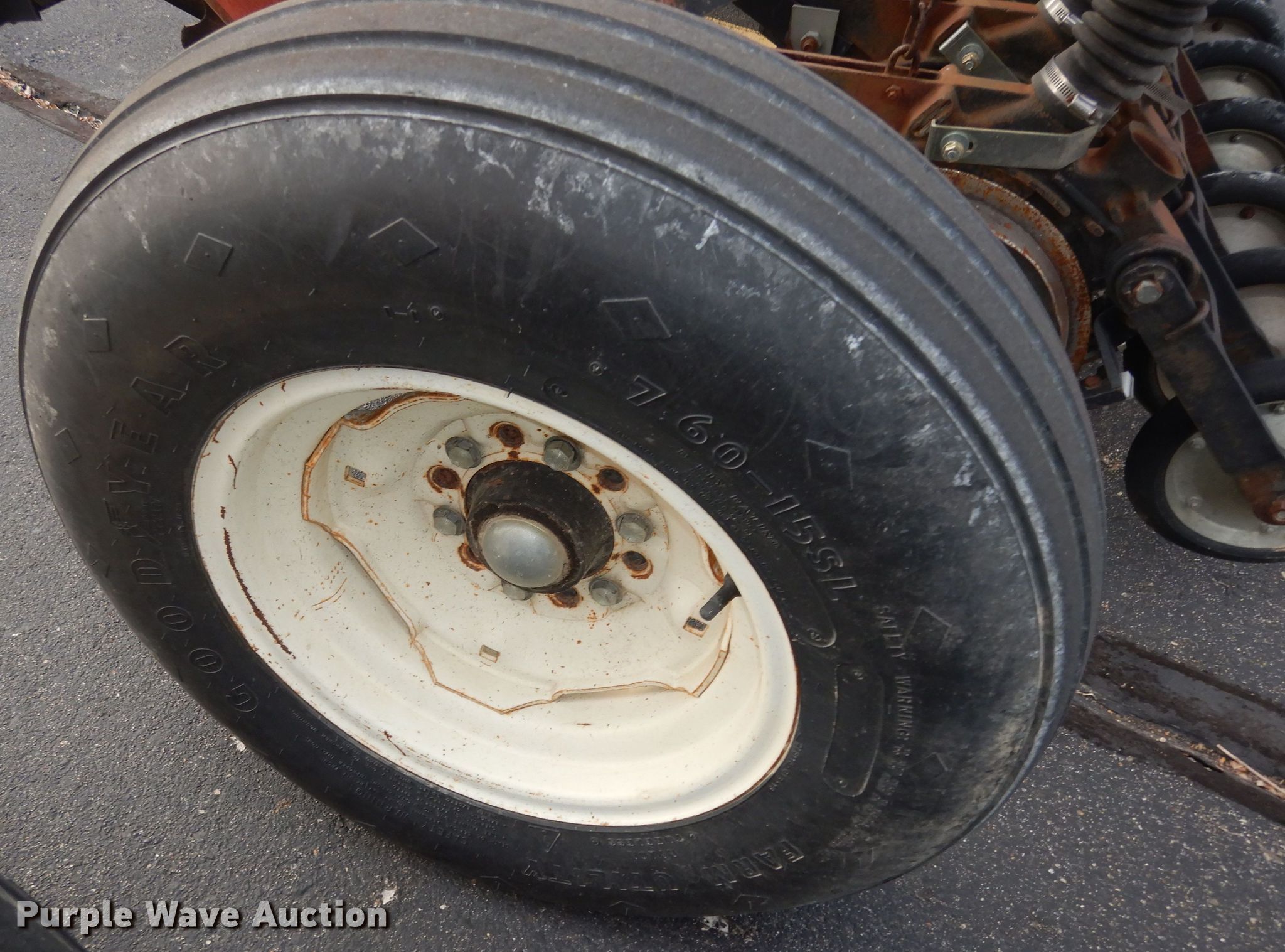 Truax FLXII-812 grain drill. Width: 8', Row units: 12, Row spacing: 8", Serial: 1757. Features Seed delivery Bulk fill system, Row units Meter drive: Ground, Down pressure: Hydraulic, No-till coulters, Disk openers: Double, Gauge wheels: Double, Closing system: Single Type: Rubber.. Tires Drive/ outside tire size: 7.60-15SL Quantity: 2. 825 Levee Drive. Manhattan, KS 66502