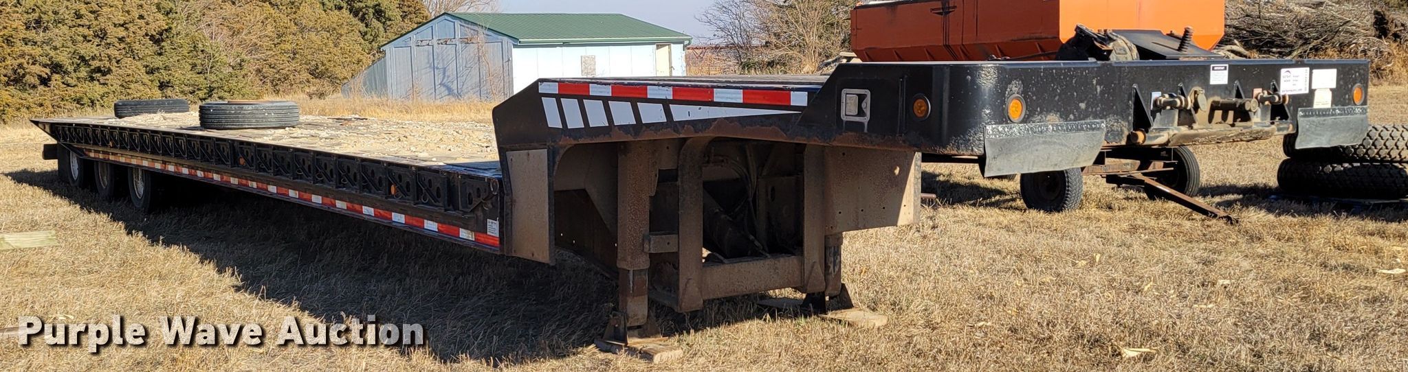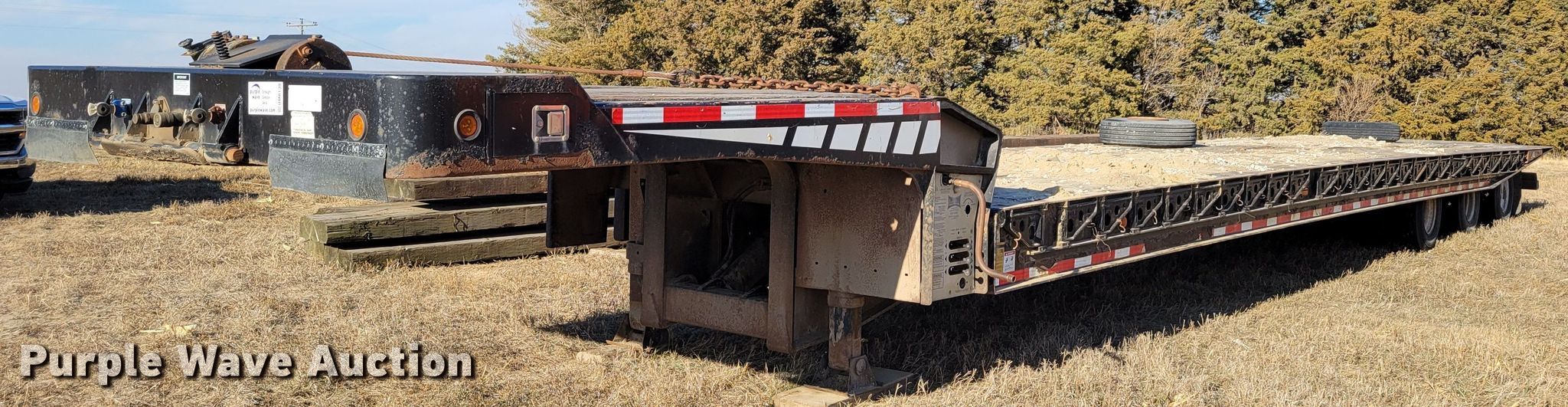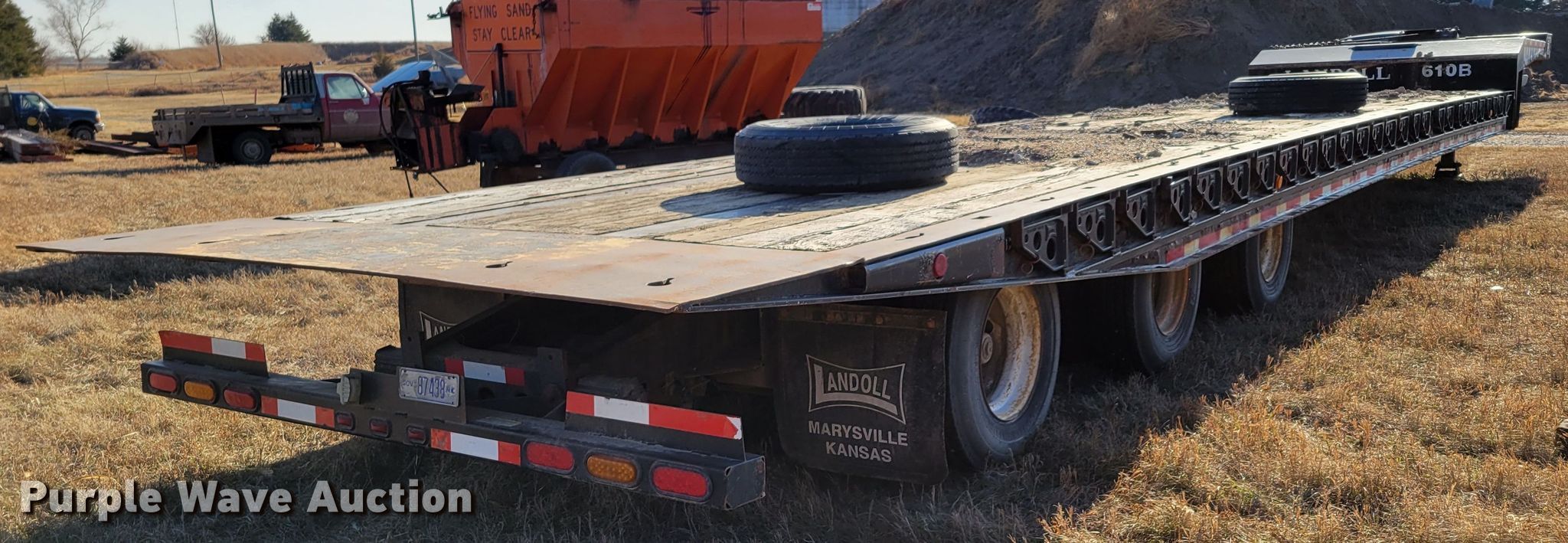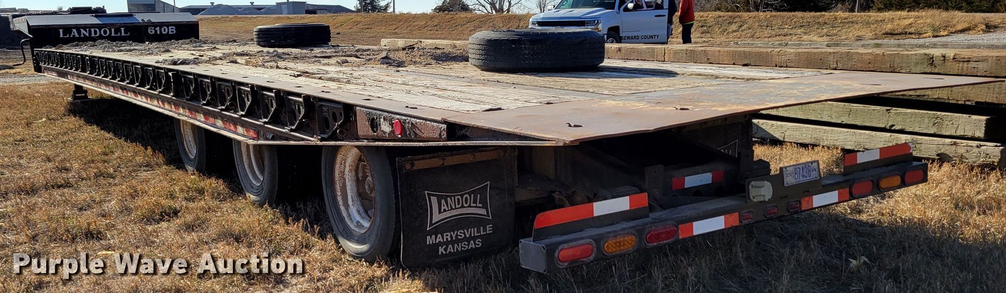 2005 Landoll 610B-53 drop tilt deck equipment trailer. VIN: 1LH610WJ951B14119. Dimensions Overall: 53' L x 102" W, Deck: 42' 8" L x 102" W, Top deck length: 8' 7". Features Deck type: Wood, Outriggers: Swing-out, Winch Braden AMU7-14, Capacity: 9,500 lbs. Chassis Landing gear: Dual, Two speed, Suspension: Air, Brakes: Air, Axles: Triple Sliding. Tires Steel wheels, Size: 10R17.5. Notes (2) additional tires, Additional wheel, Frame rusted through. Nebraska title. Seward County. 3427 Waverly Rd. Seward, NE 68434