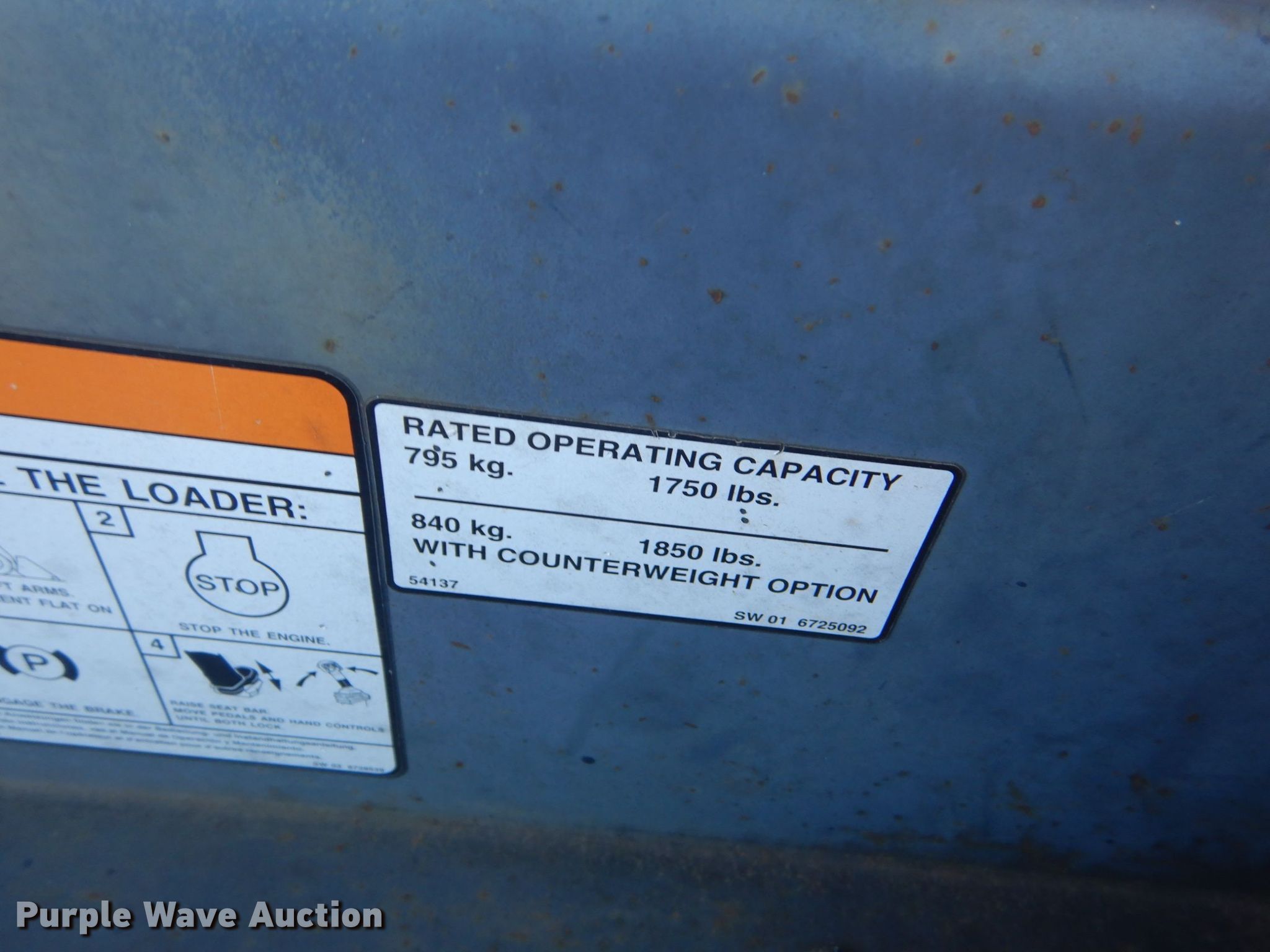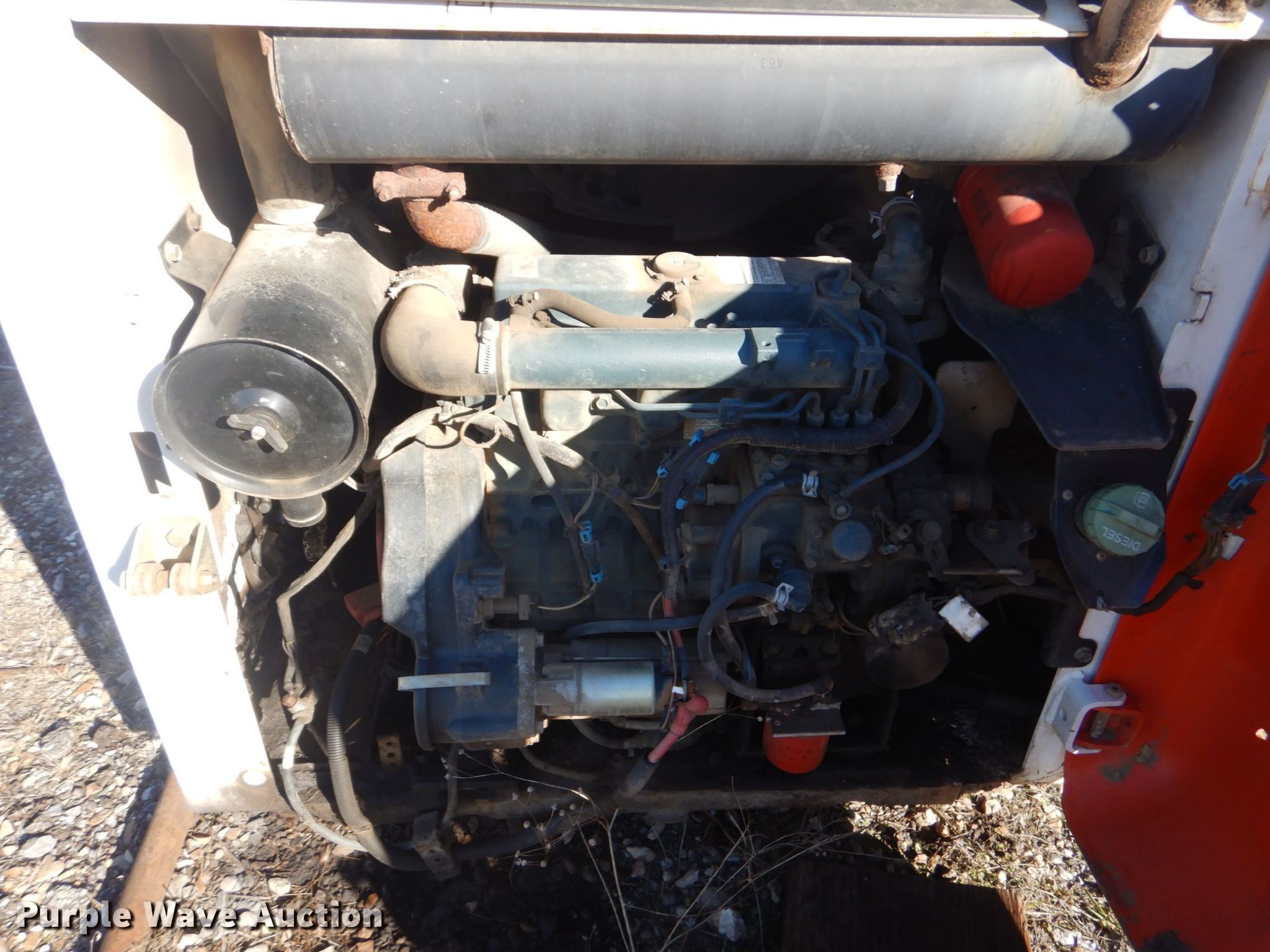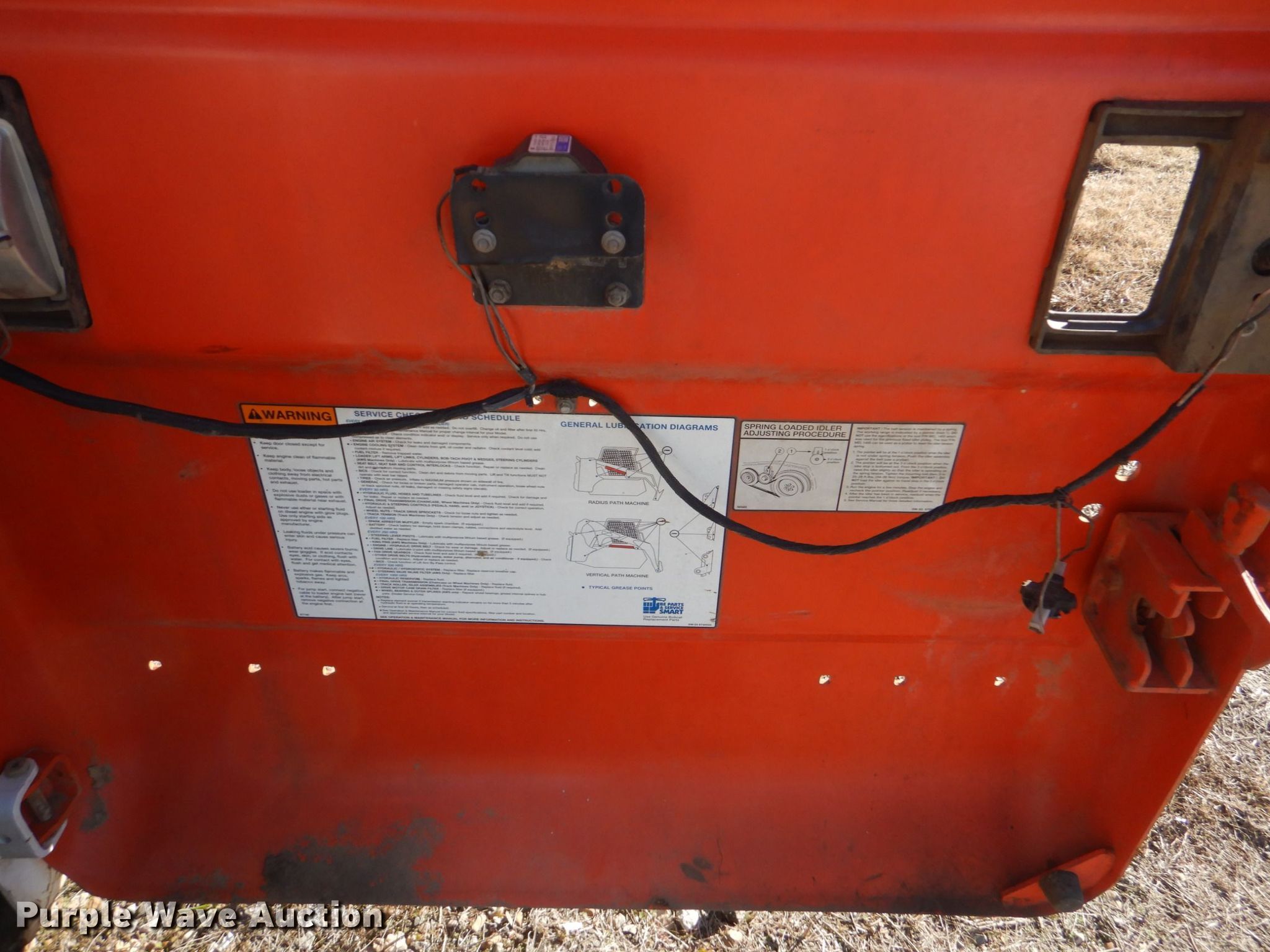 2004 Bobcat S175 skid steer loader. Hours: Unknown, Serial: 525211543. Engine Kubota V2203-M-DI-ES, Serial: 03W0064, Displacement: 2.2L, Cylinders: 4, Fuel type: Diesel. Transmission Hydrostatic, Two speed travel. Operators station OROPS, Bucket control: Foot, Electronic Monitoring System panel. Features Auxiliary hydraulics, Quick coupler: Manual, Bucket Caterpillar 165, Capacity: 0.57 cu.yd., Width: 72", Cutting edge: Bolt-on. Tires Size: 10-16.5 NHS. Notes Missing battery, Lift cylinder broken, Flat tire, Unknown operating condition. 3000 North Street. Muskogee, OK 74403