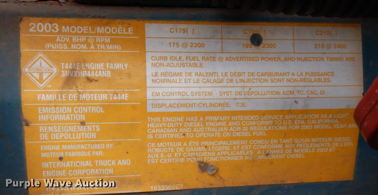 2004 IC Corporation IC3S530 school bus. Miles: 176,283 on odometer, Hours: 11,244 on meter, VIN: 4DRBRABP64B958337. Engine International T444E, Serial: 5074724, Displacement: 7.3L, Cylinders: 8, Fuel type: Diesel. Transmission Automatic. Chassis Axles: Single, Suspension: Spring, Brakes: Hydraulic, GVWR: 29,800 lbs. Interior Heat, Heated mirrors, Cruise control. Tires Size: 11R22.5. Notes Dash warning indicator: Check engine. Missouri title. Title distribution may be delayed up to 14 days from verification of funds. Grandview Consolidated School District #4. 13208 Park Hills Dr. Grandview, MO 64030