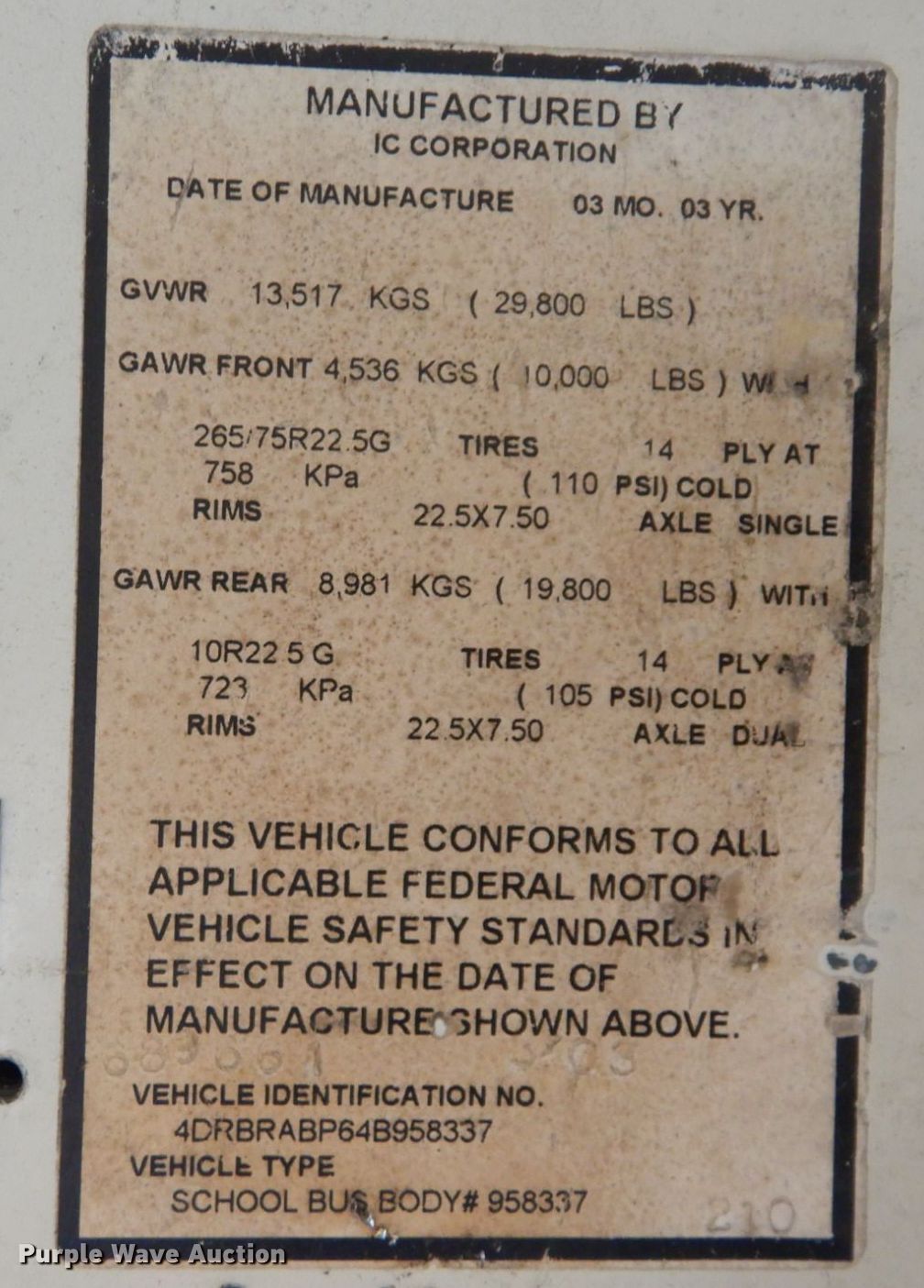 Take a look at this used 2004 IC Corporation IC3S530 school bus being sold on January 10th, 2023 in the SOLD! January 10 Government Auction made by IC Corporation. Take a look at all of the item information below or take a look at similar auctions for Transit Vehicles.
