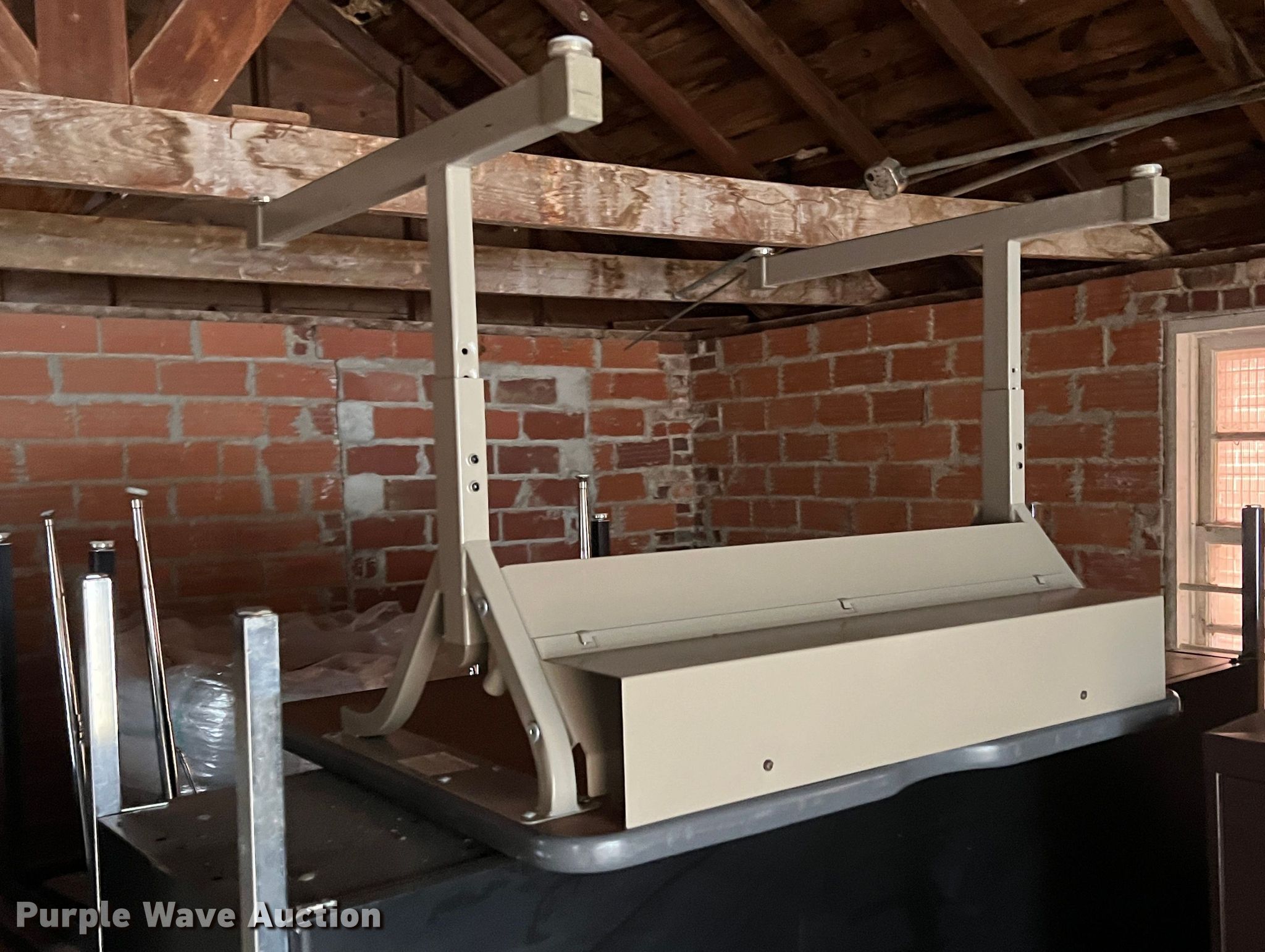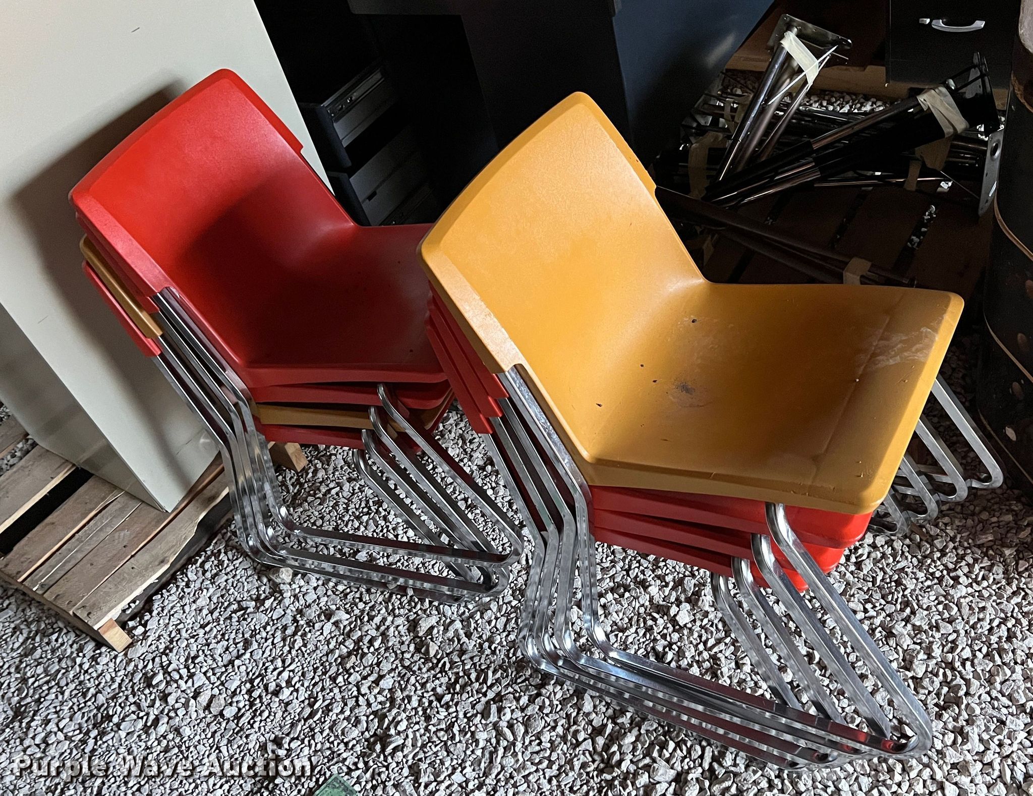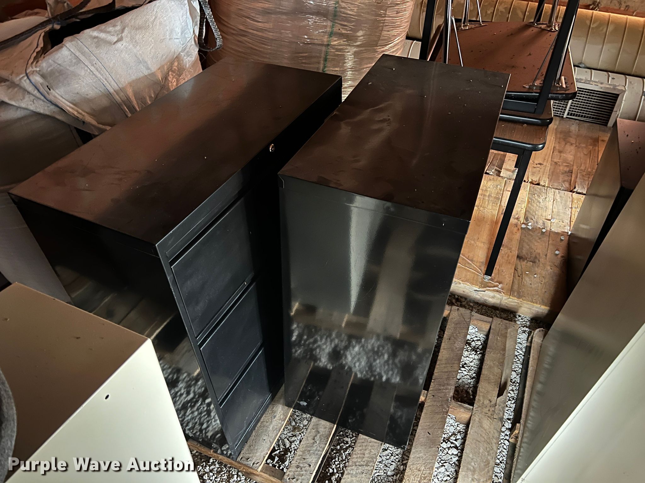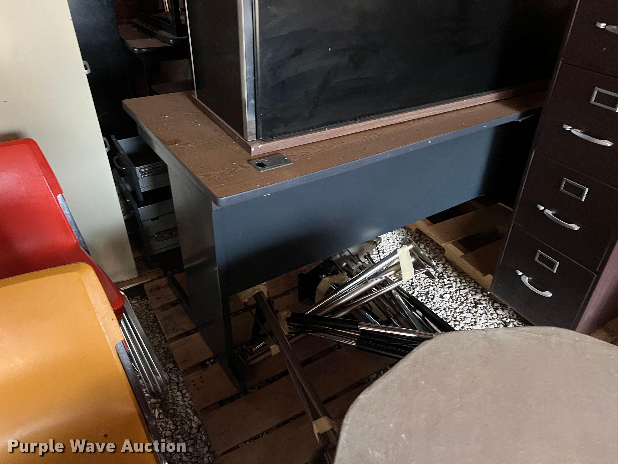 Purple Wave is selling a used Office Supplies and Equip. in Kansas. This item is a Office supplies and equipment with the following: (19) chairs, (10) tables, (5) filing cabinets, (2) desks, Skutt LT-3K electric kiln, Single phase, Cracked brick, Unknown operating condition